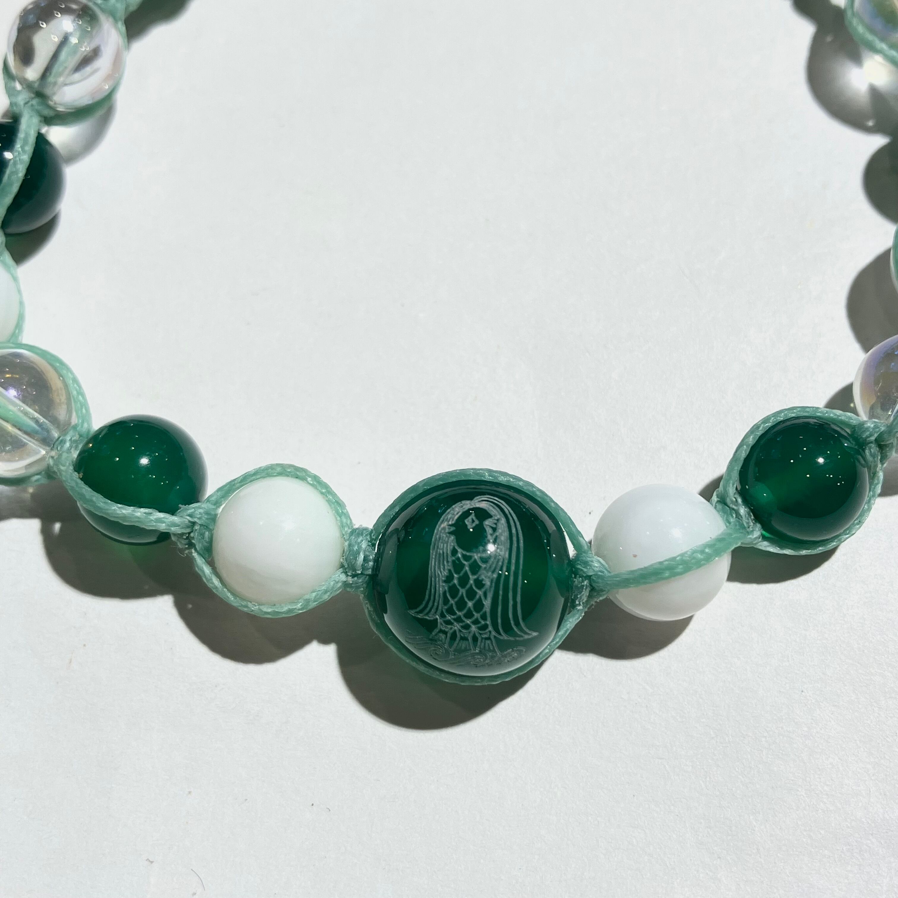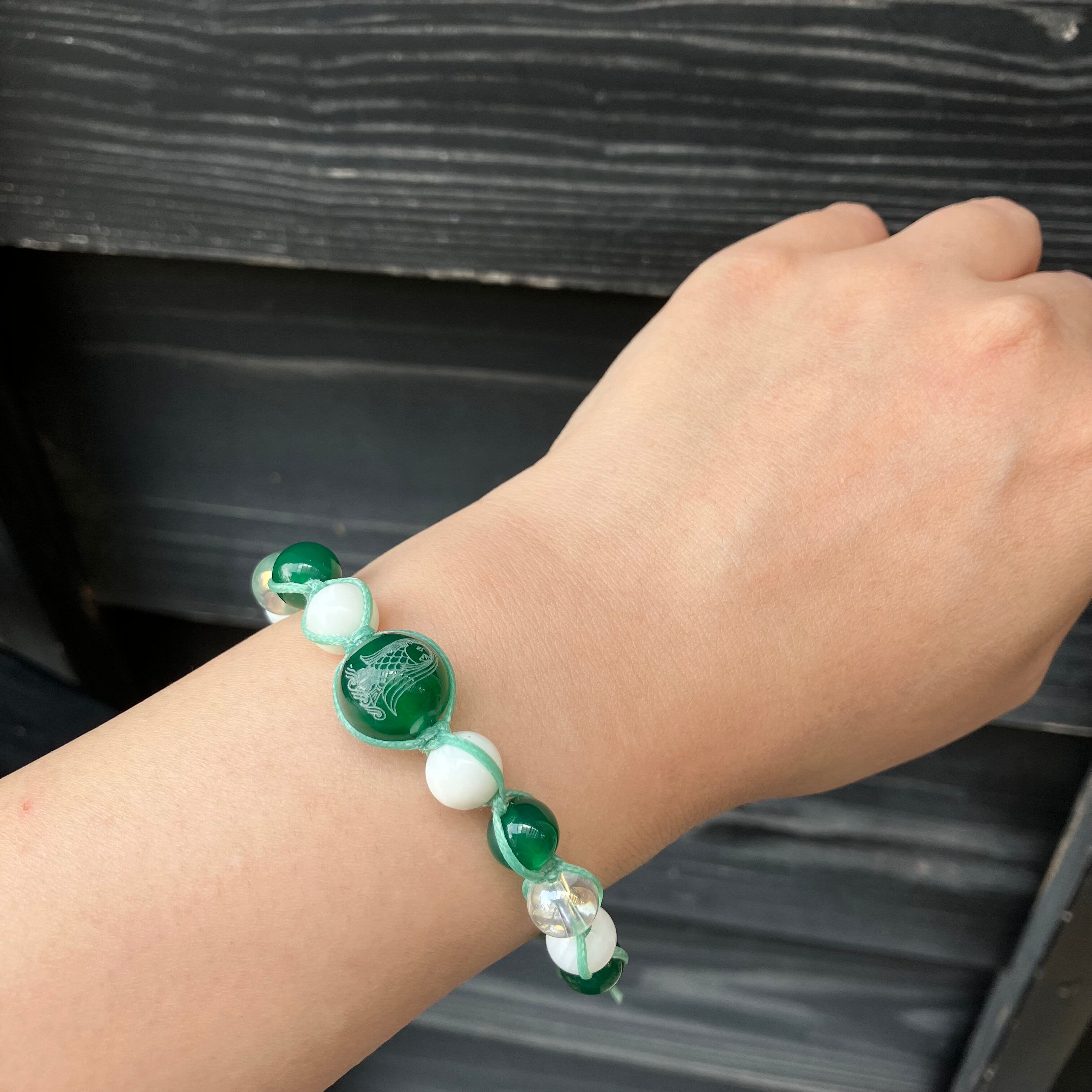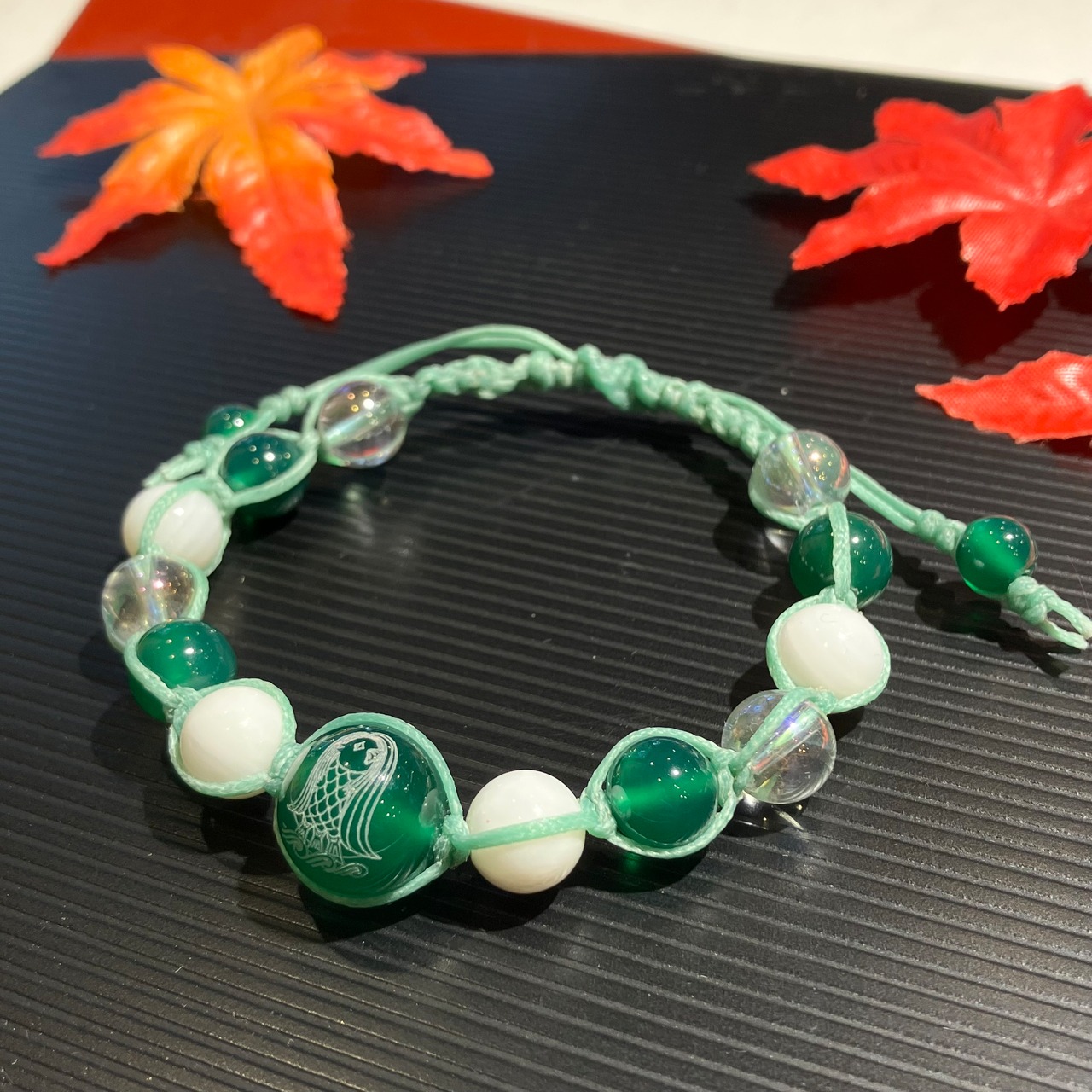 そんなアマビエと様々な天然石を組み合わせてオリジナルの編みブレスレットに仕上げました♡