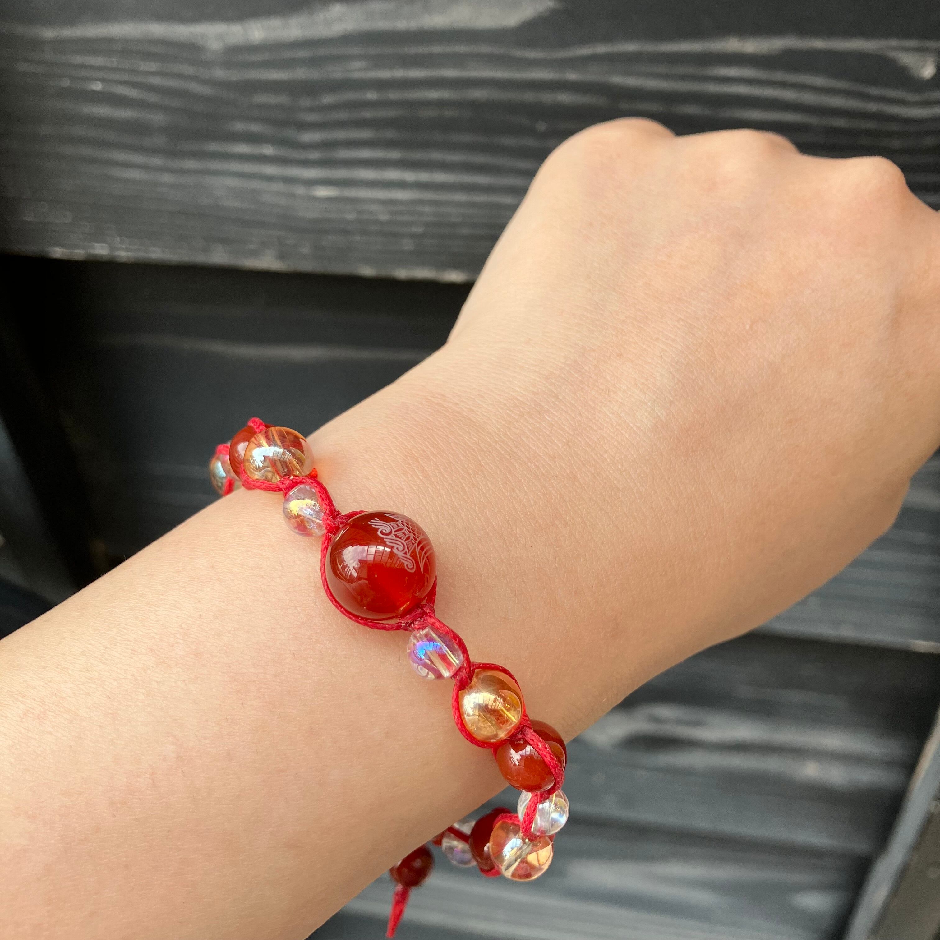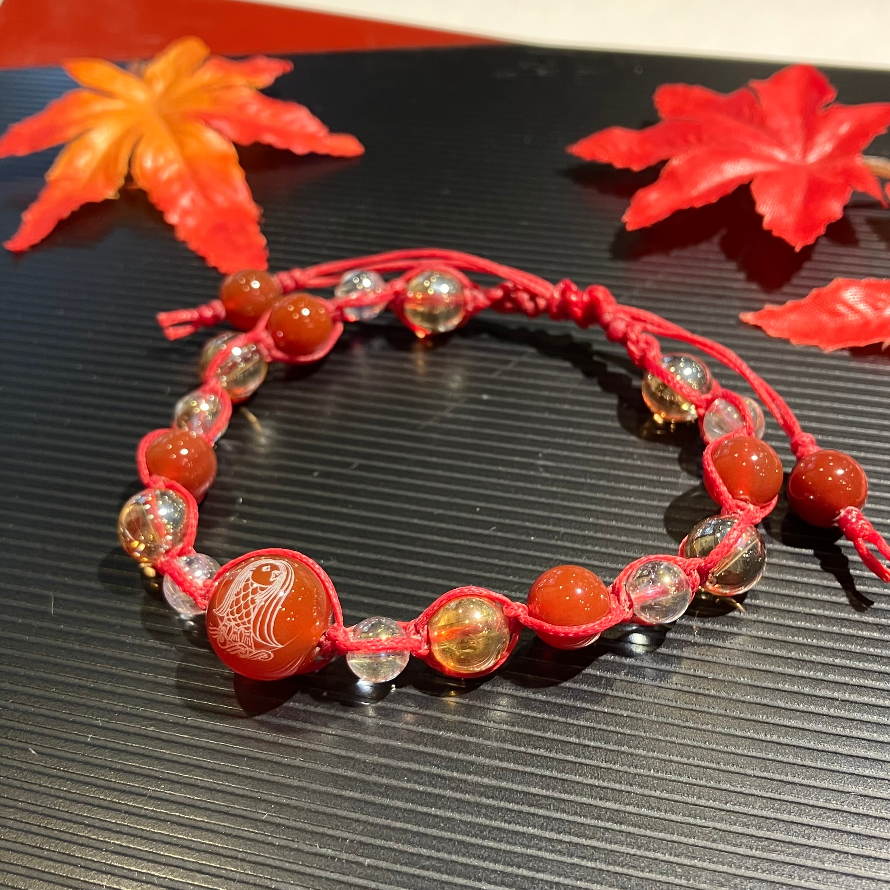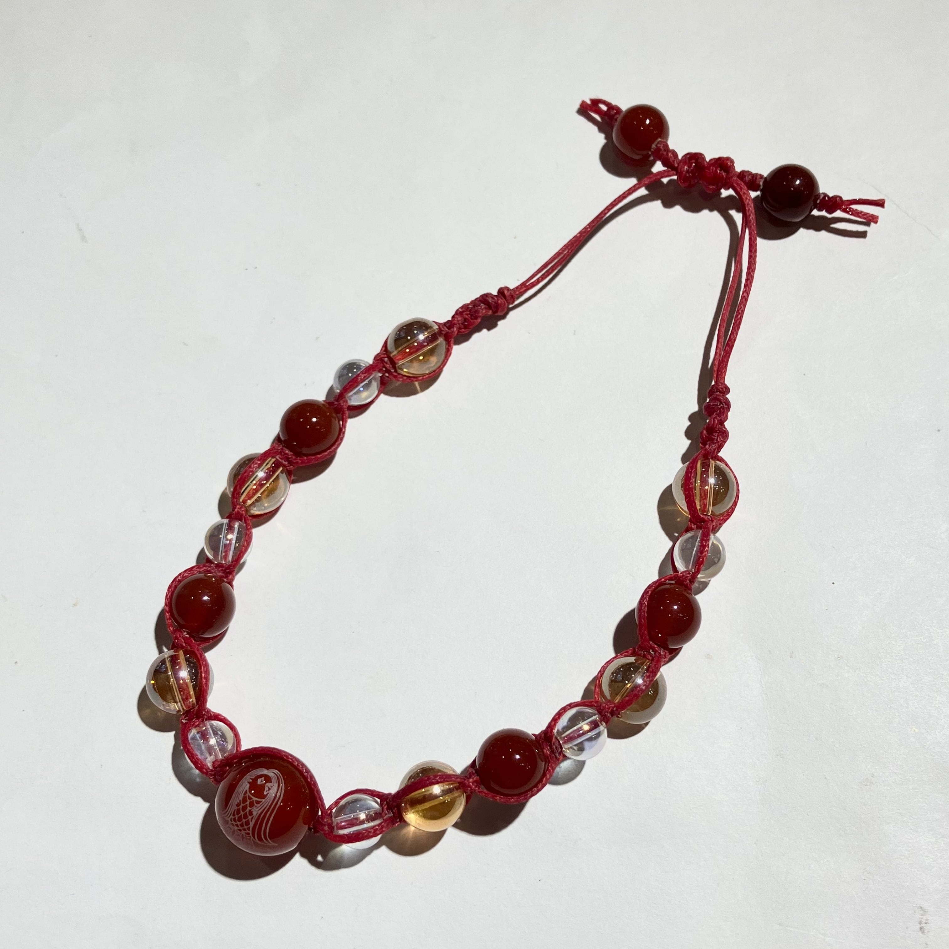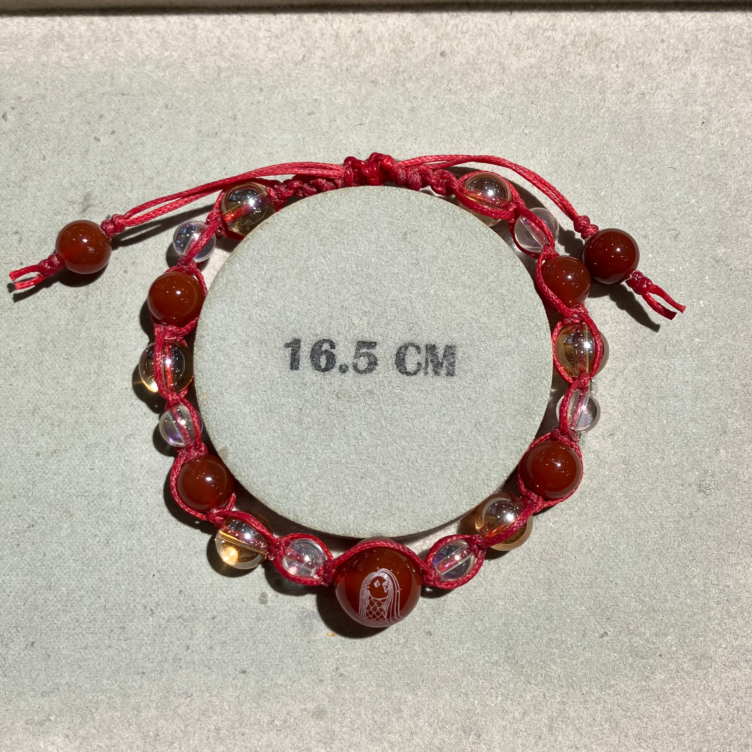 【h729d】アマビエ【赤めのう】彫り入り編みブレスレット