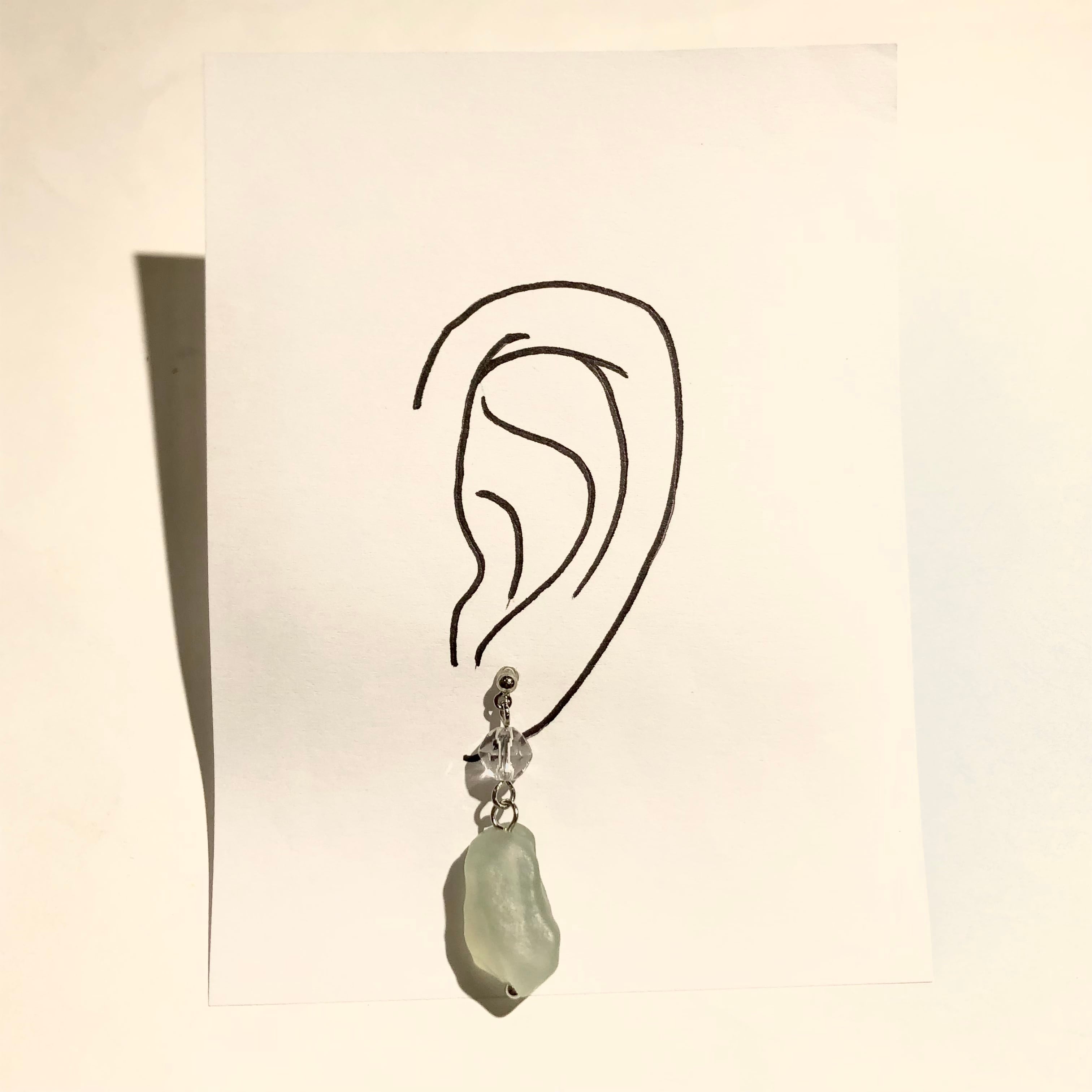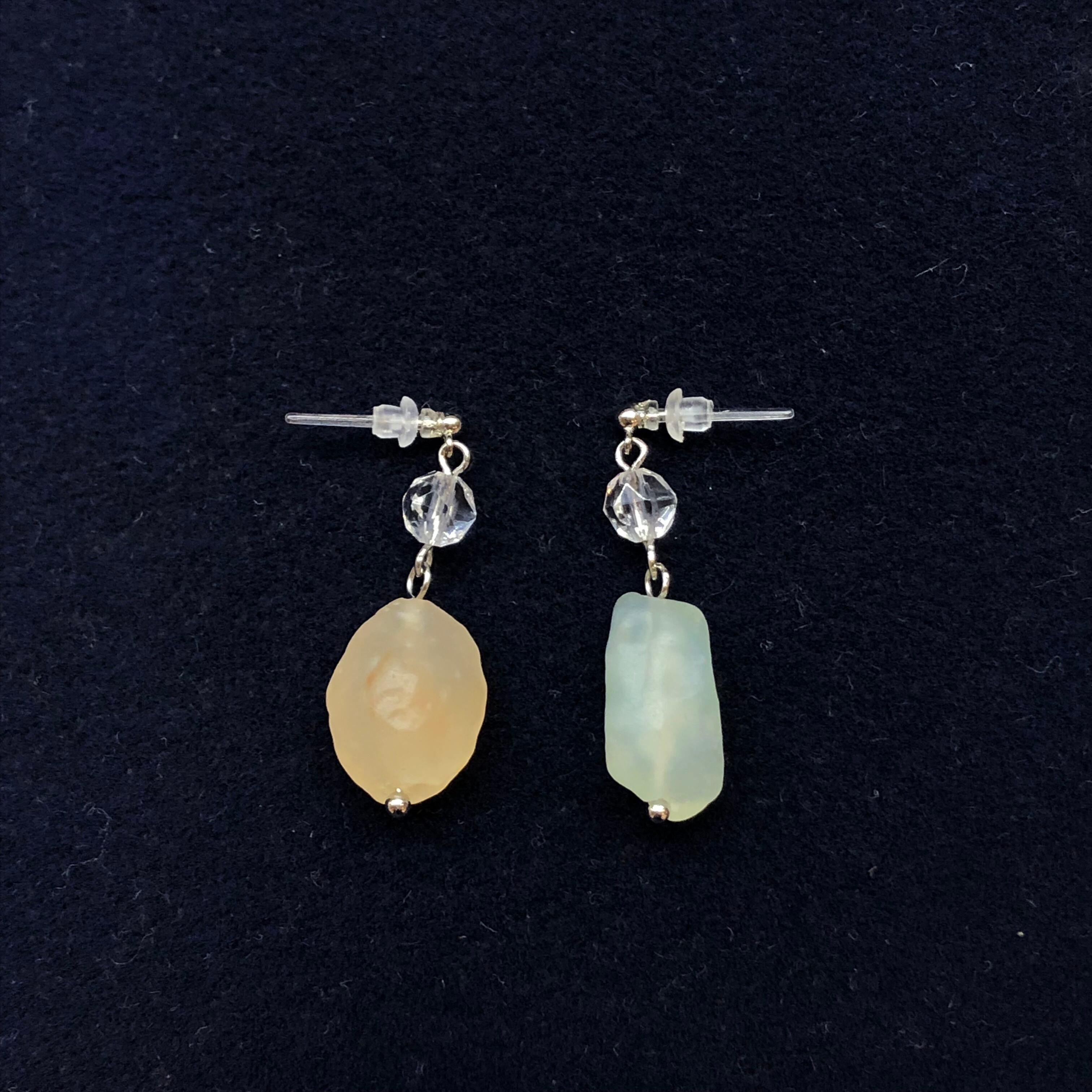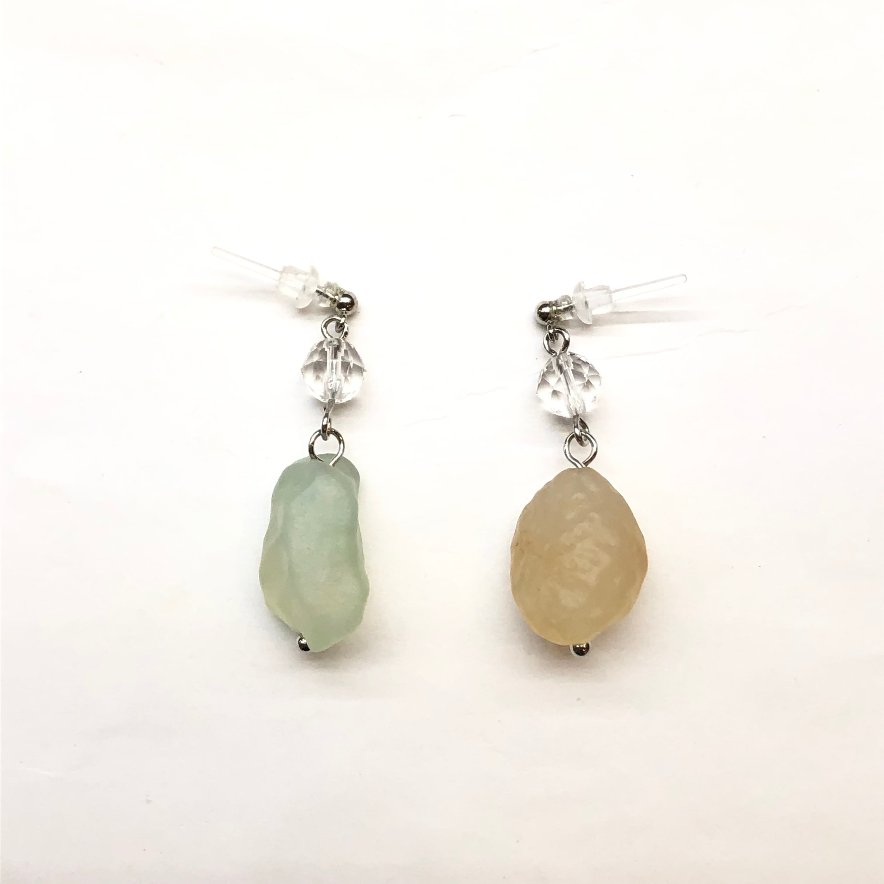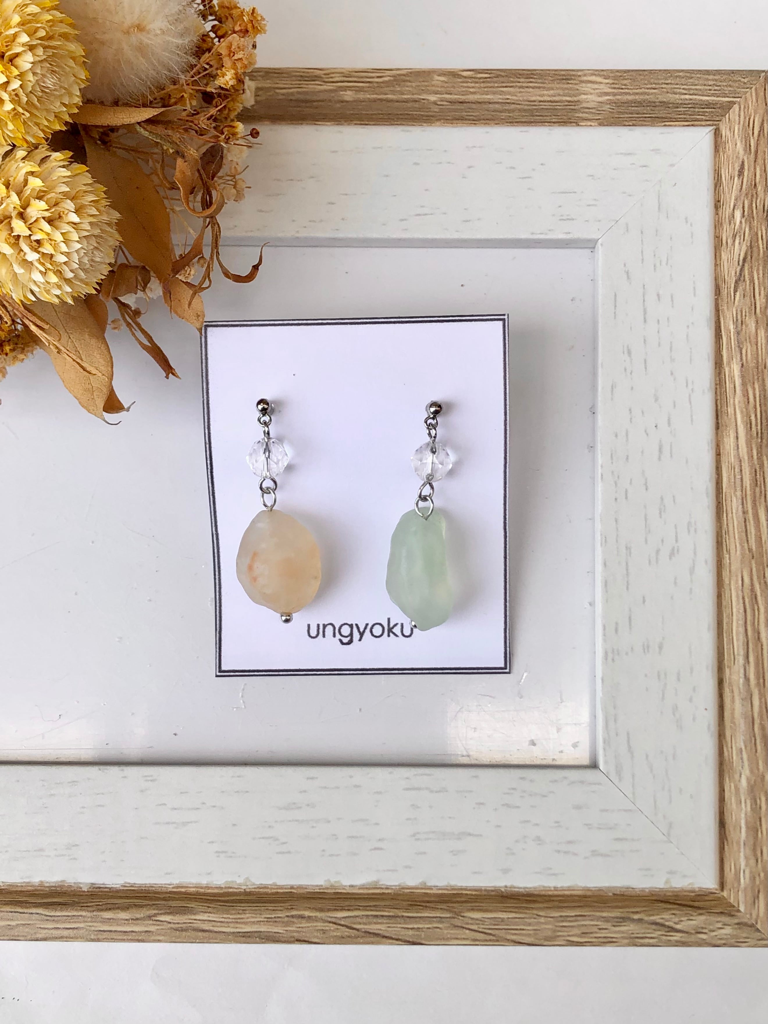 涼やかな色合いなので透明感のある水晶と組み合わせて、ピアスに仕立てました。