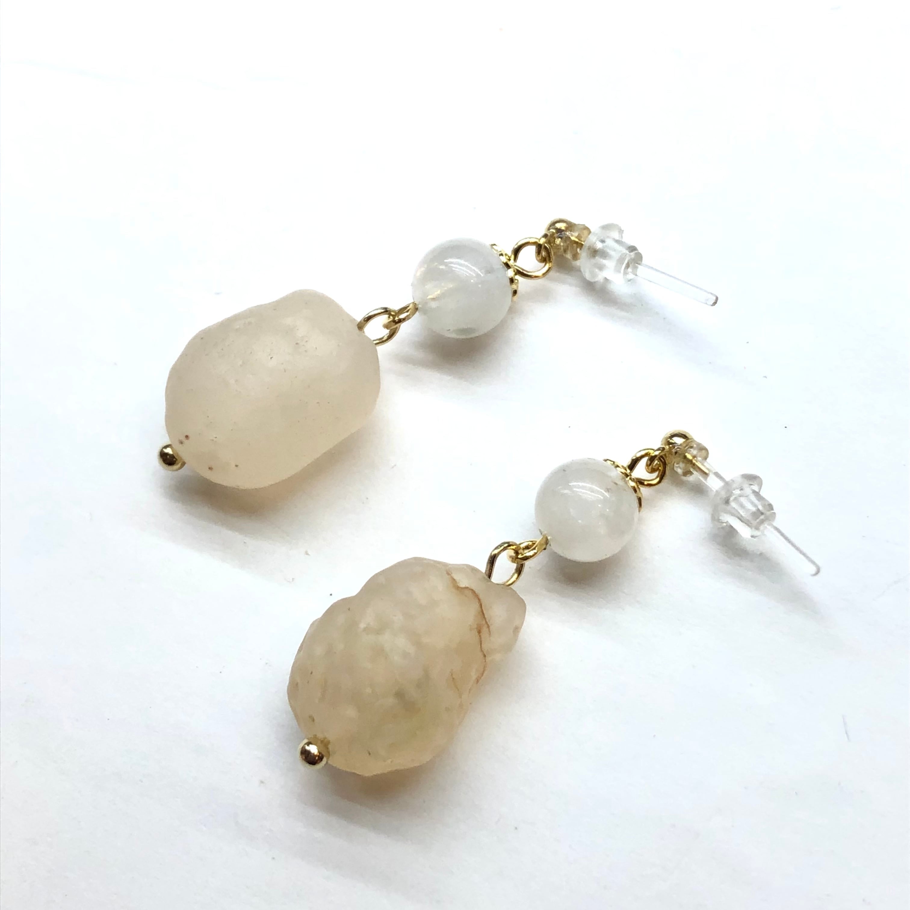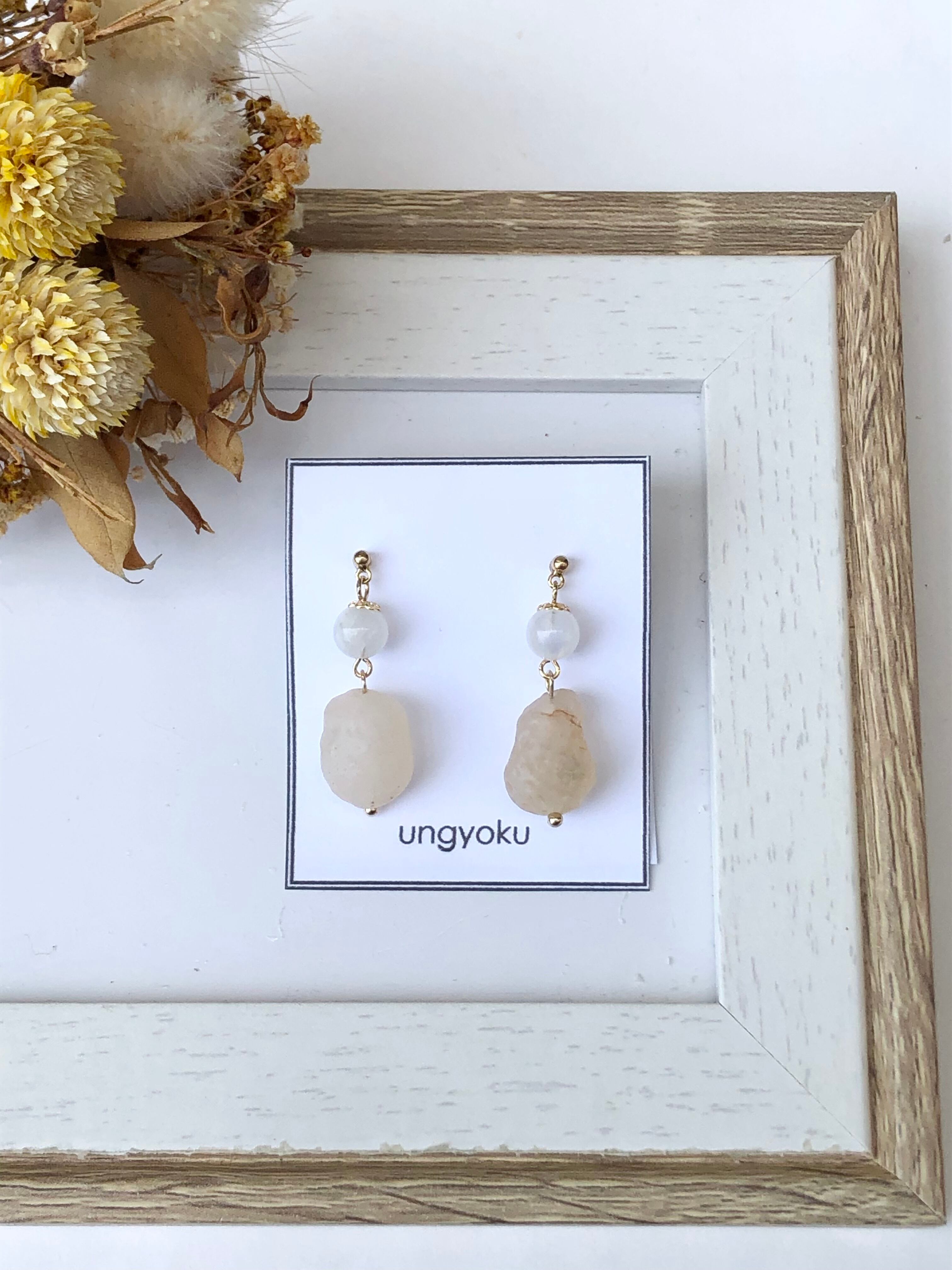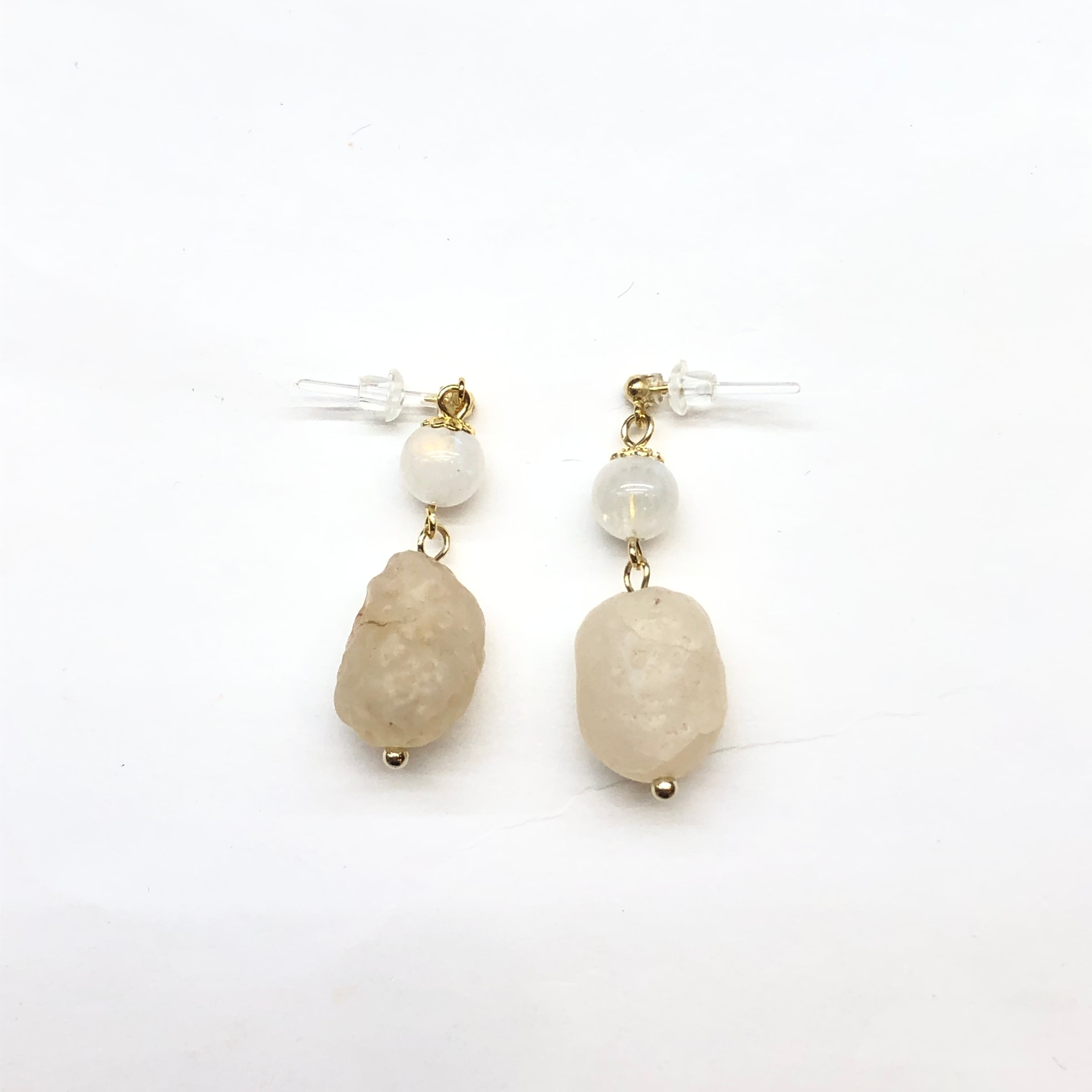 乳白色のメノウに合わせてムーンストーンを組み合わせ、ピアスに仕立てました。