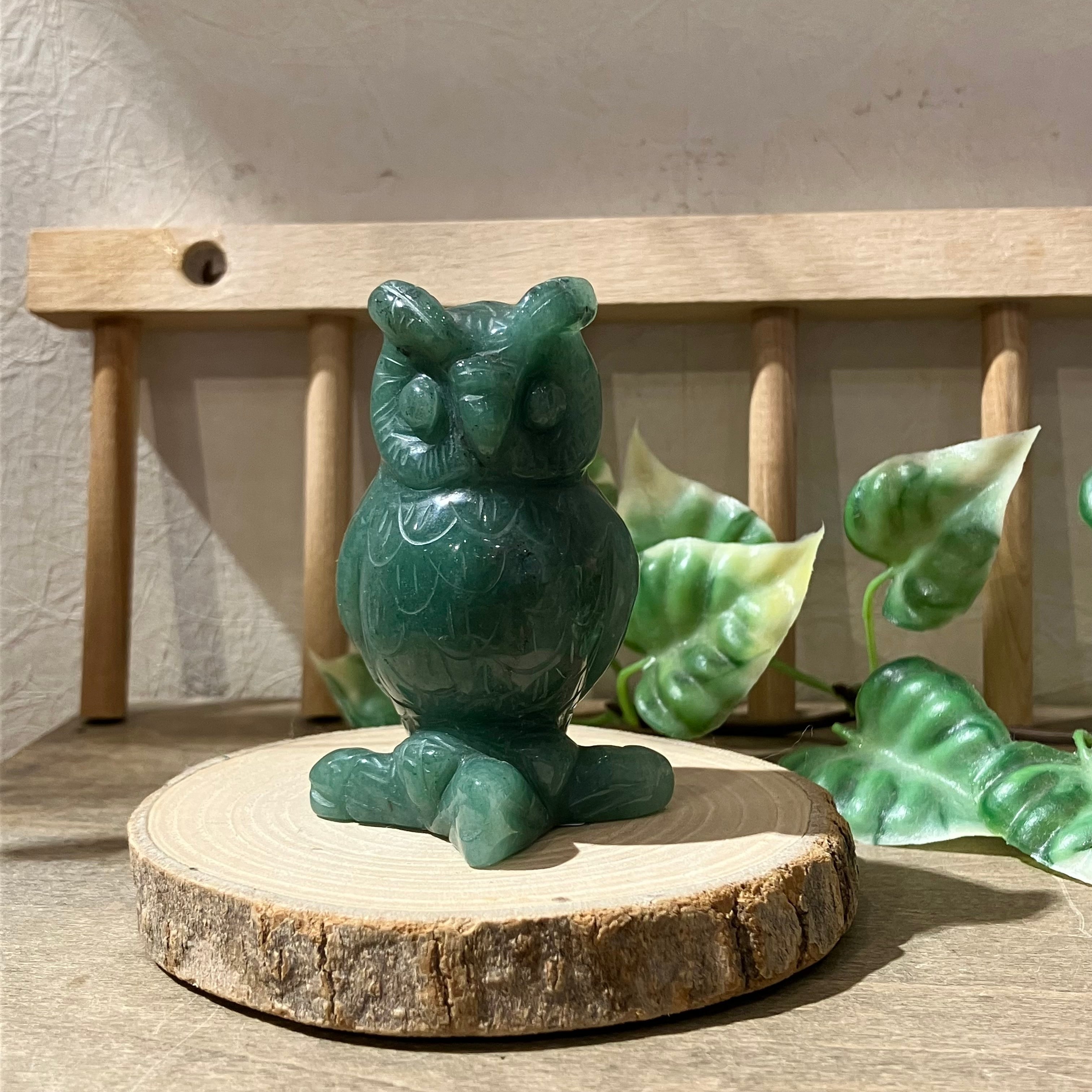 【h737d】天然石ふくろう置き物 アベンチュリン 【リラックス・癒し】