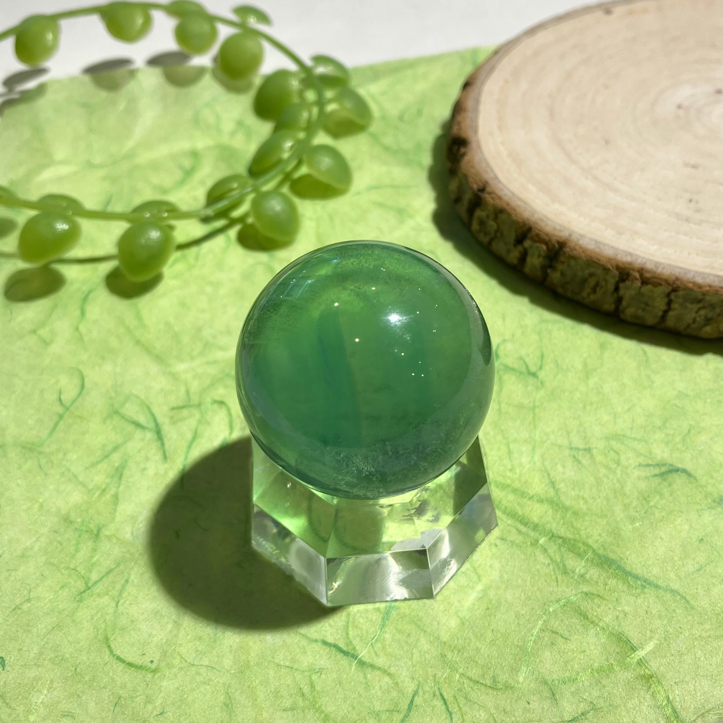 【h739d】グリーンフローライト 丸玉 32mm