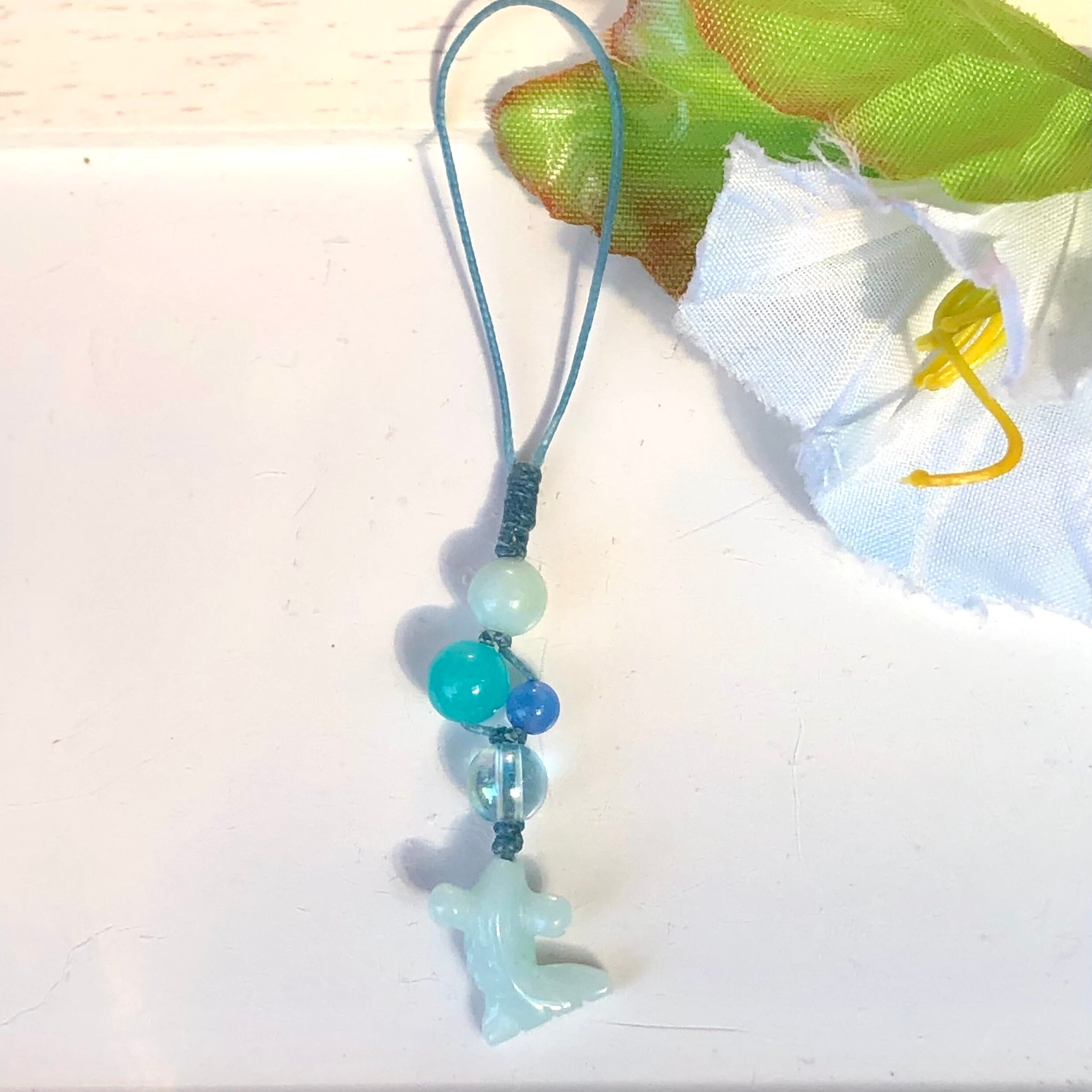 【h741d】天然石ミニ金魚ストラップ アマゾナイト[ストレス解消・精神と肉体の強化]