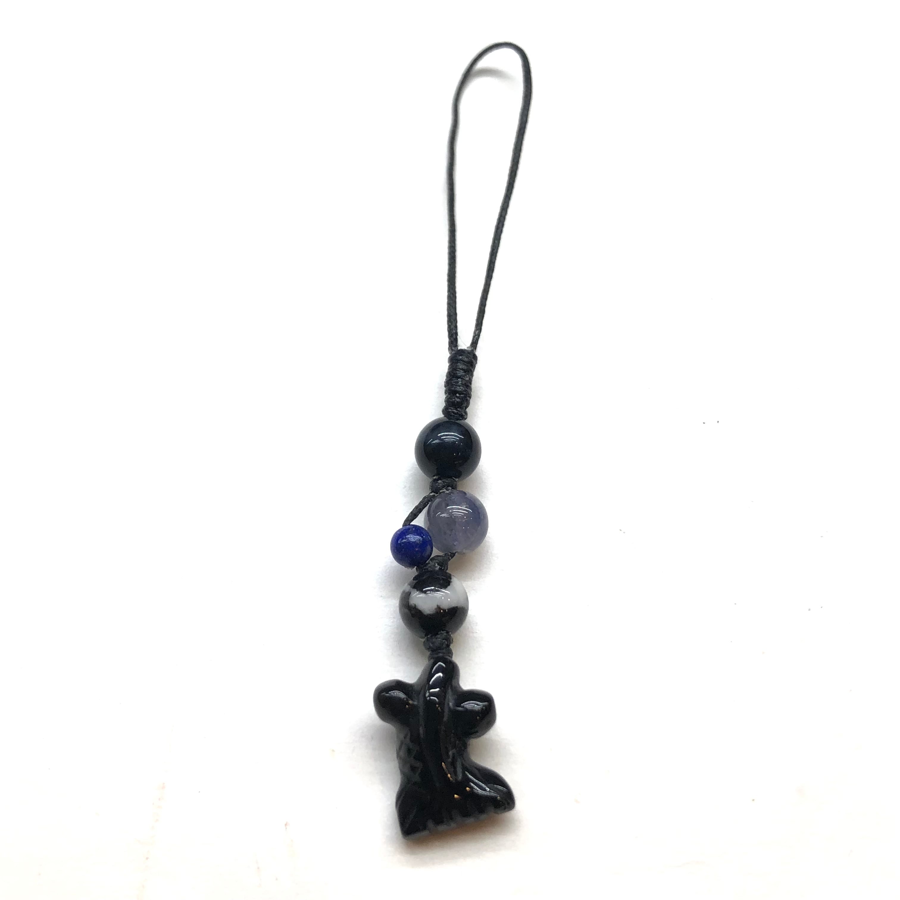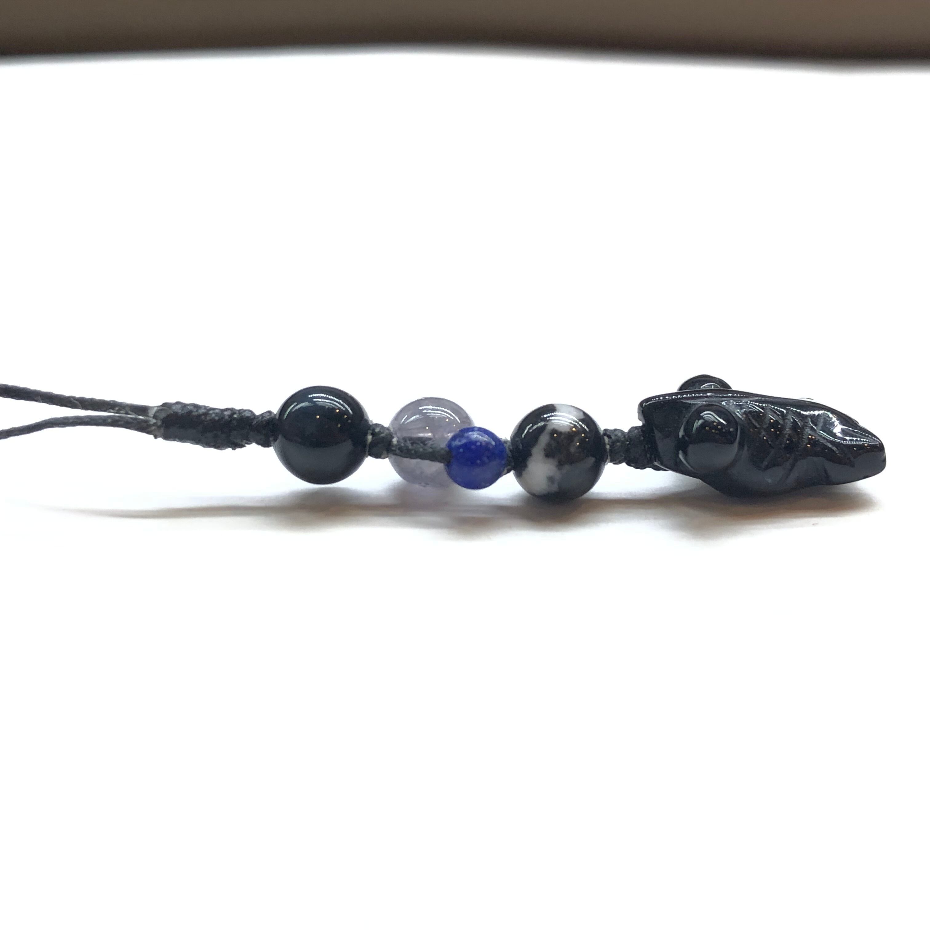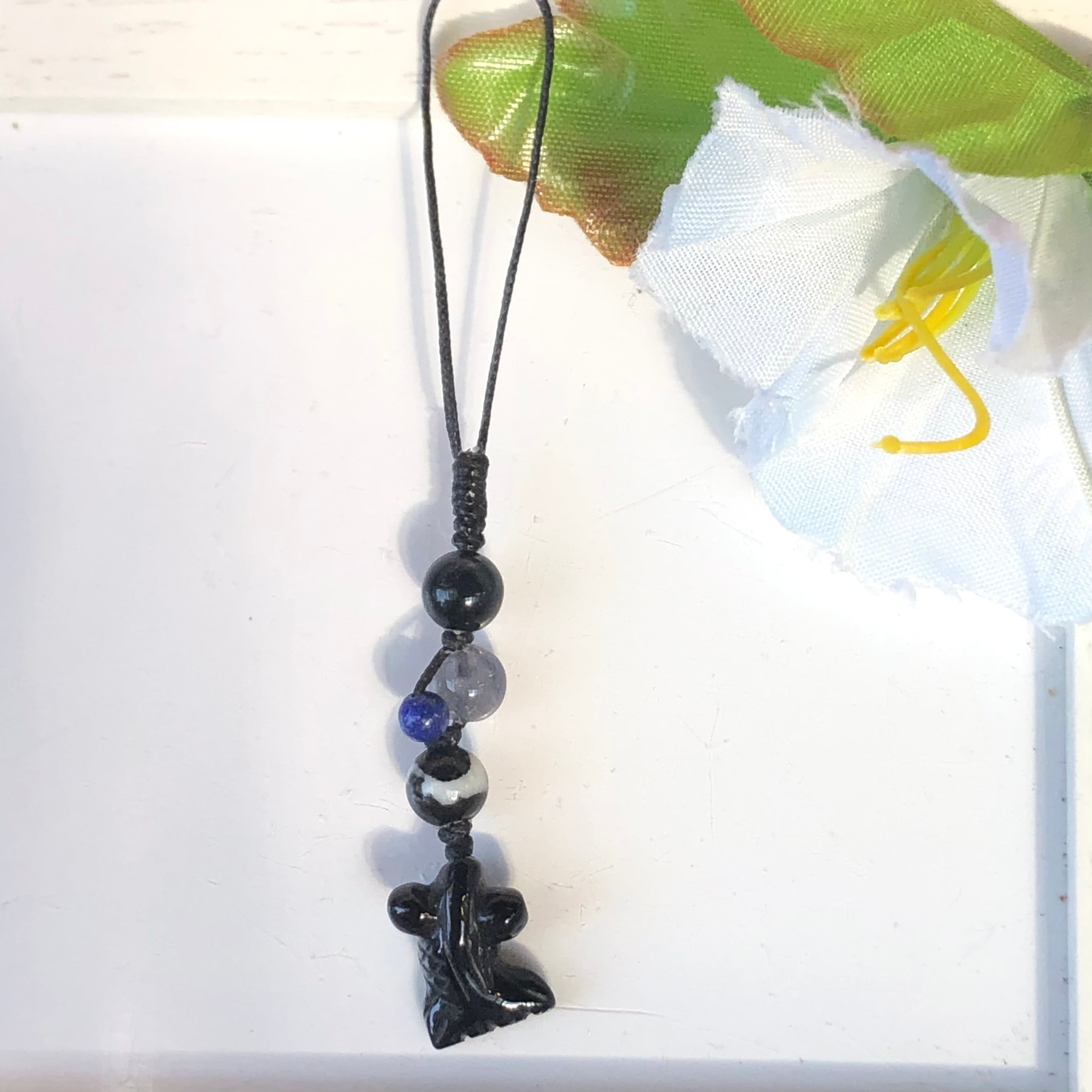 【h744d】天然石ミニ金魚ストラップ オニキス[厄除け・潜在能力開花]
