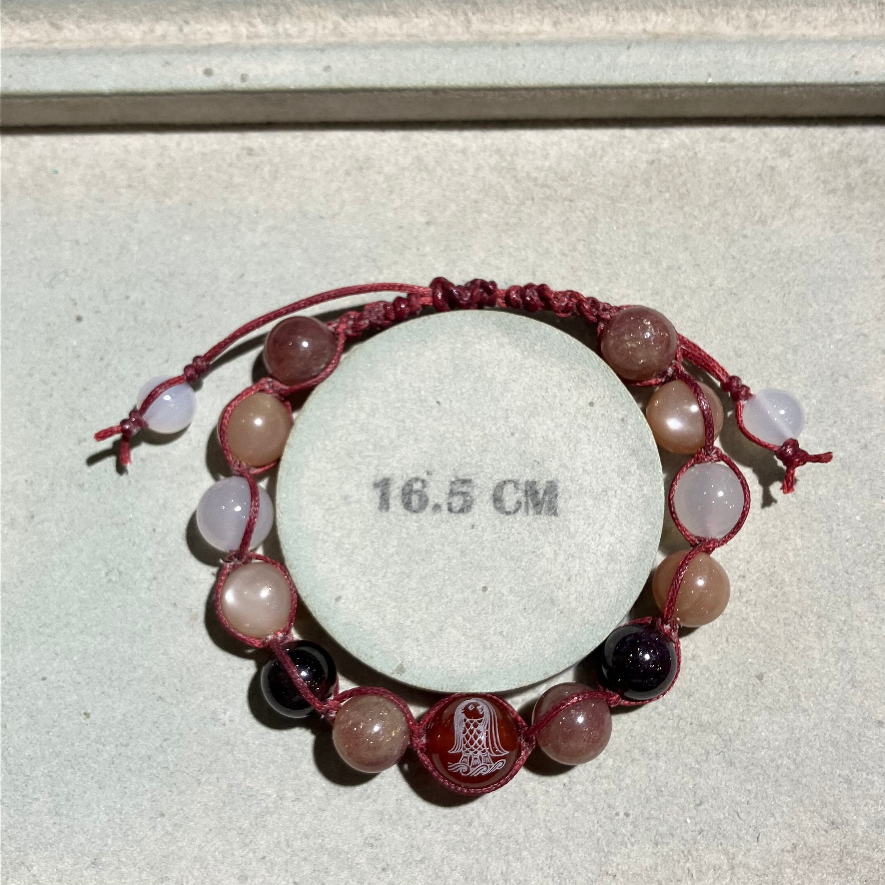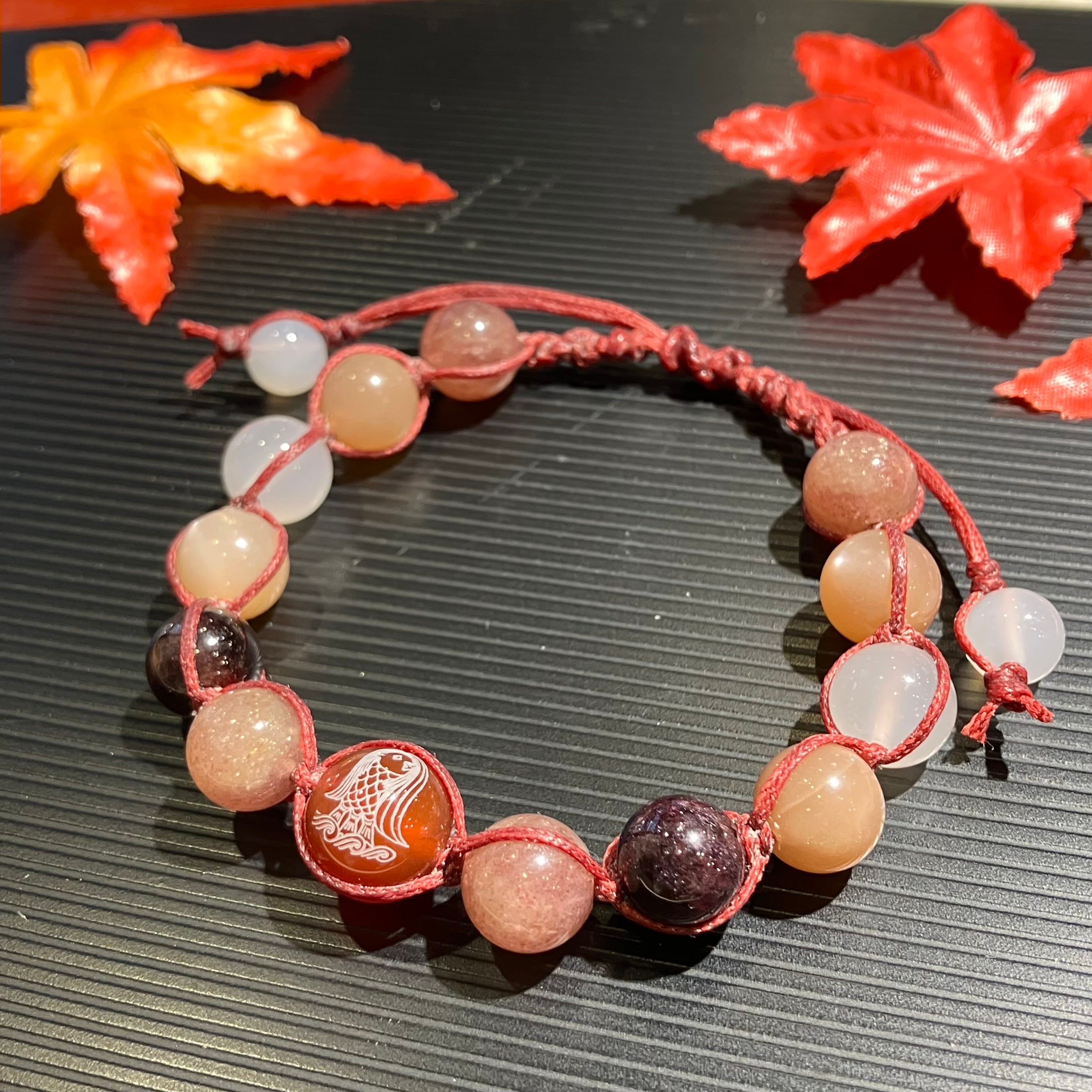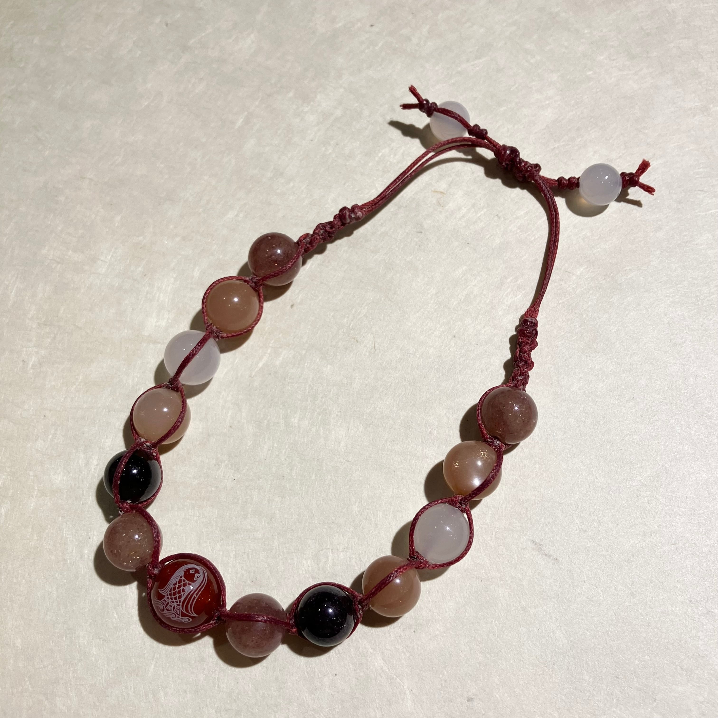 【h747d】アマビエ【赤めのう】彫り入り編みブレスレット