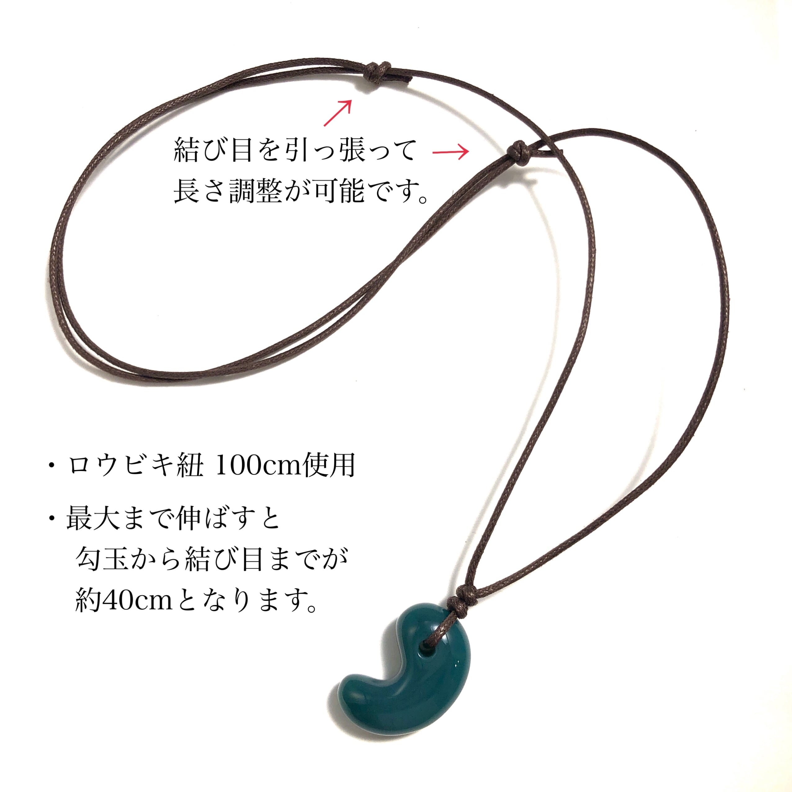 +200円でペンダント用の紐をご用意しておりますので、ペンダントにして身に付けたいという方は紐ペンダント加工をご利用ください。結んだ状態でお届け致します。
