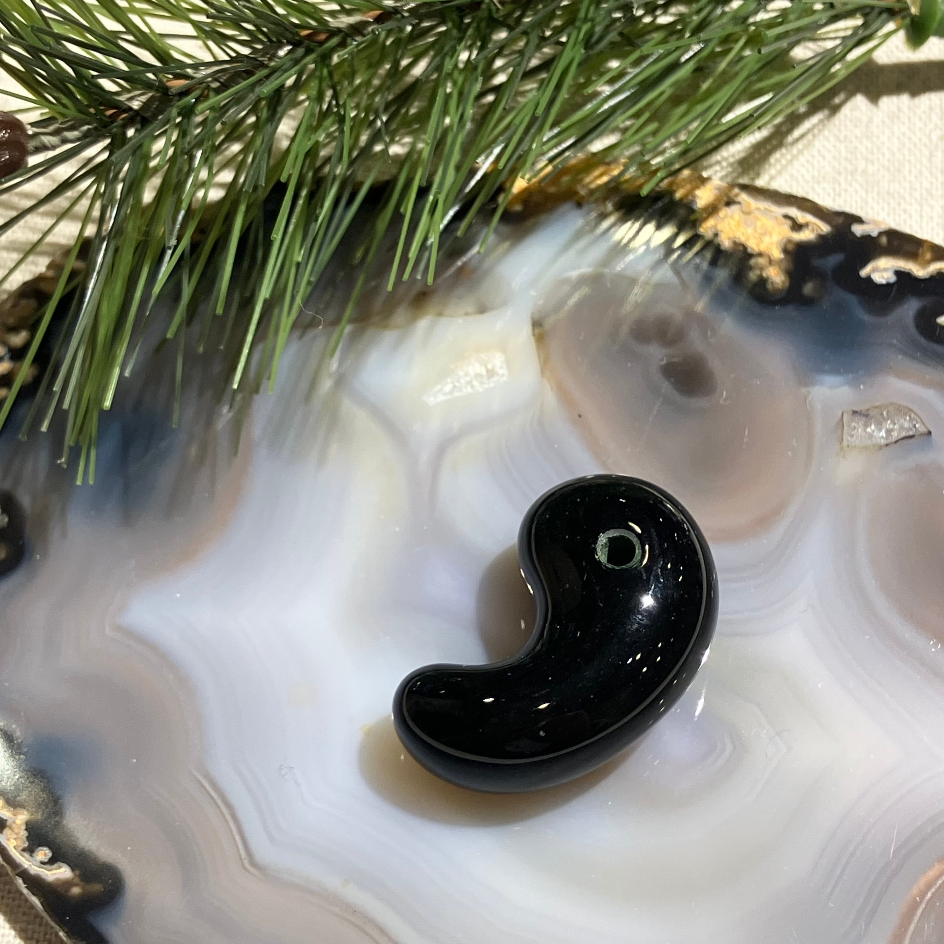 【h758d】島根県隠岐の島産 黒曜石勾玉