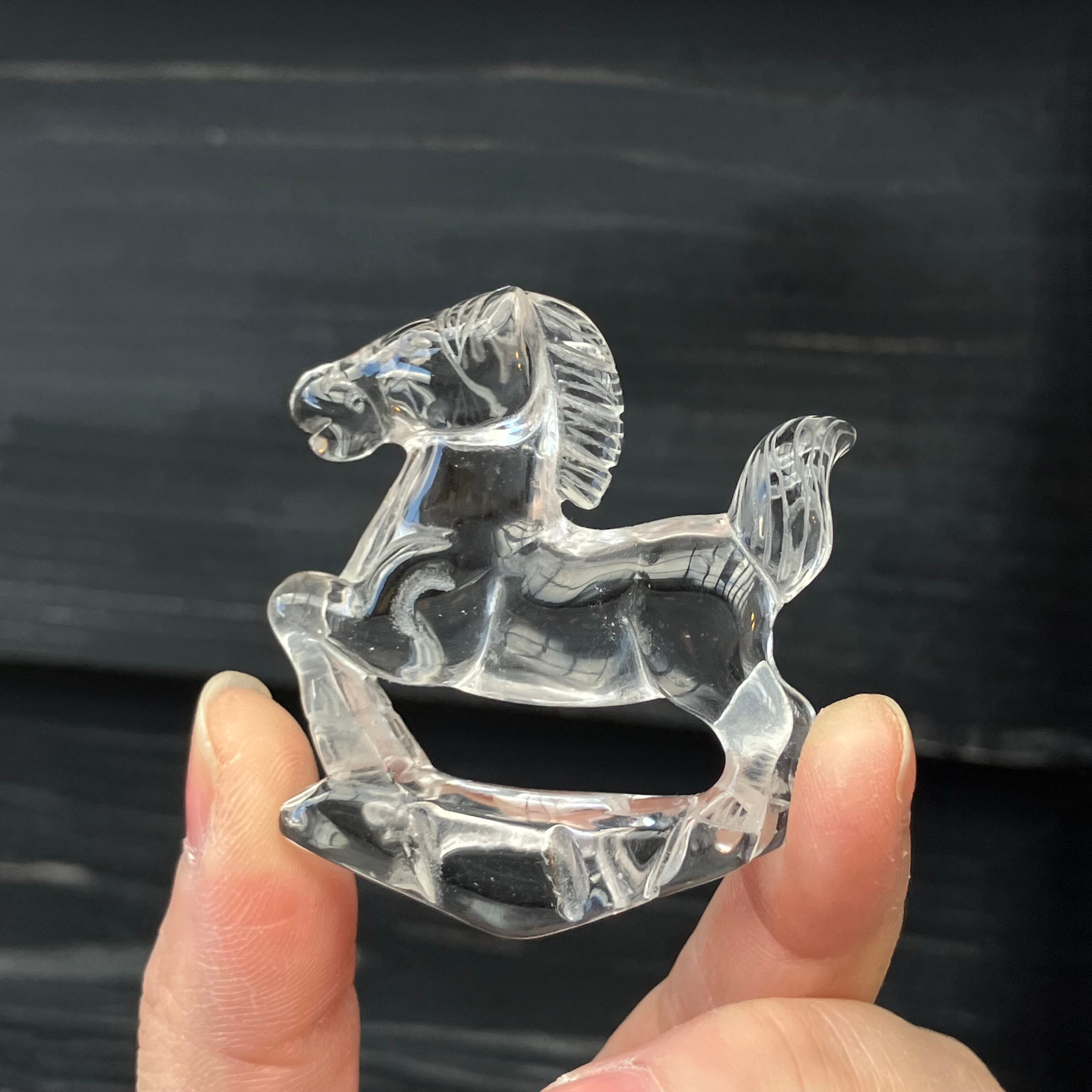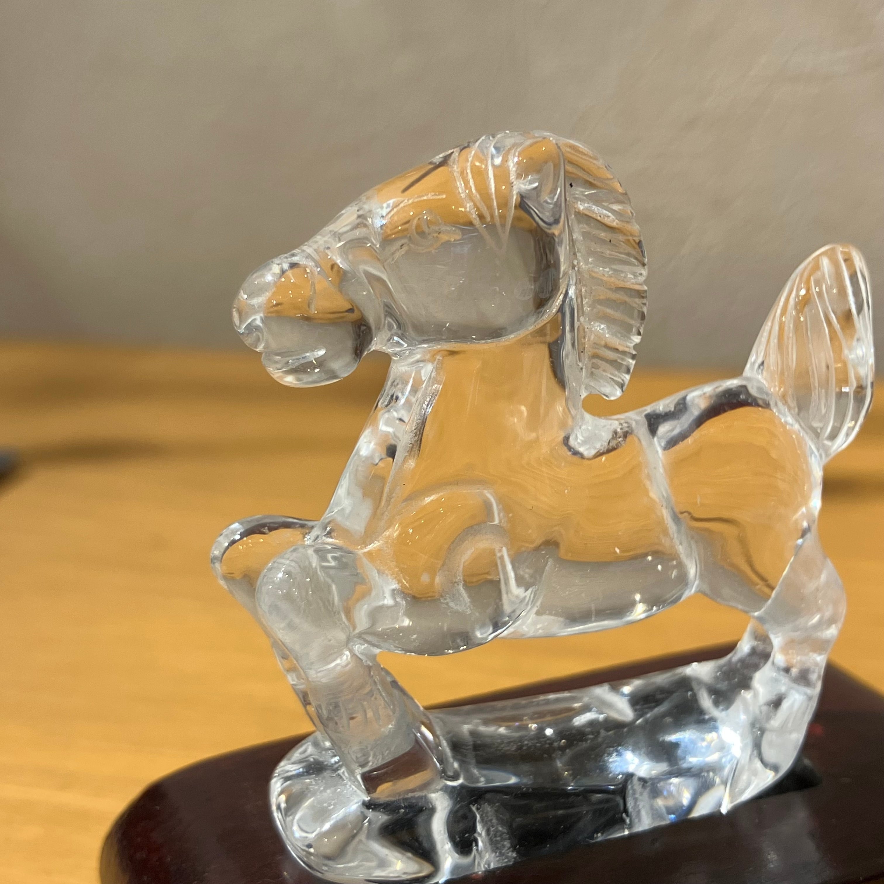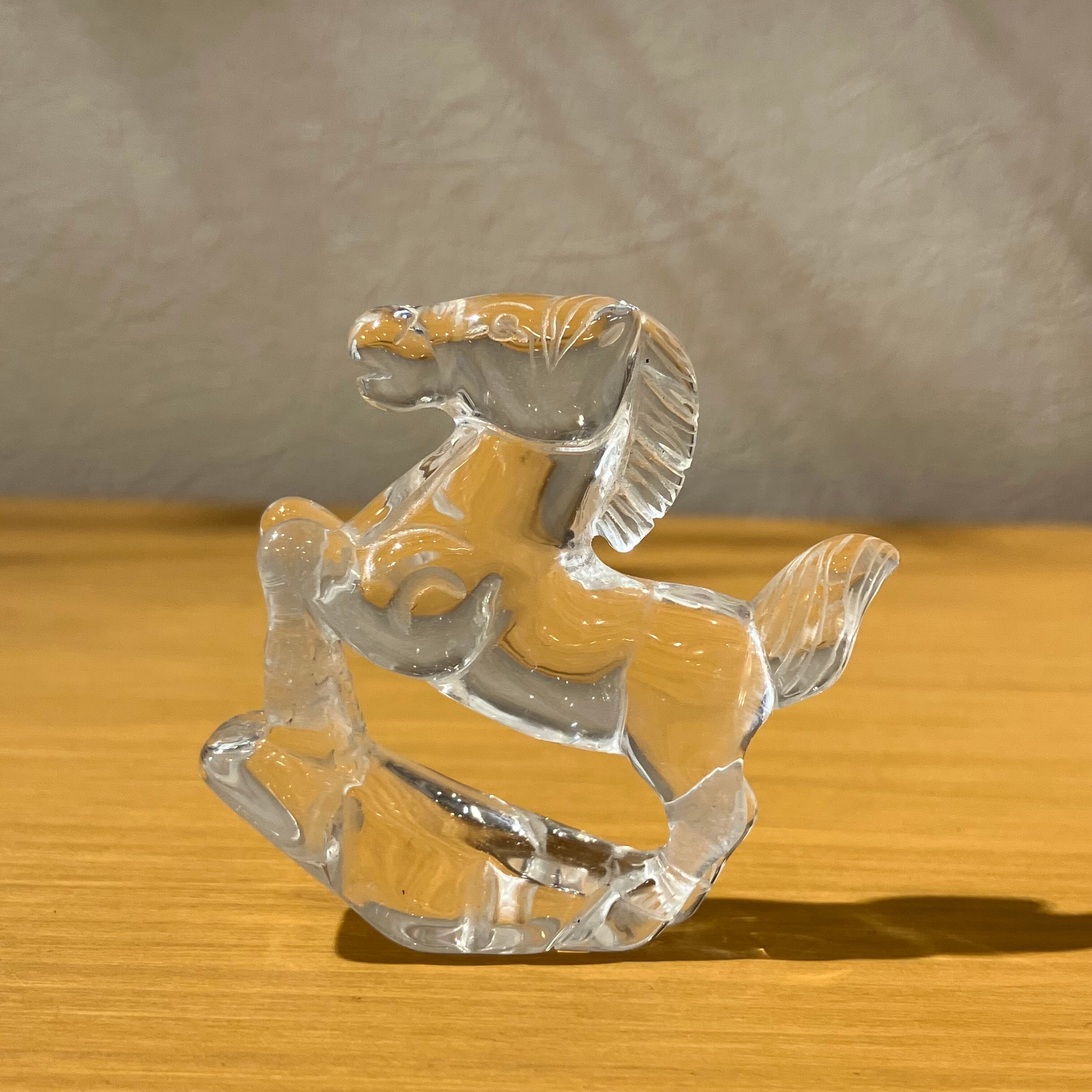 【h760d】台座付き 干支置き物 水晶【午】