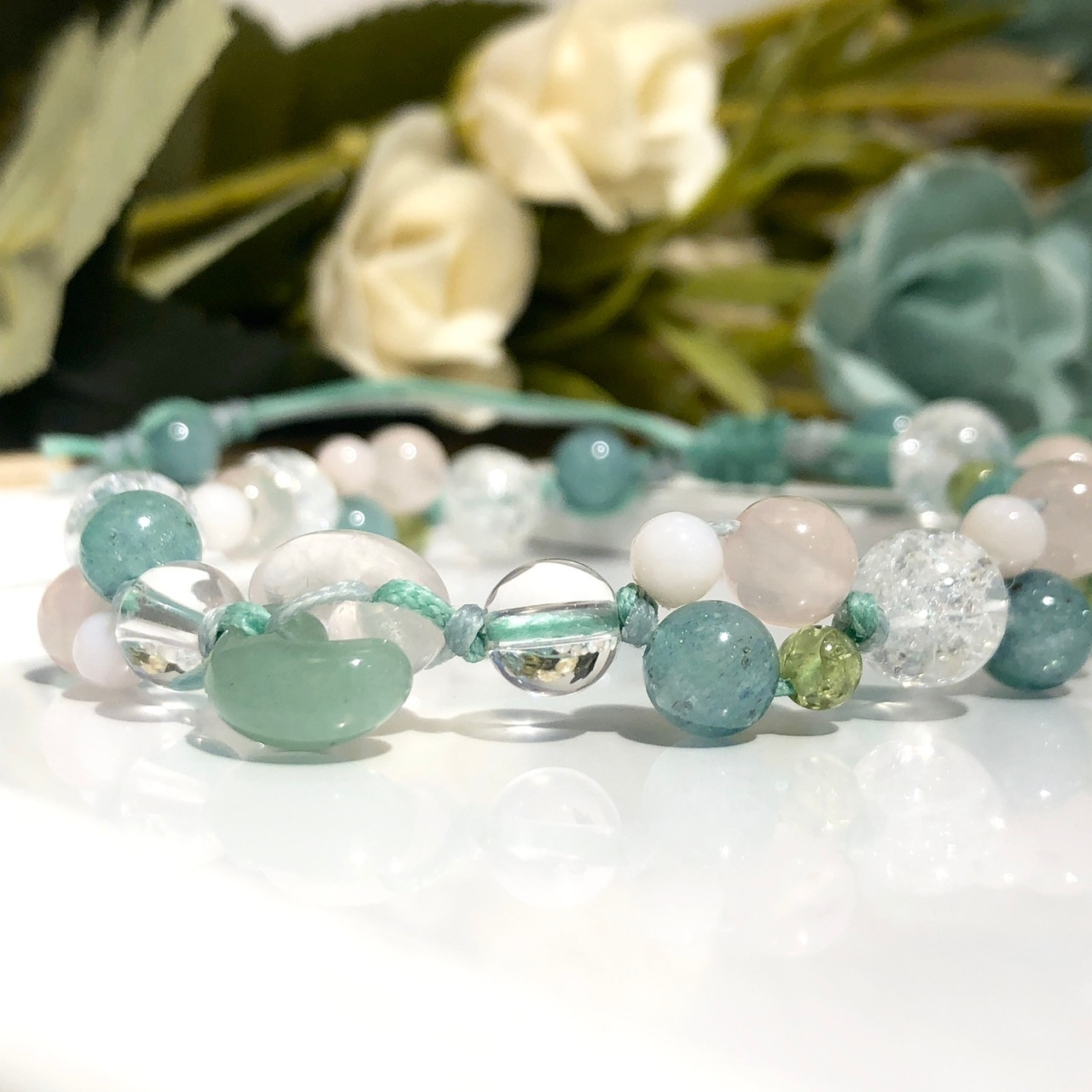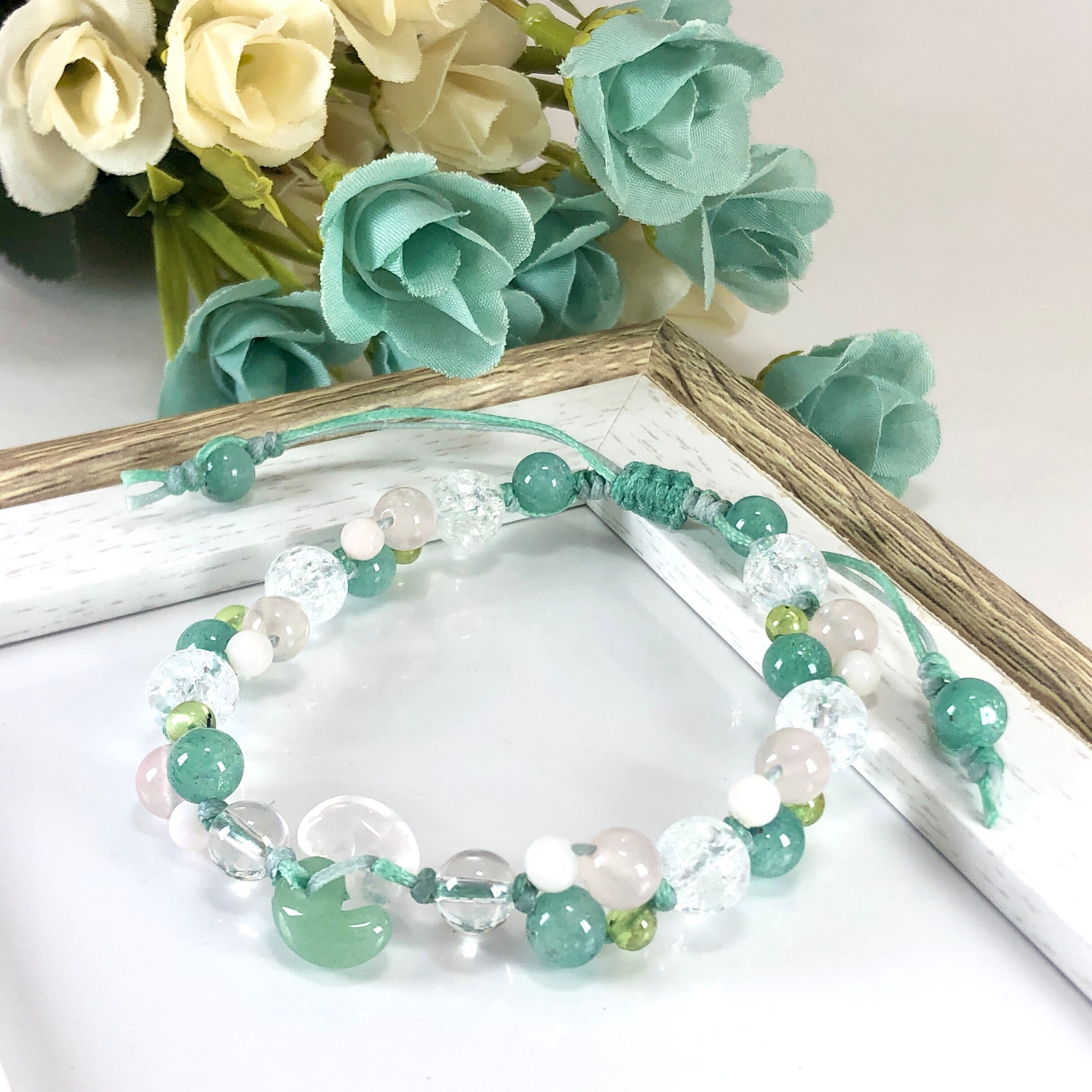 ブルーアベンチュリン、クラック水晶、ペリドット、ピンクオパール、水晶、アベンチュリン、ローズクォーツ