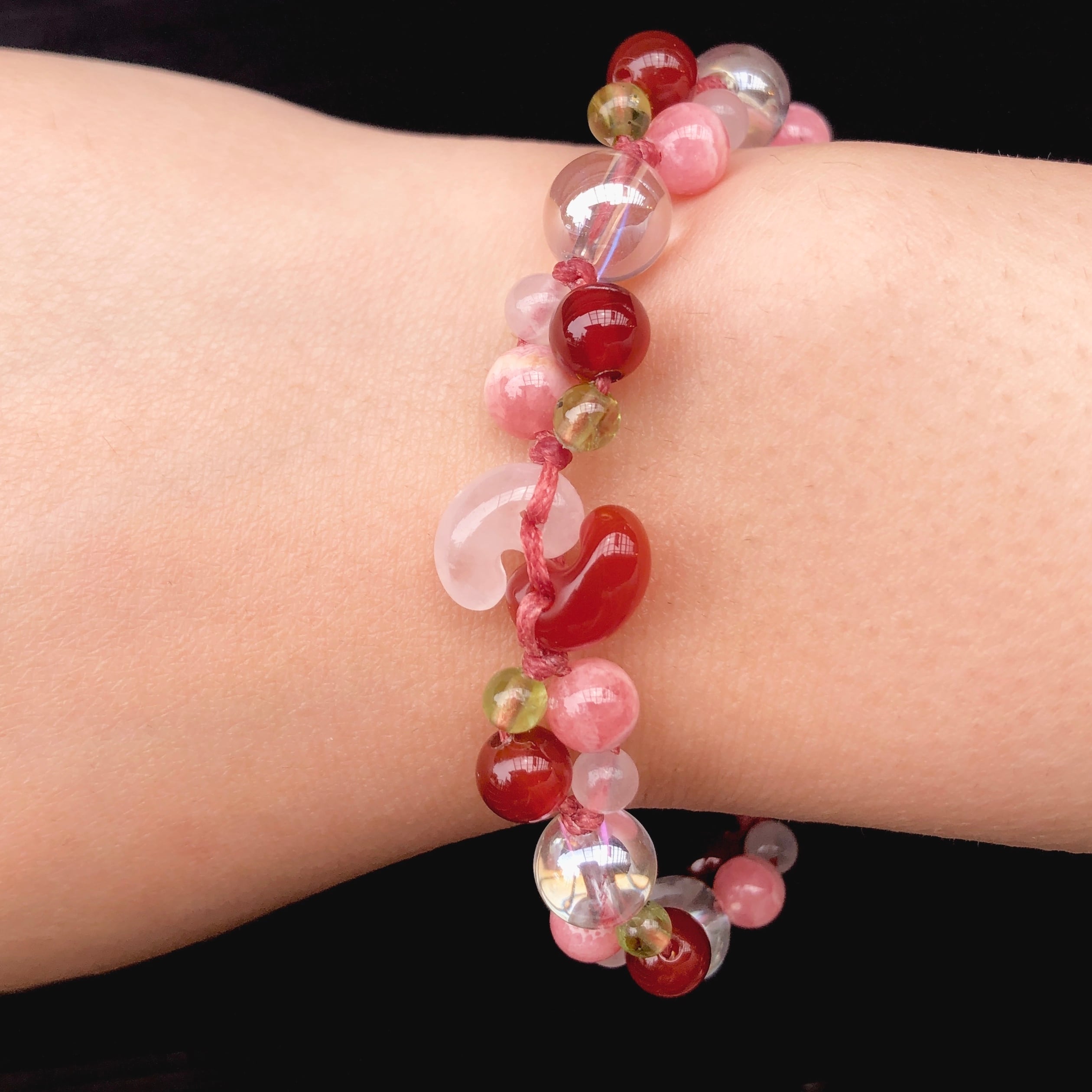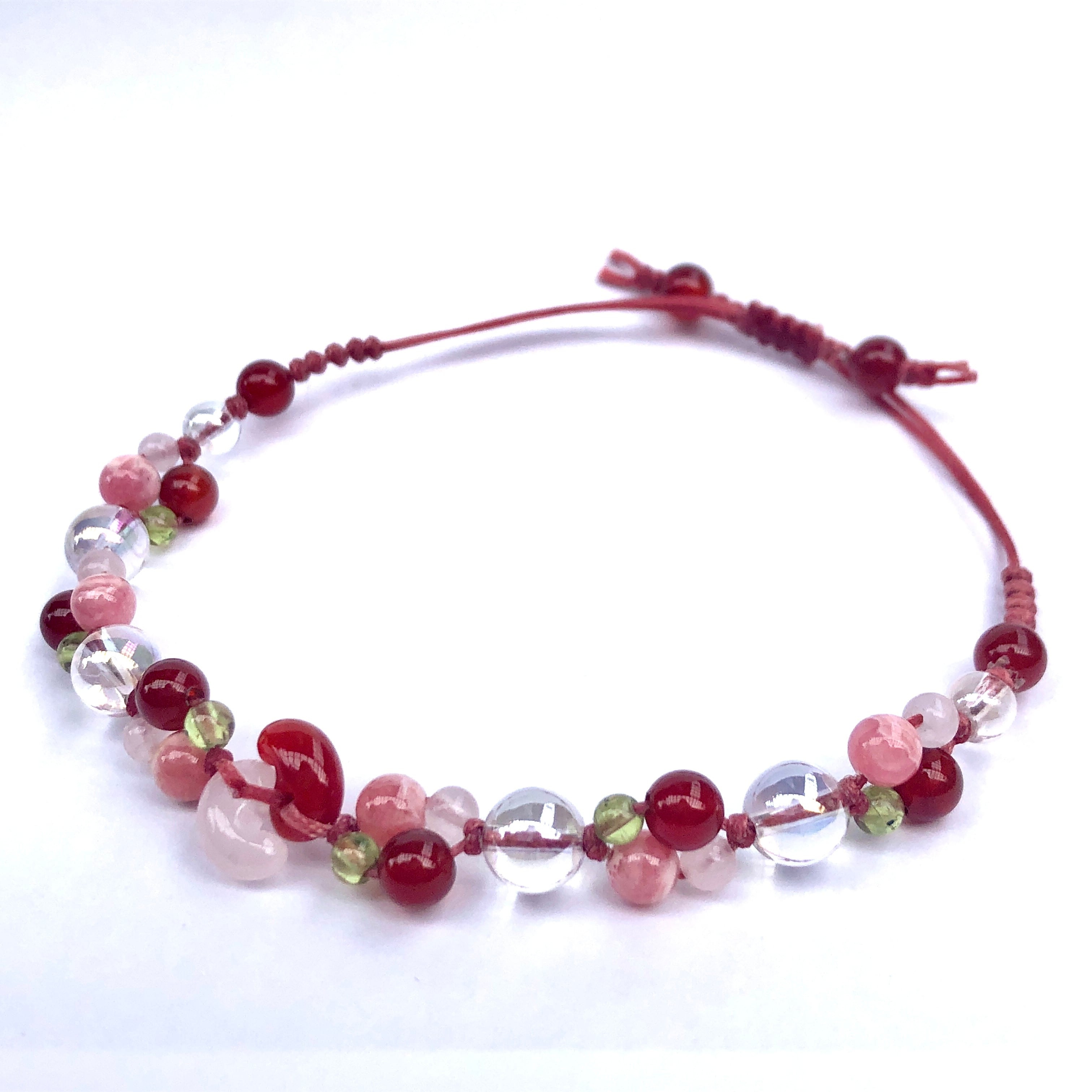ホワイトオーロラクォーツ、ロードクロサイト、ペリドット、赤めのう、ローズクォーツ