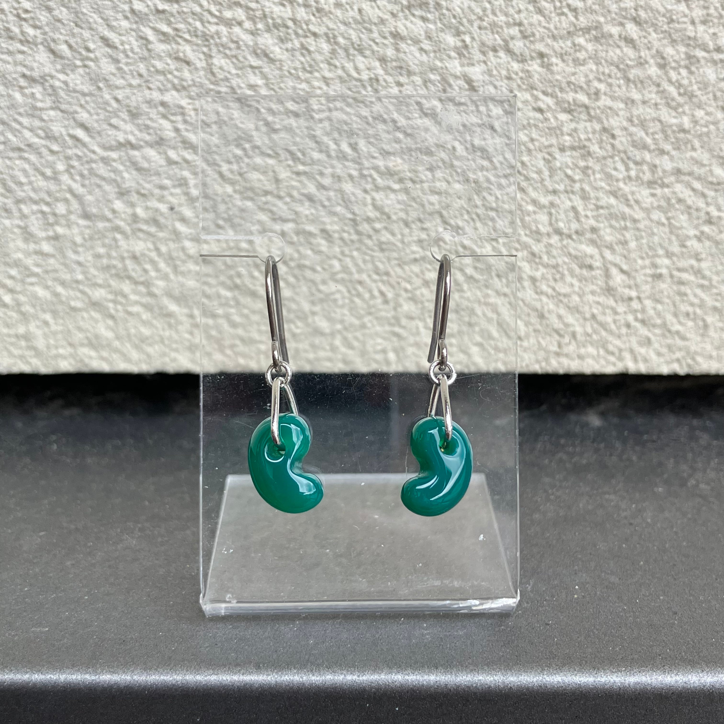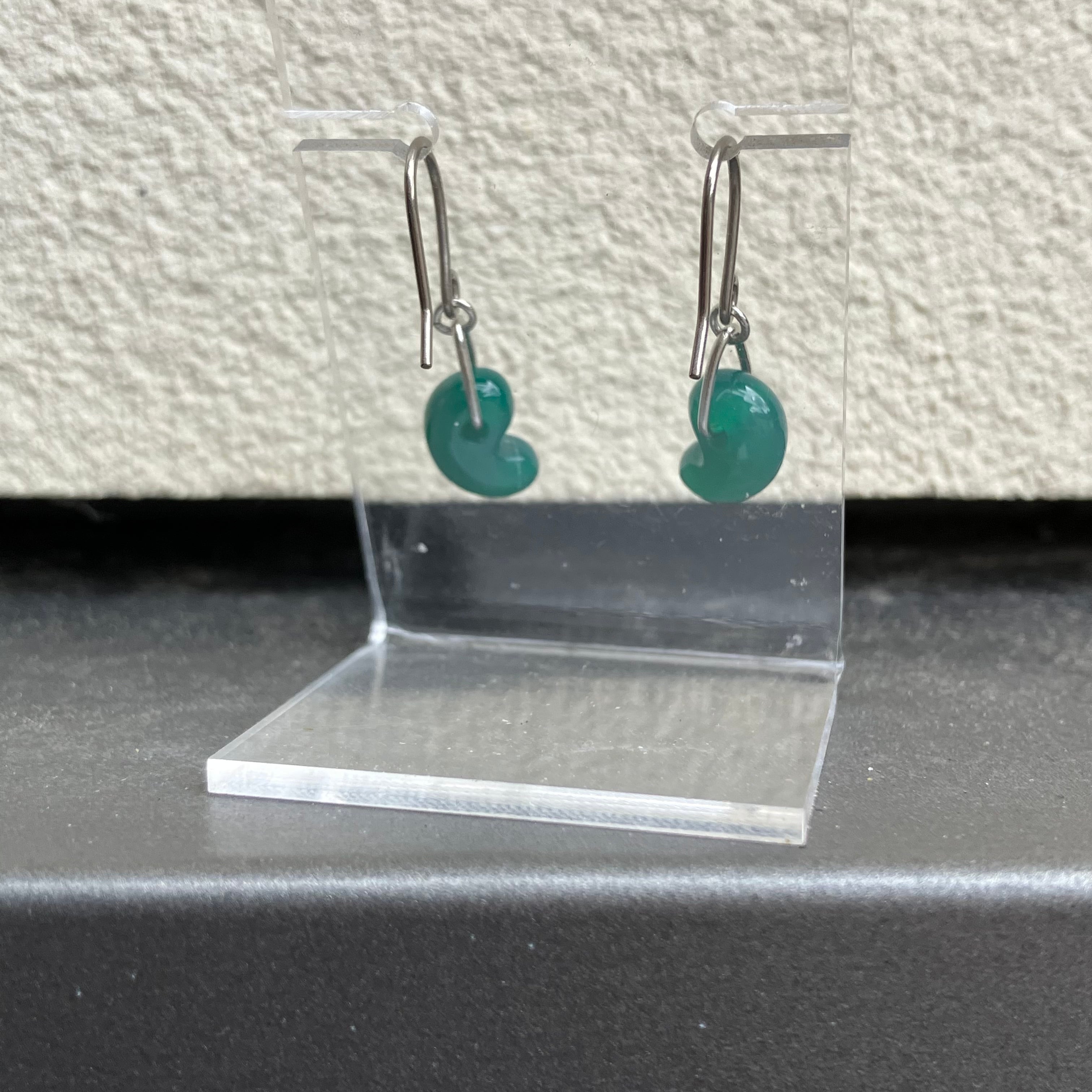 【h43d】勾玉ピアス 【青メノウ】健康・長寿