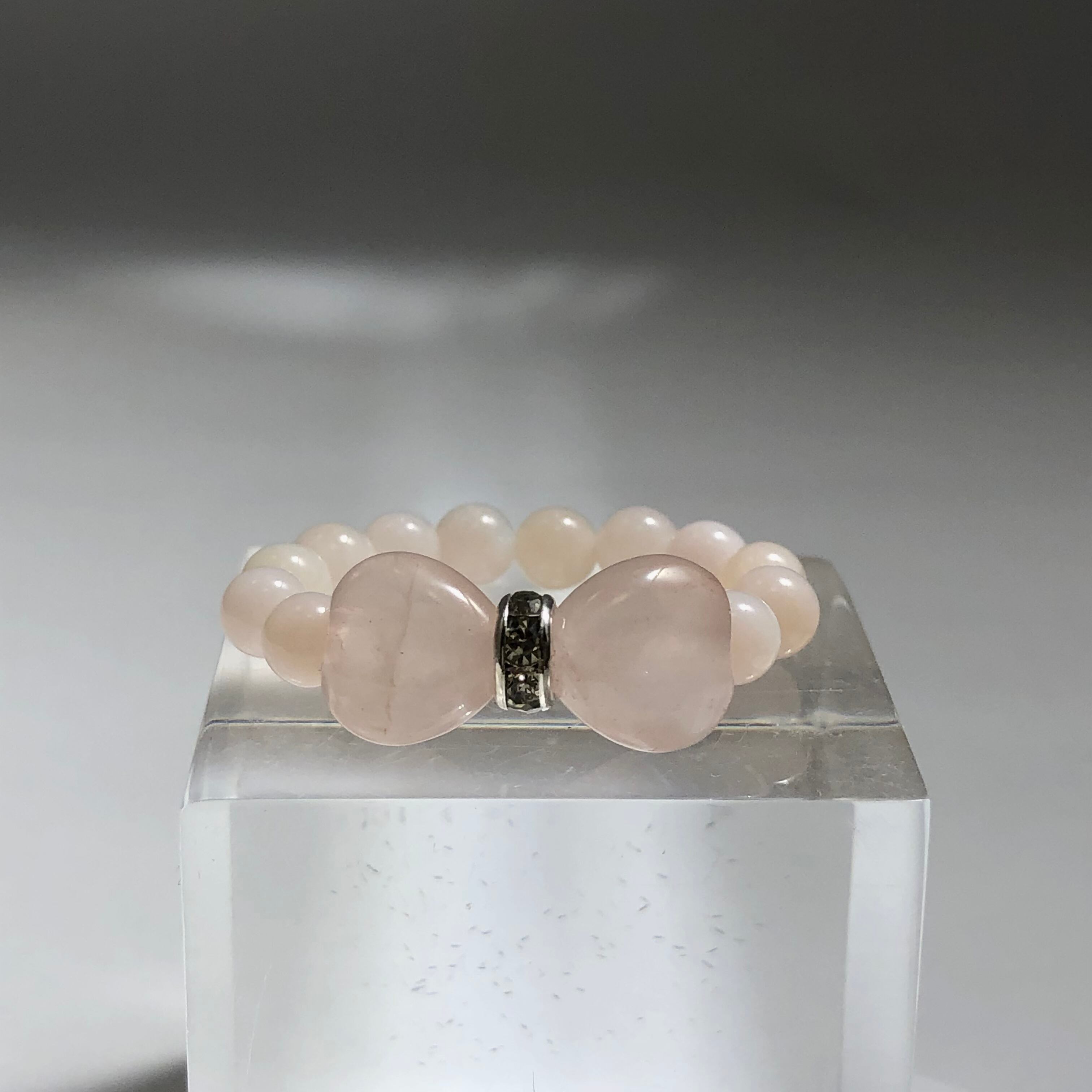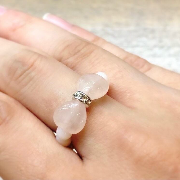 ローズクォーツを使用したリボンモチーフとピンクオパールを組み合わせた可愛らしいリングです♡