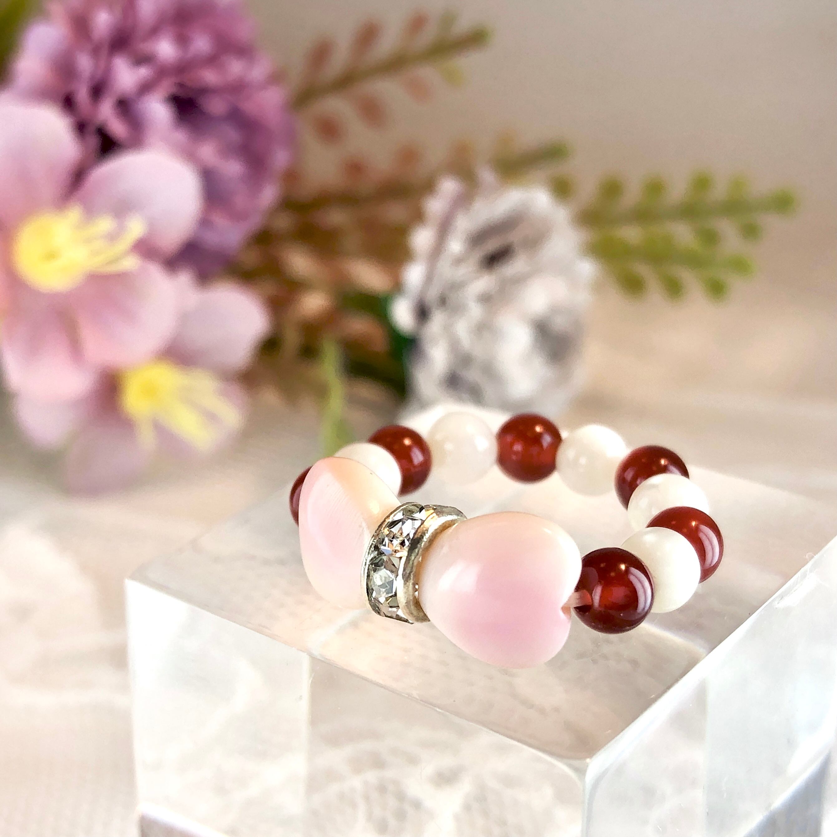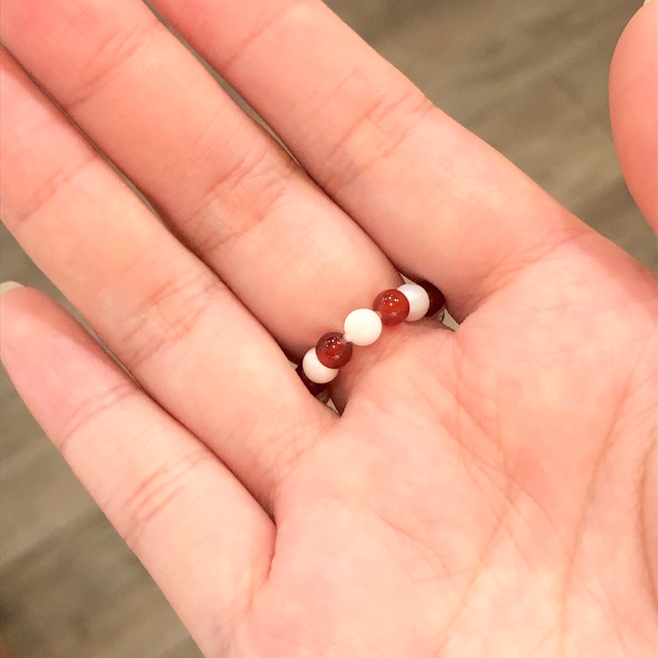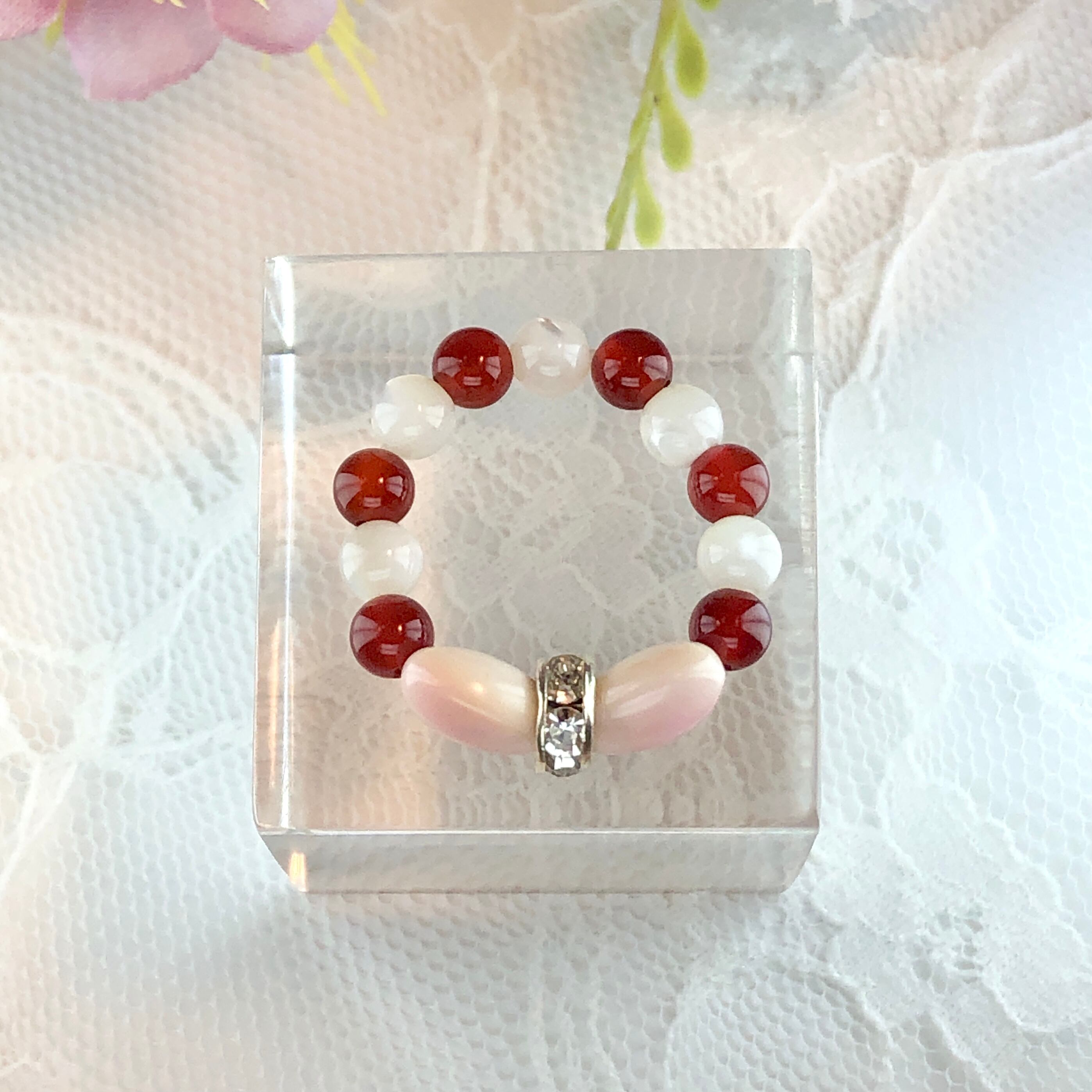そして、赤メノウとマザーオブパールは共に家族運や子宝安産に良いといわれているので、家族円満や子宝安産ぴったりなリングです♡