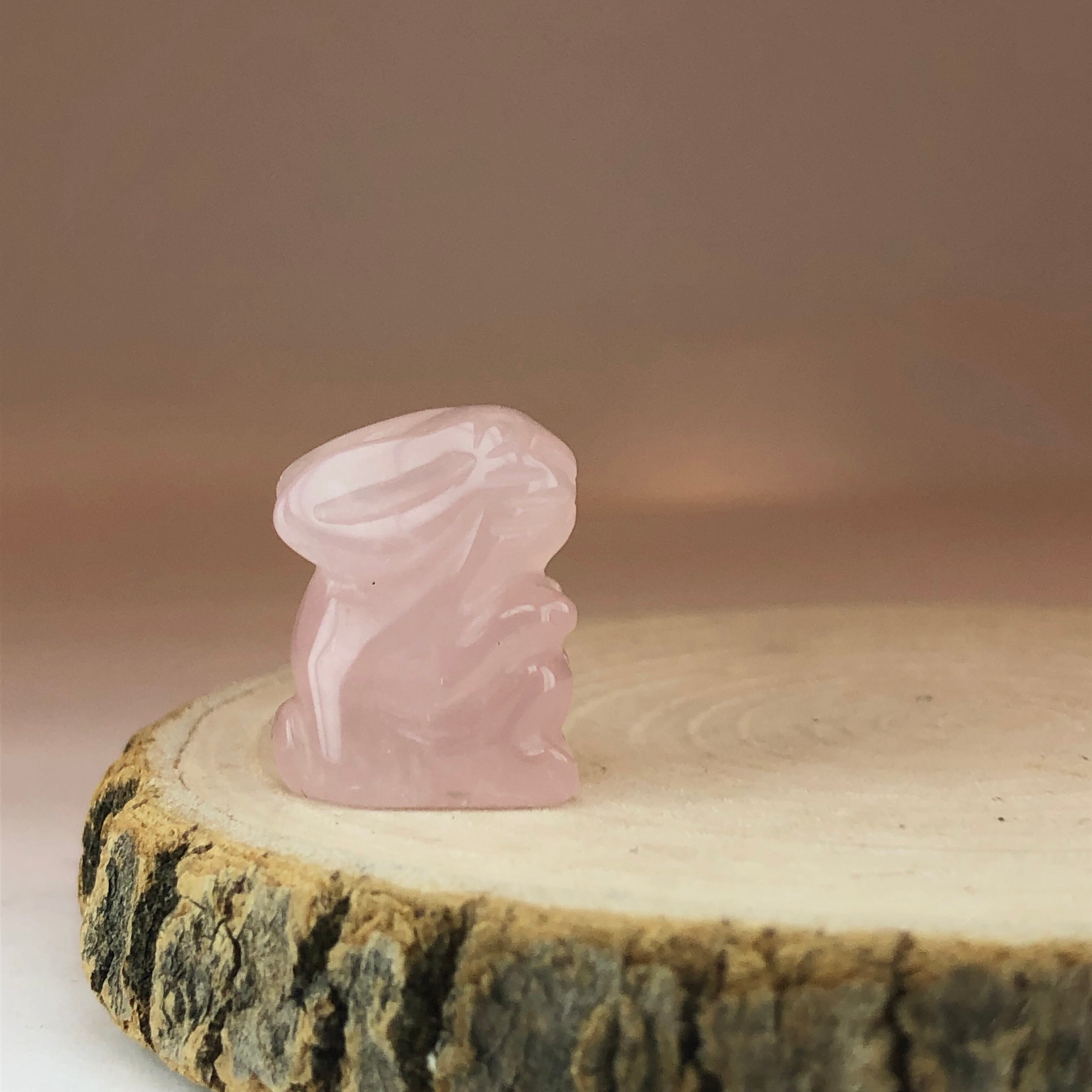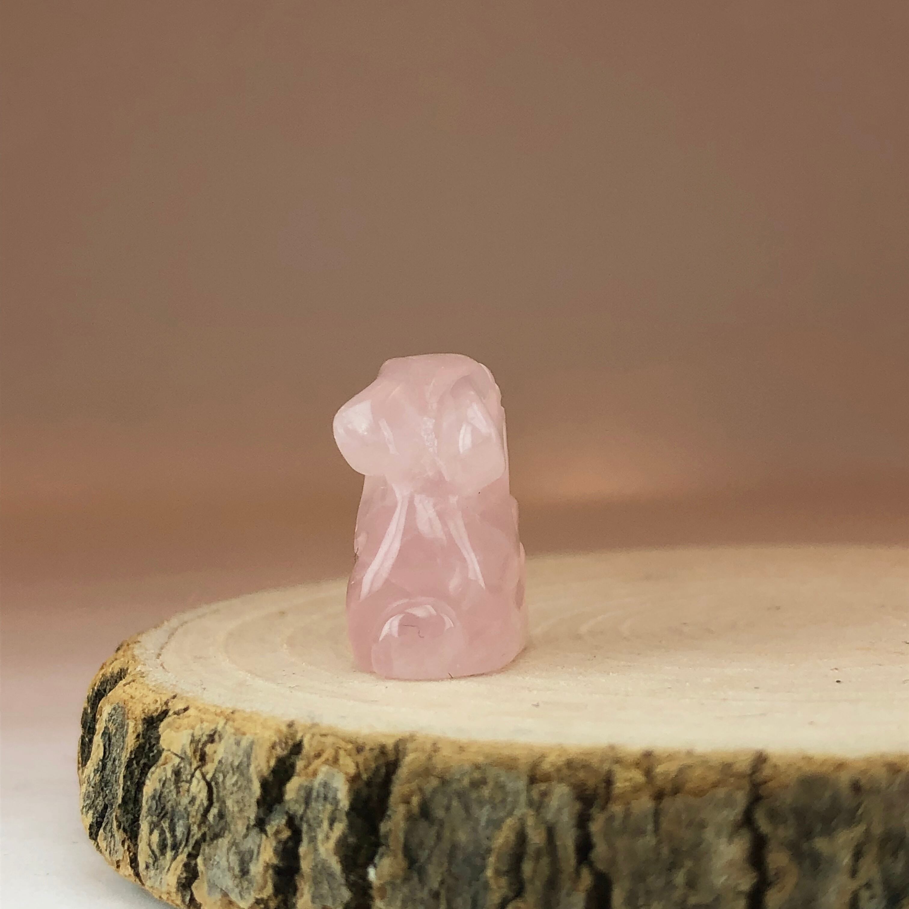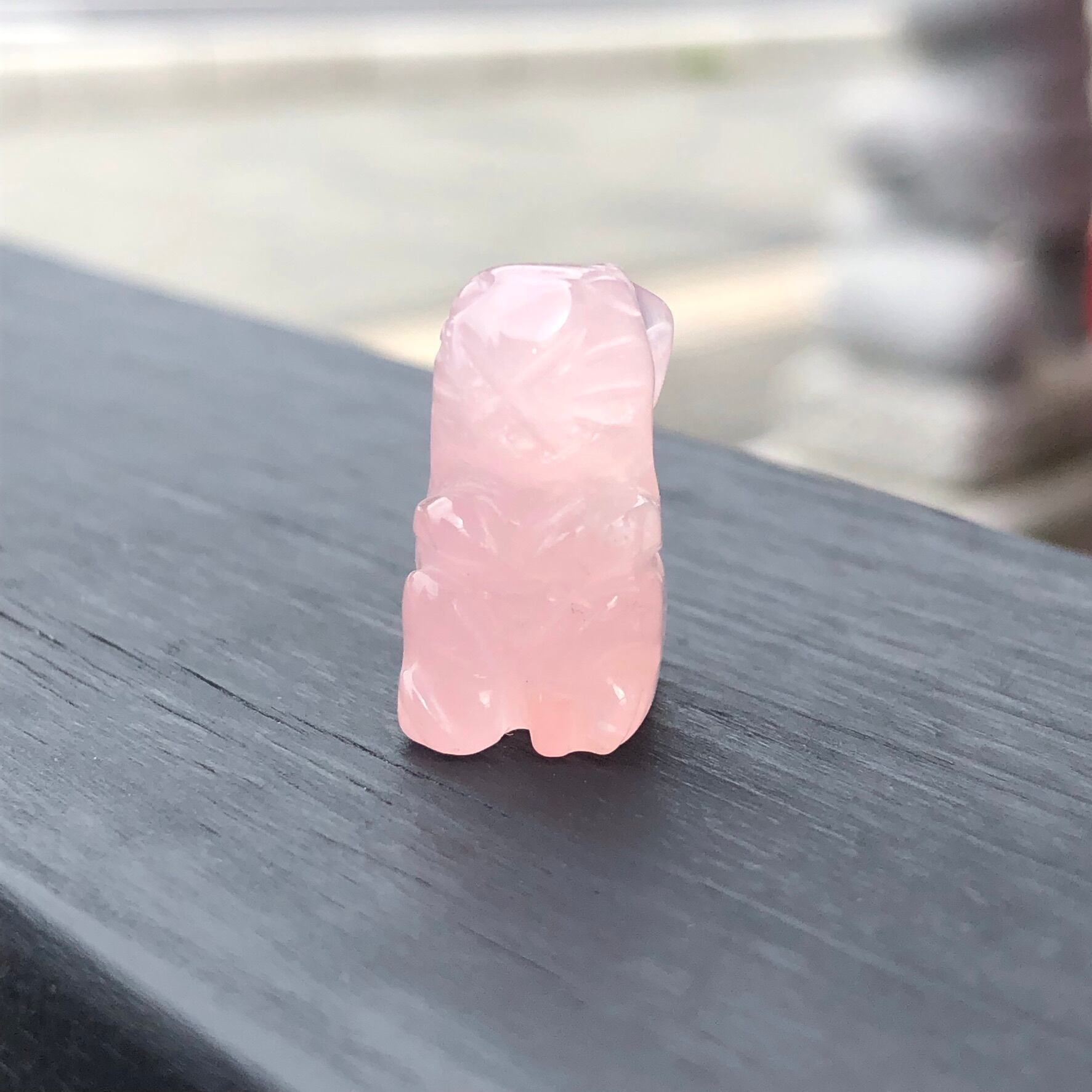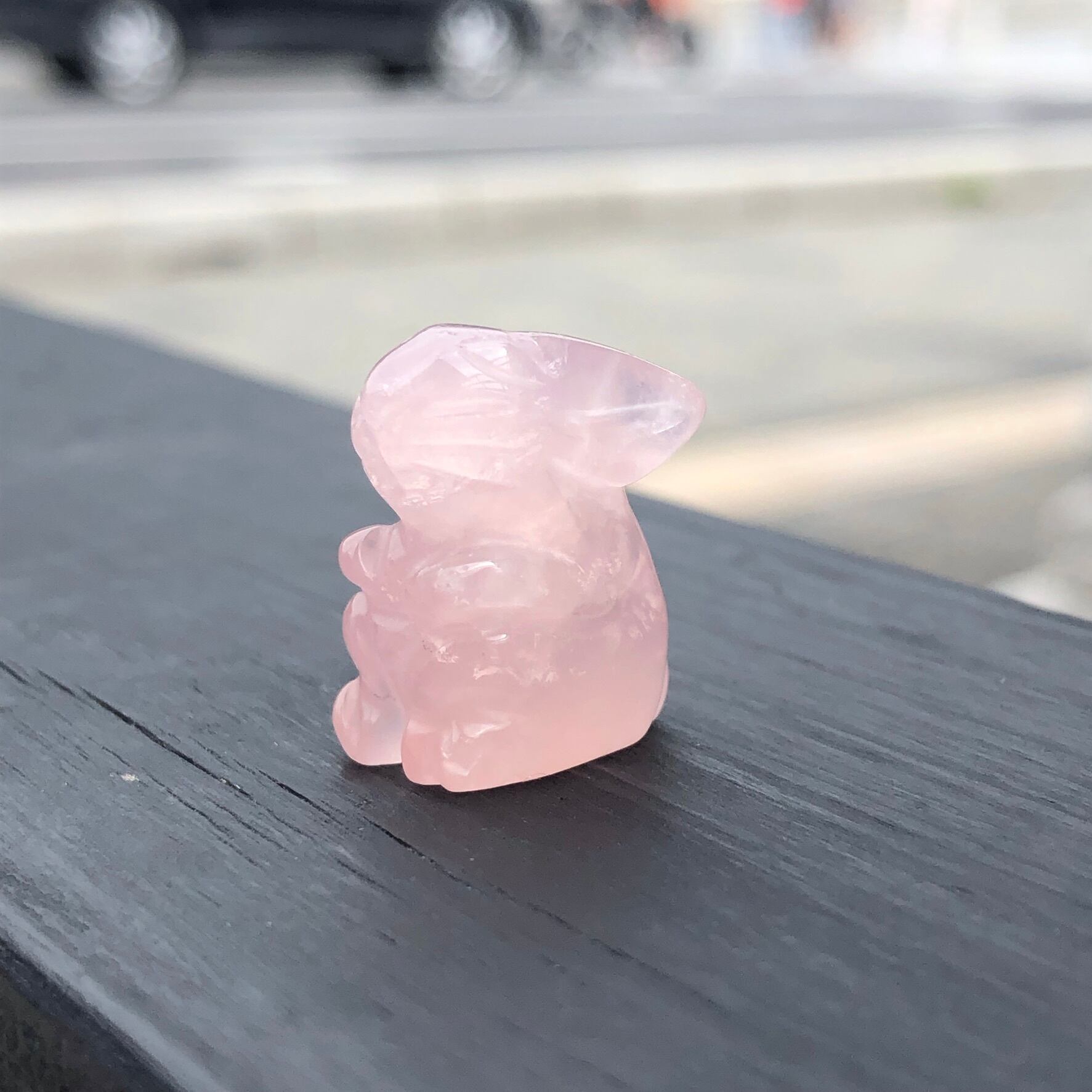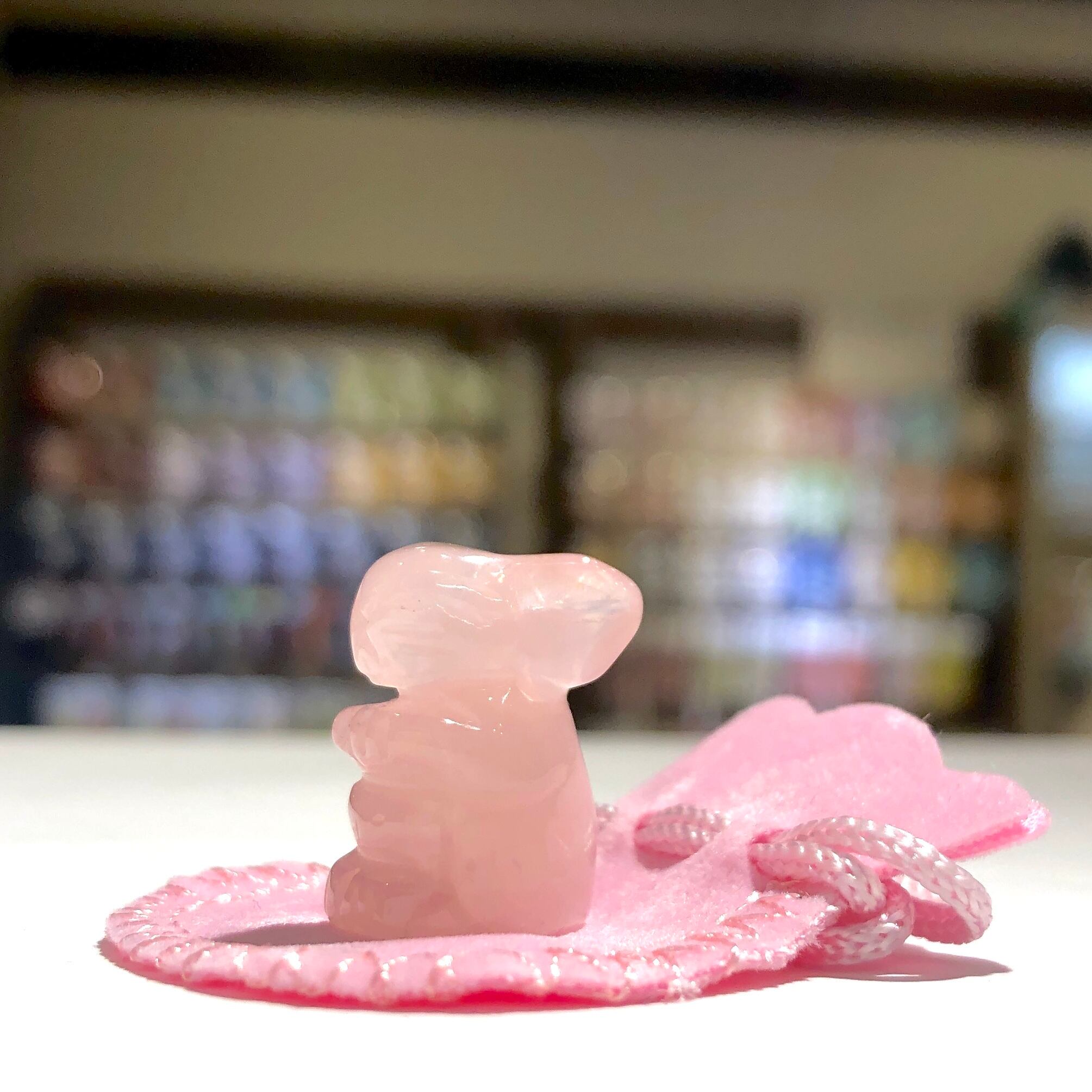 こちらは恋愛成就の石として有名なローズクォーツでできたうさぎの置き物です♡