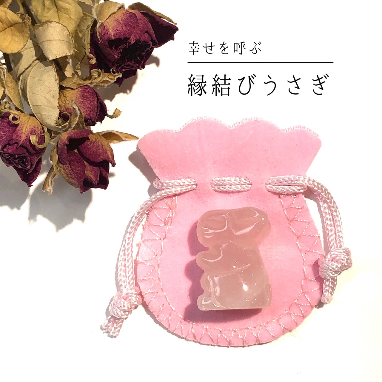 【h71d】縁結びうさぎ 巾着袋付き【ローズクォーツ】