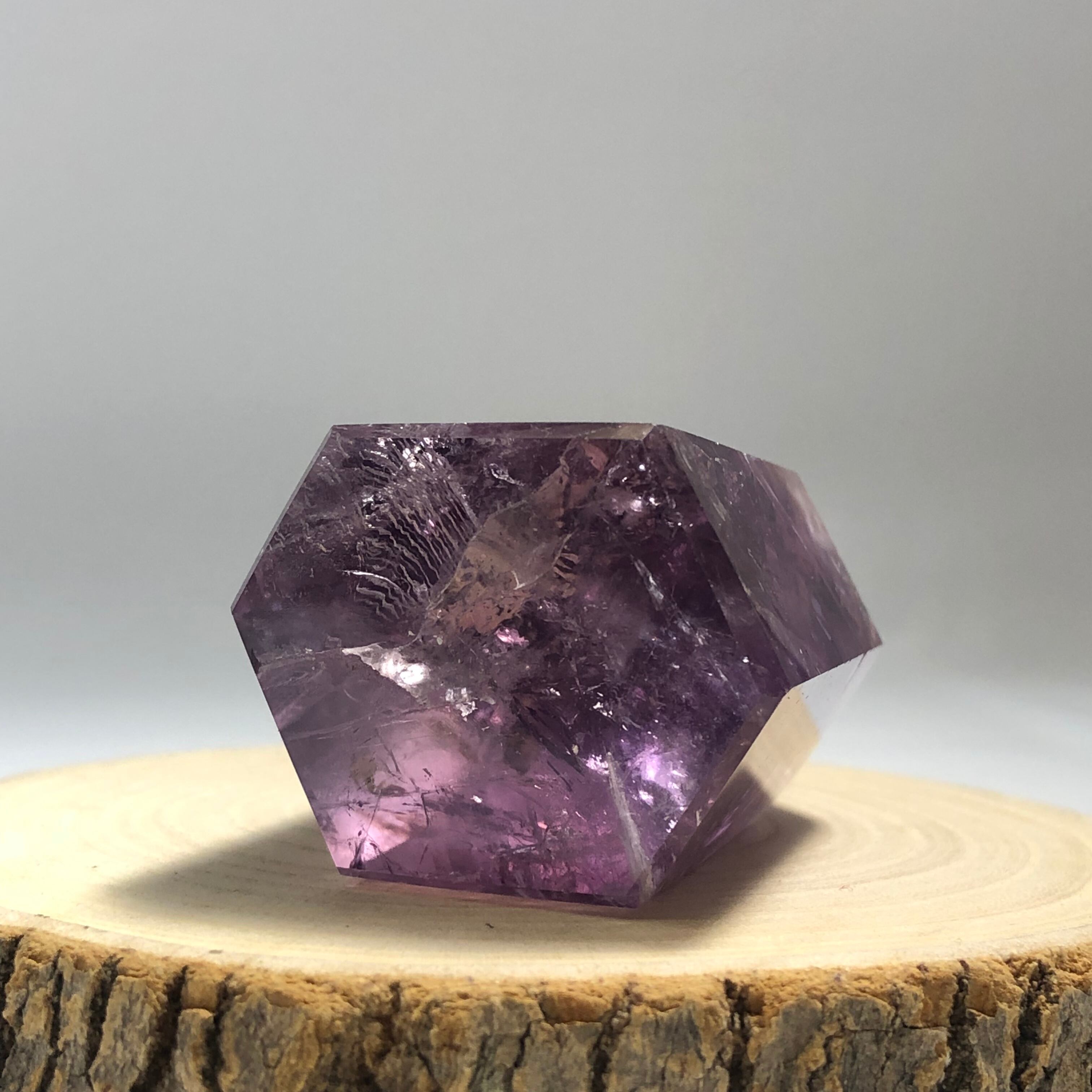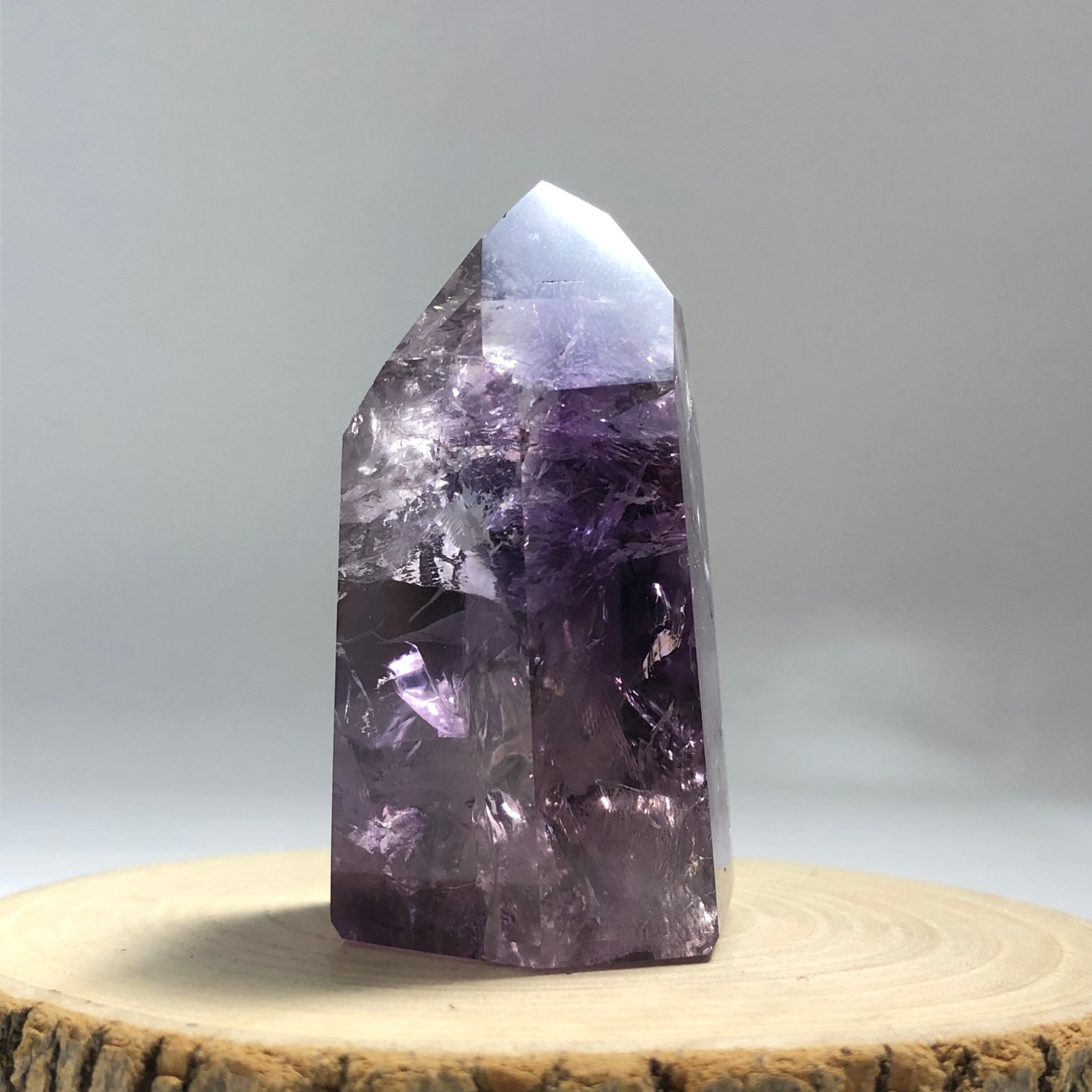 こちらのアメシストポイントは内部のクラックによる虹が見られますよ!