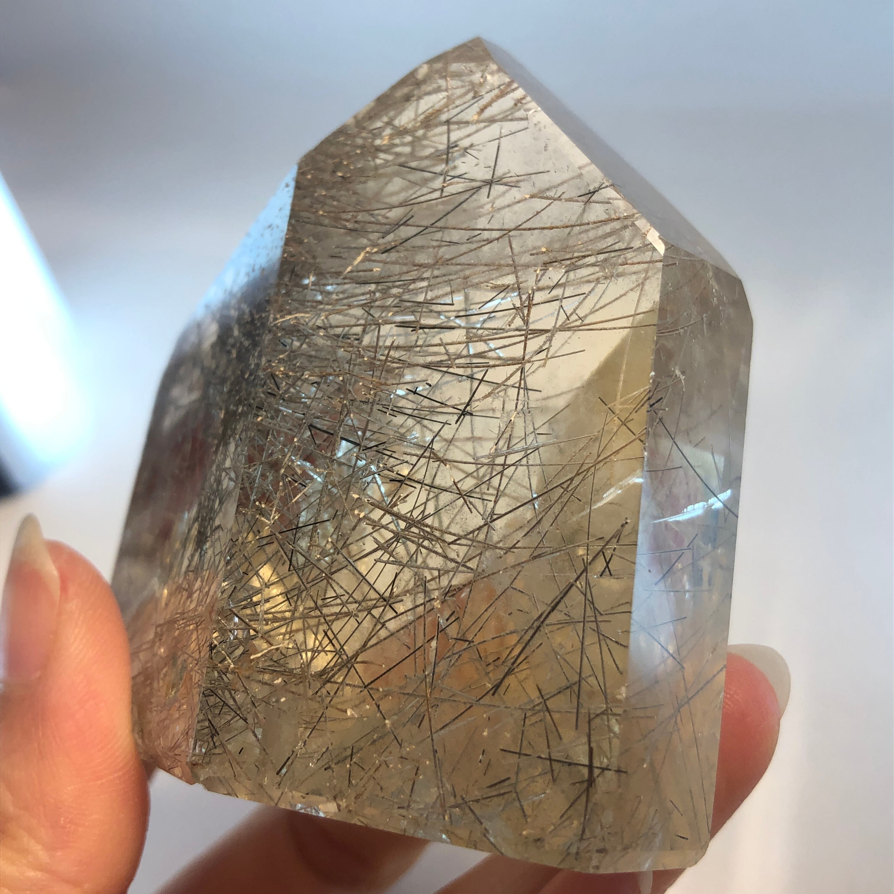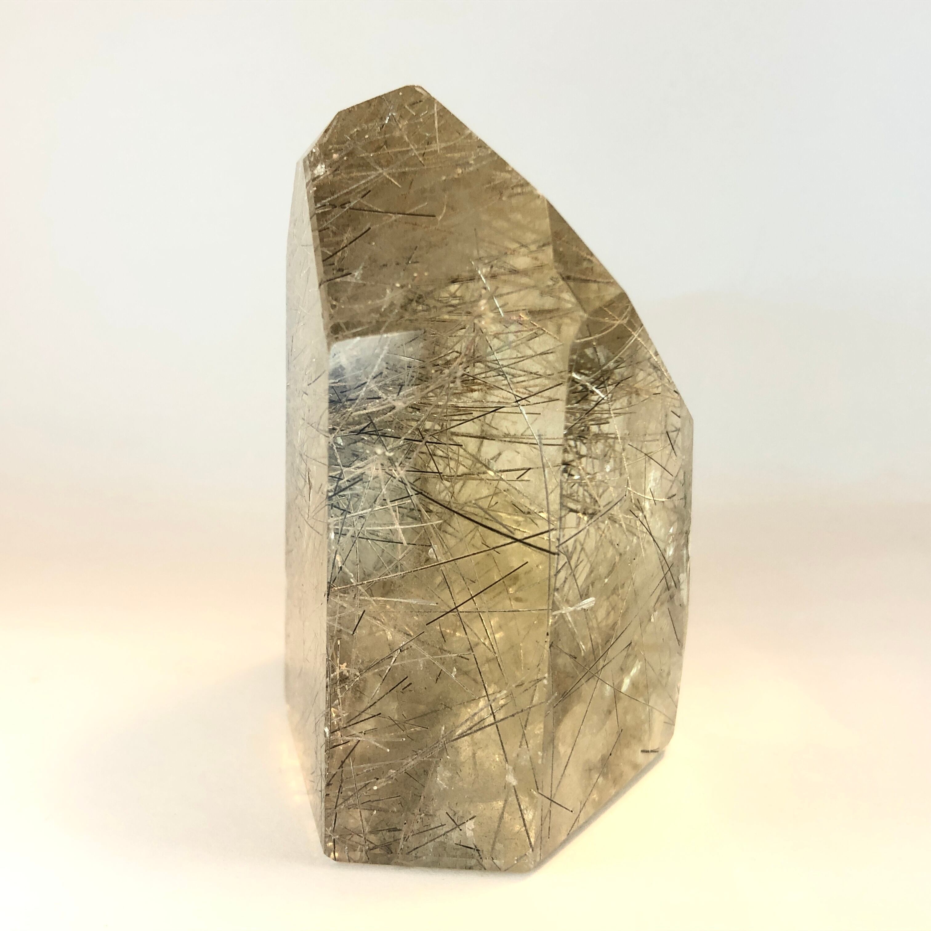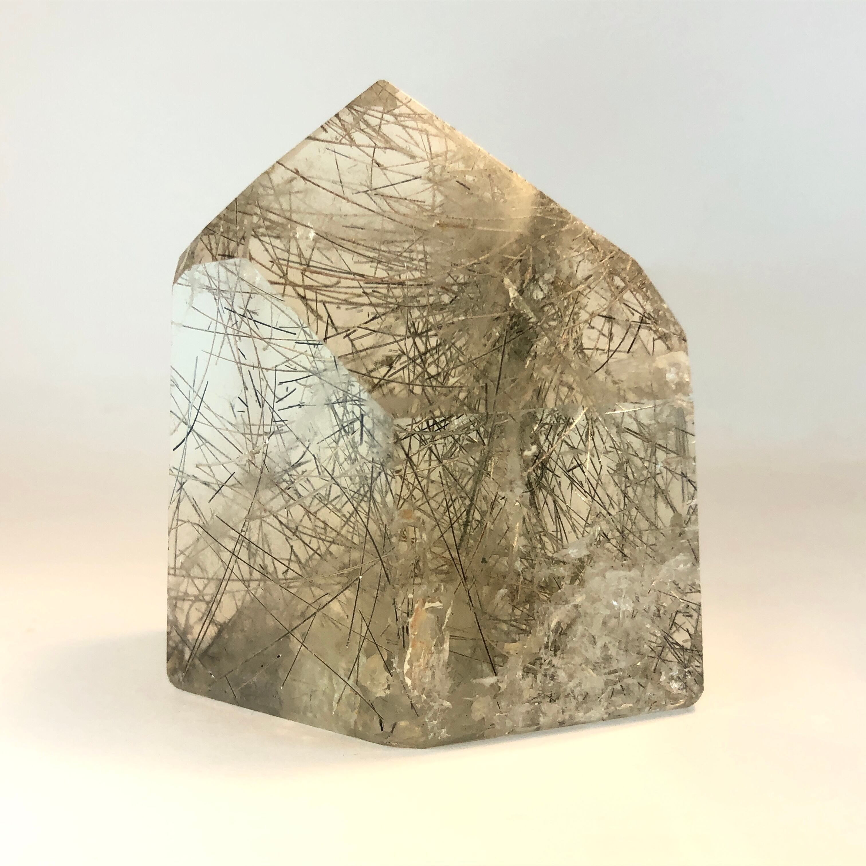 透明度の高いスモーキークォーツの中に、沢山のルチルが入ったポイントです。