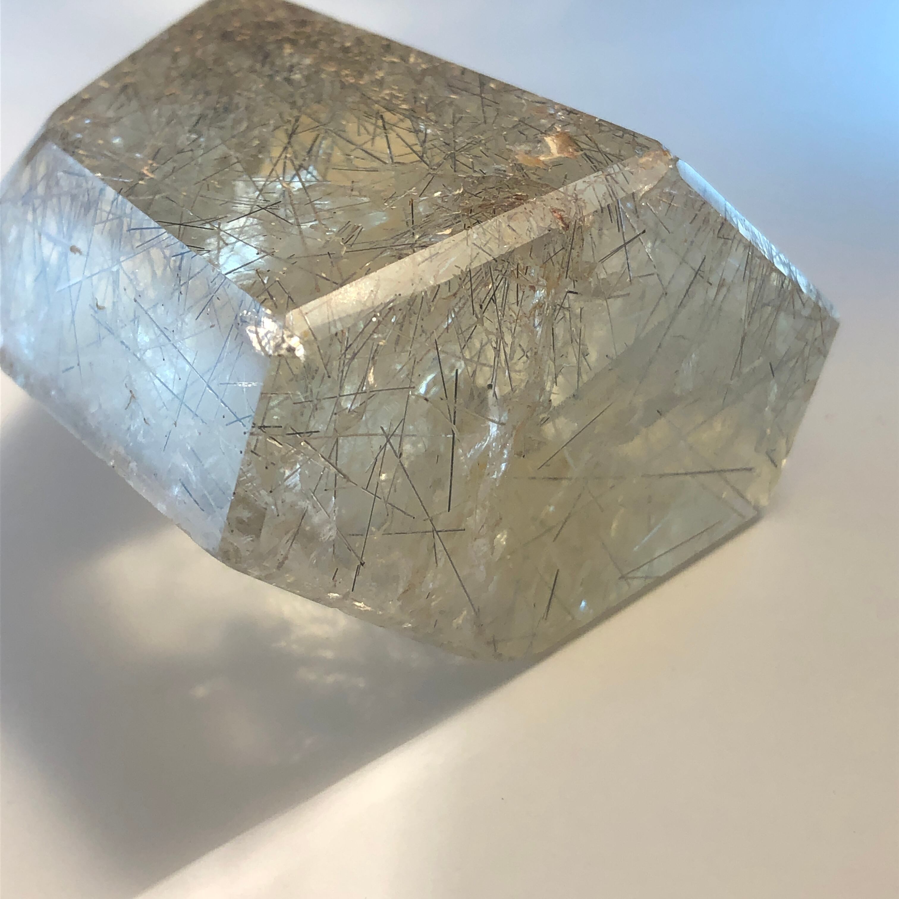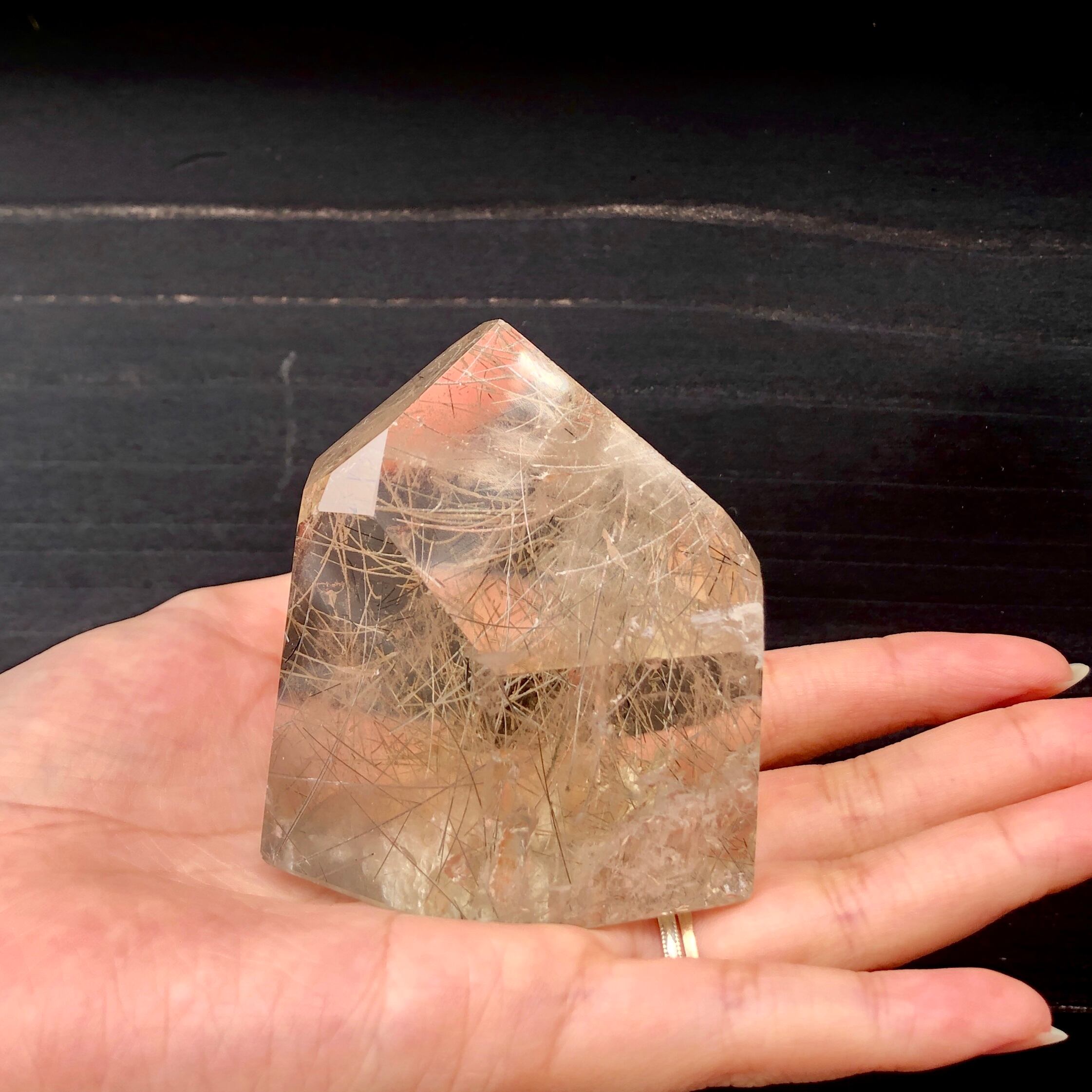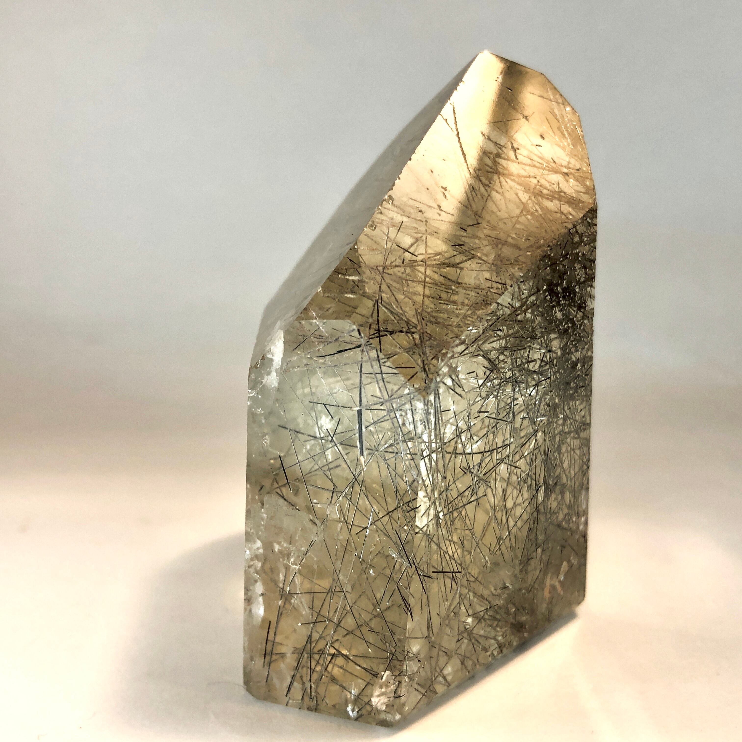 透明度の高いスモーキークォーツの中に、沢山のルチルが入ったポイントです。