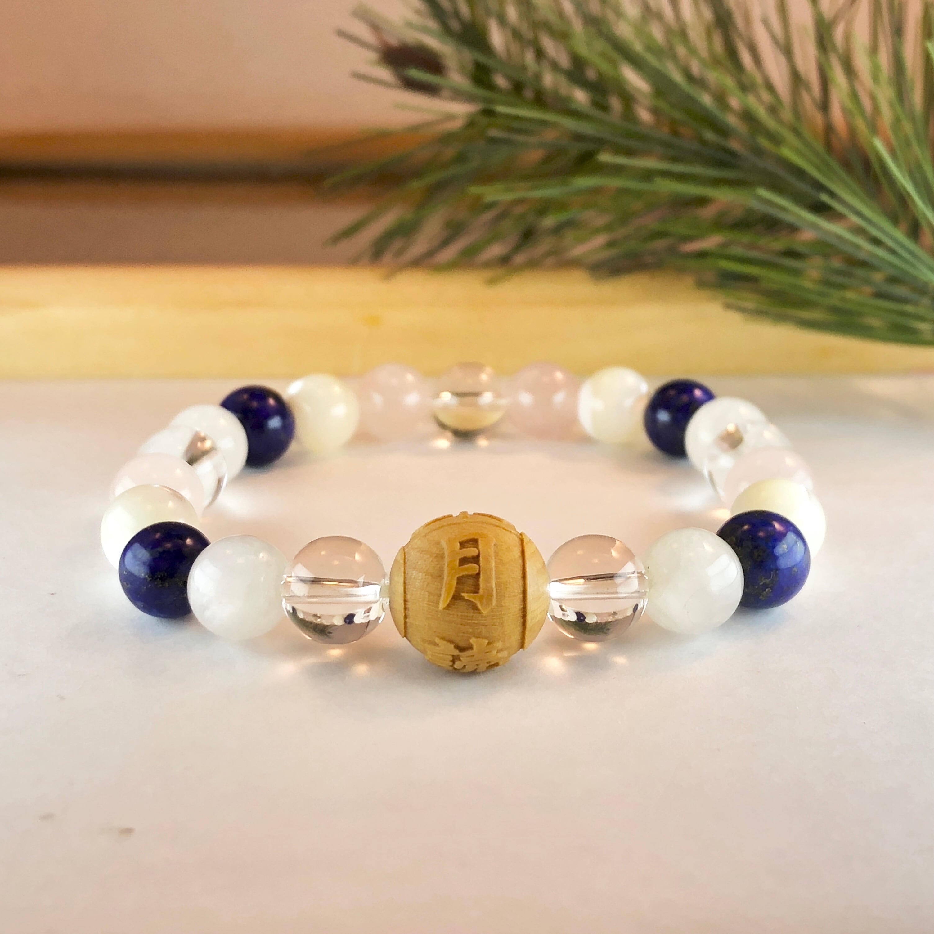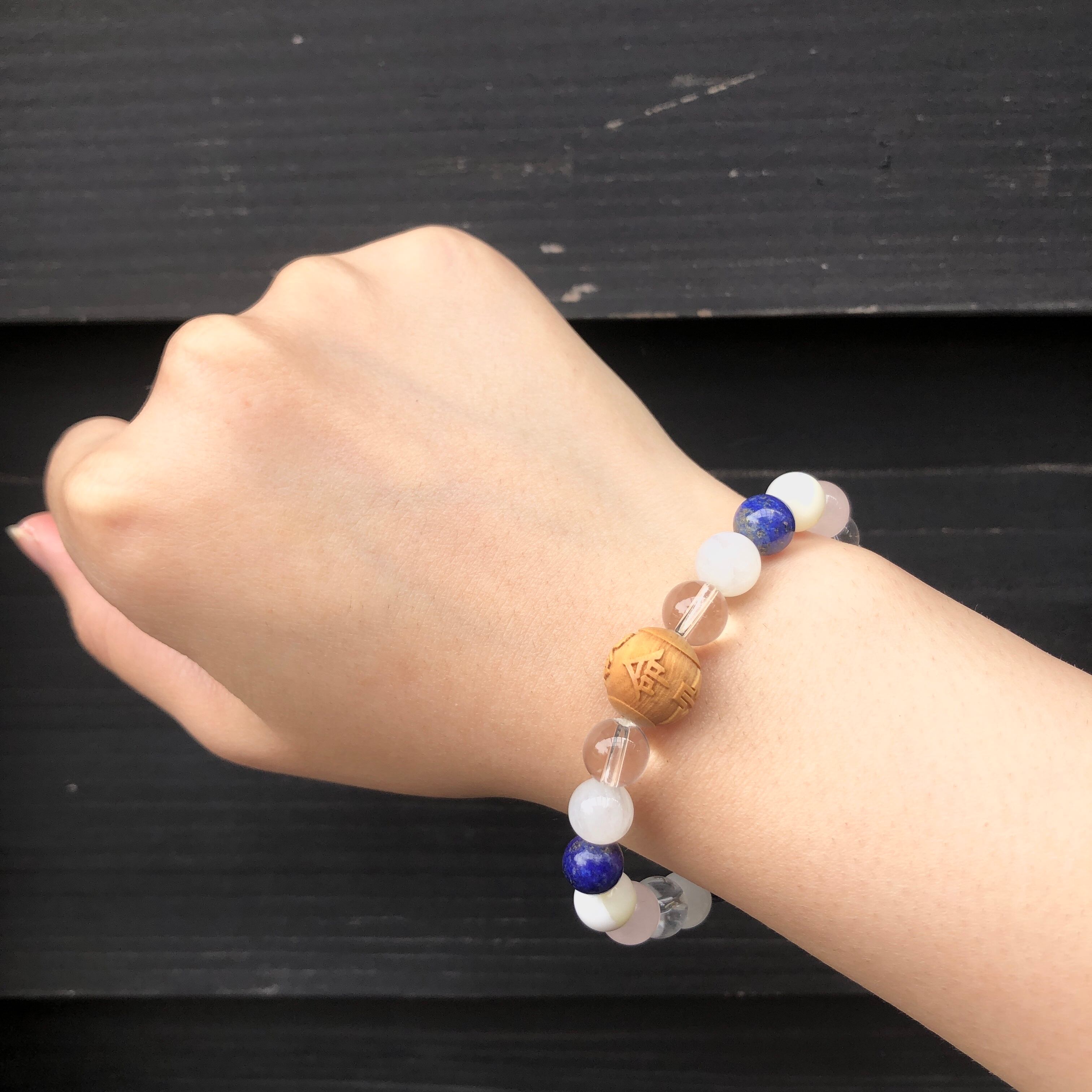 そんな月読命のパーツと様々な天然石を組み合わせることで、神様のご利益と天然石のパワーが合わさったブレスレットとなっています!
