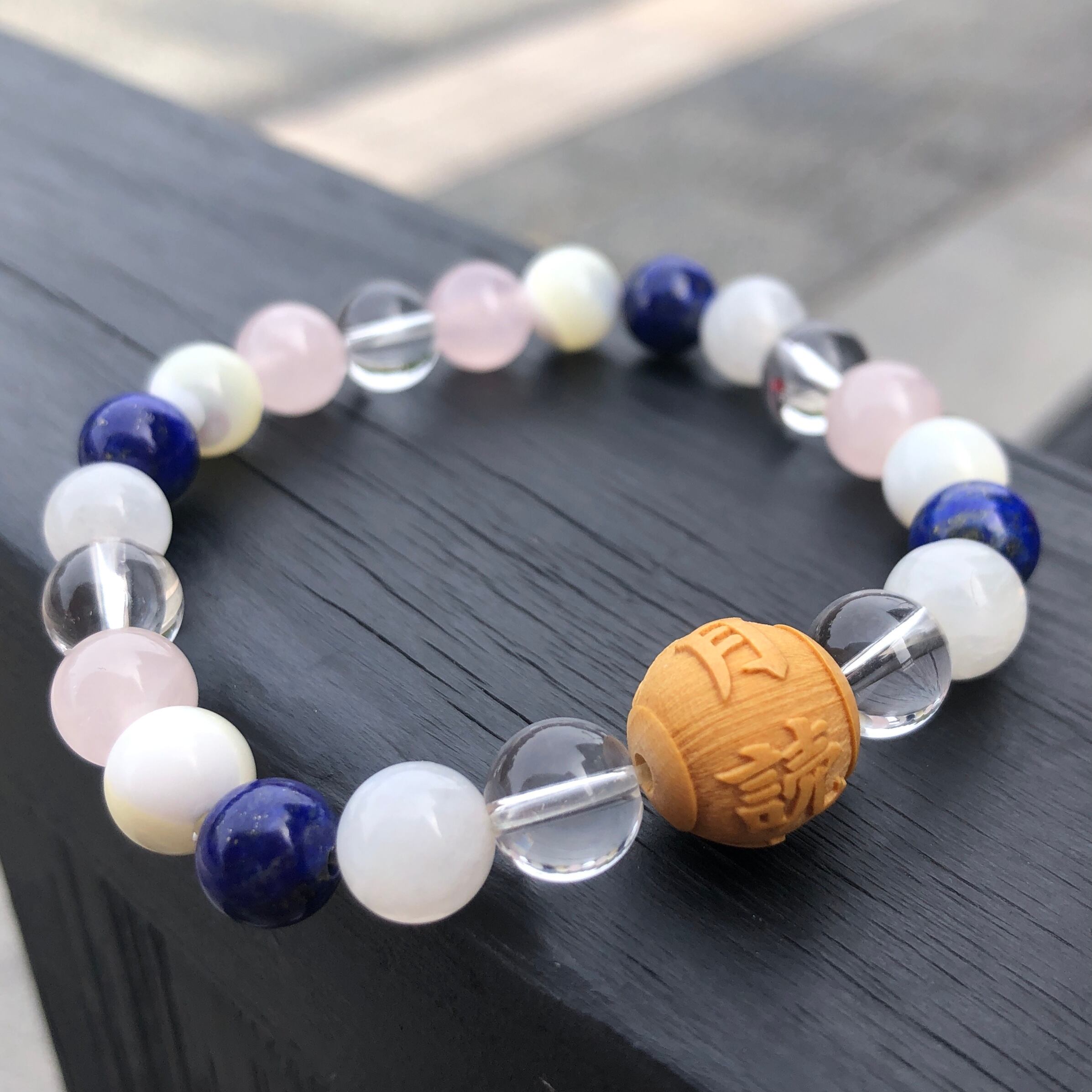 ■使用している石 ムーンストーン、水晶、ラピスラズリ、ローズクォーツ、マザーオブパール