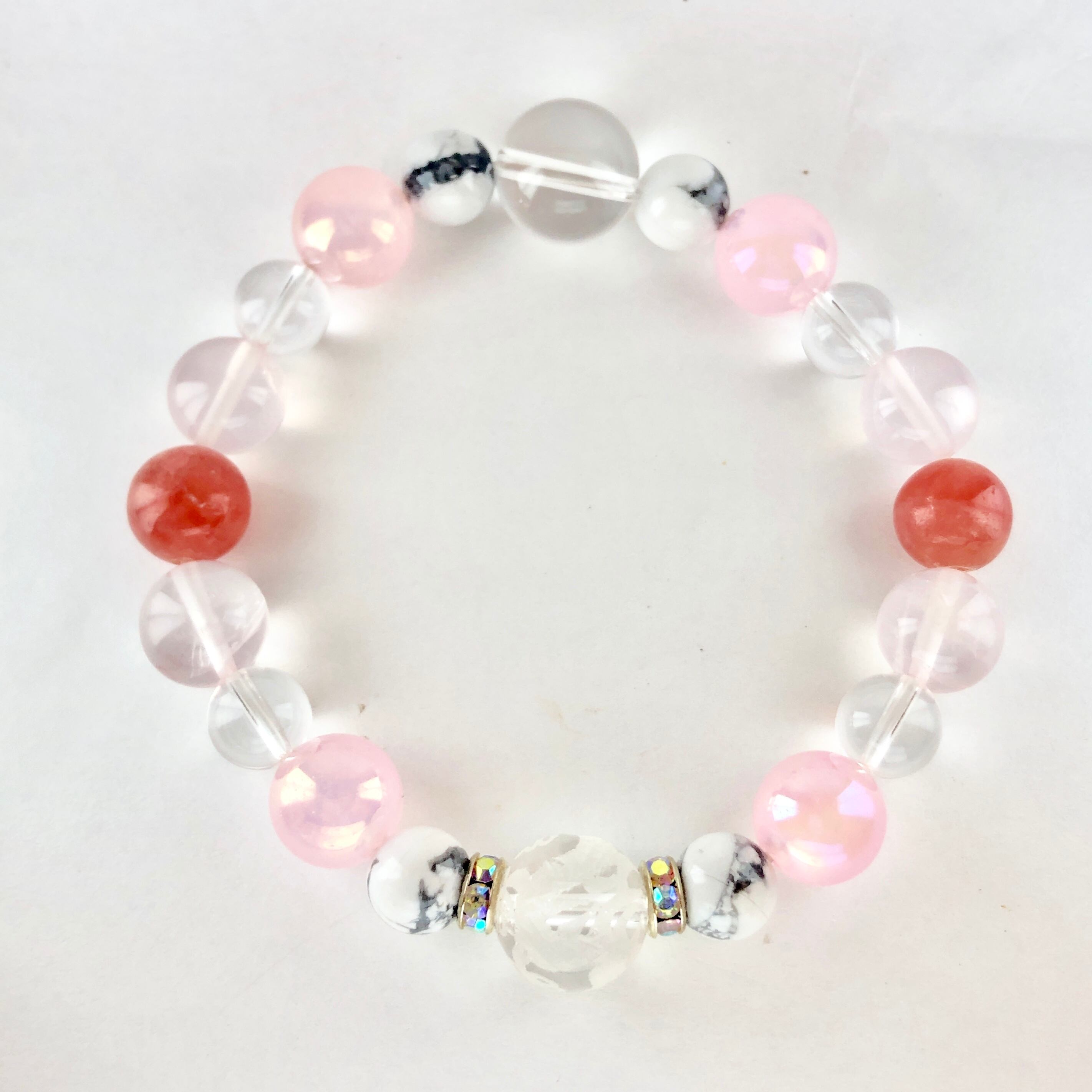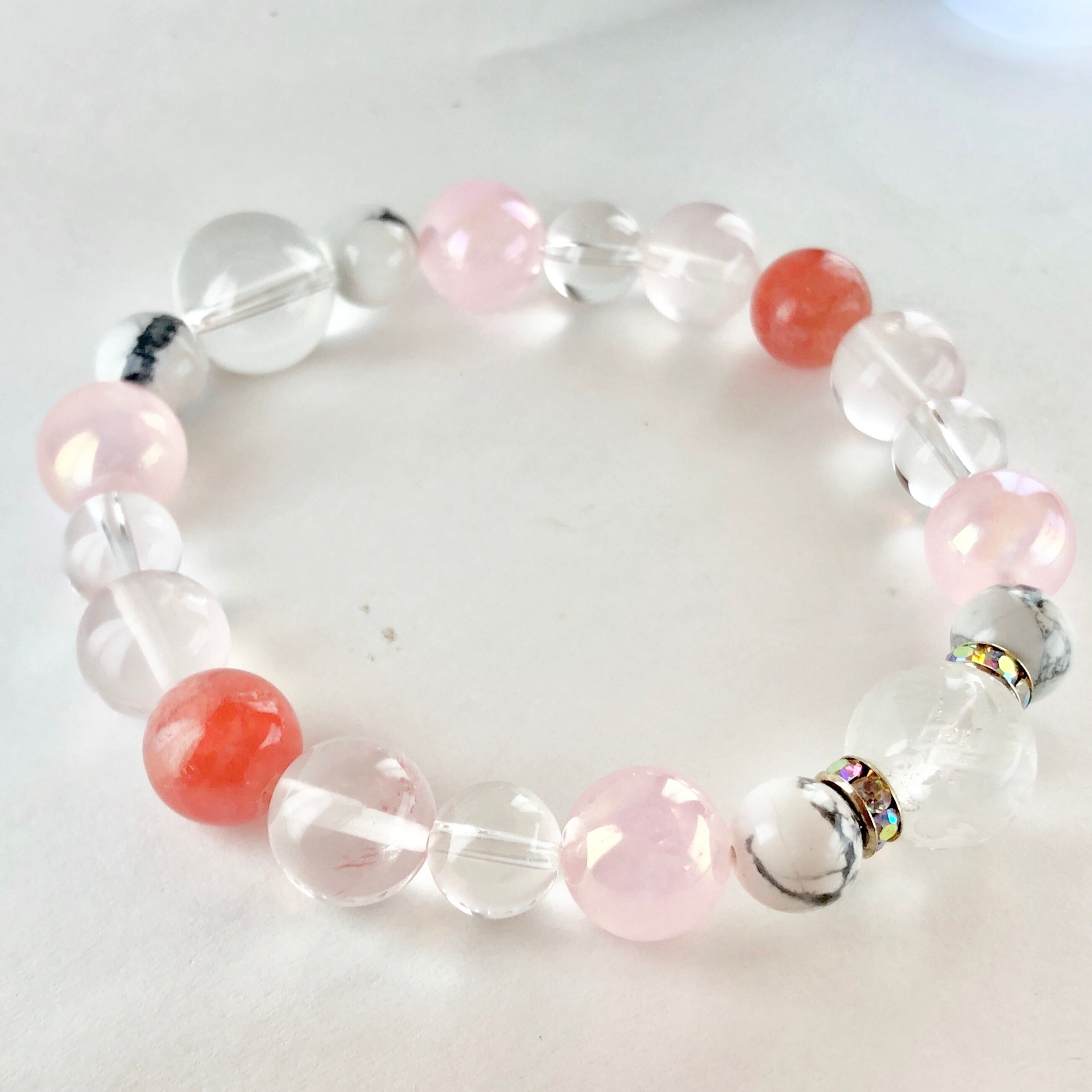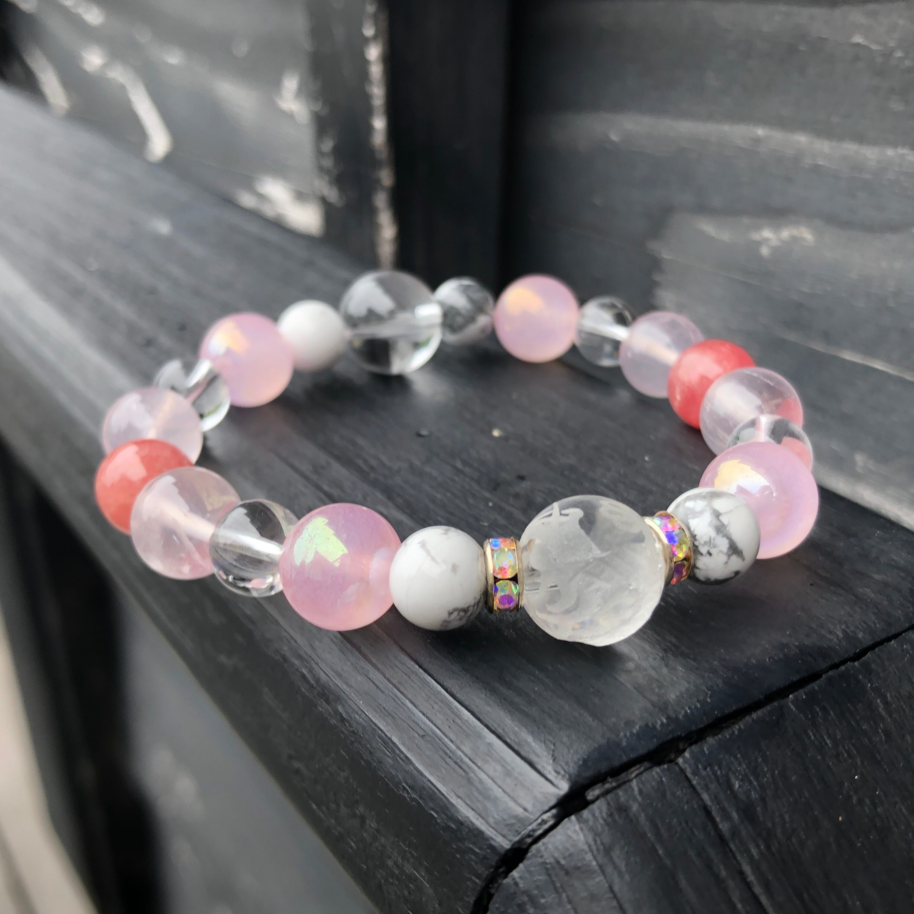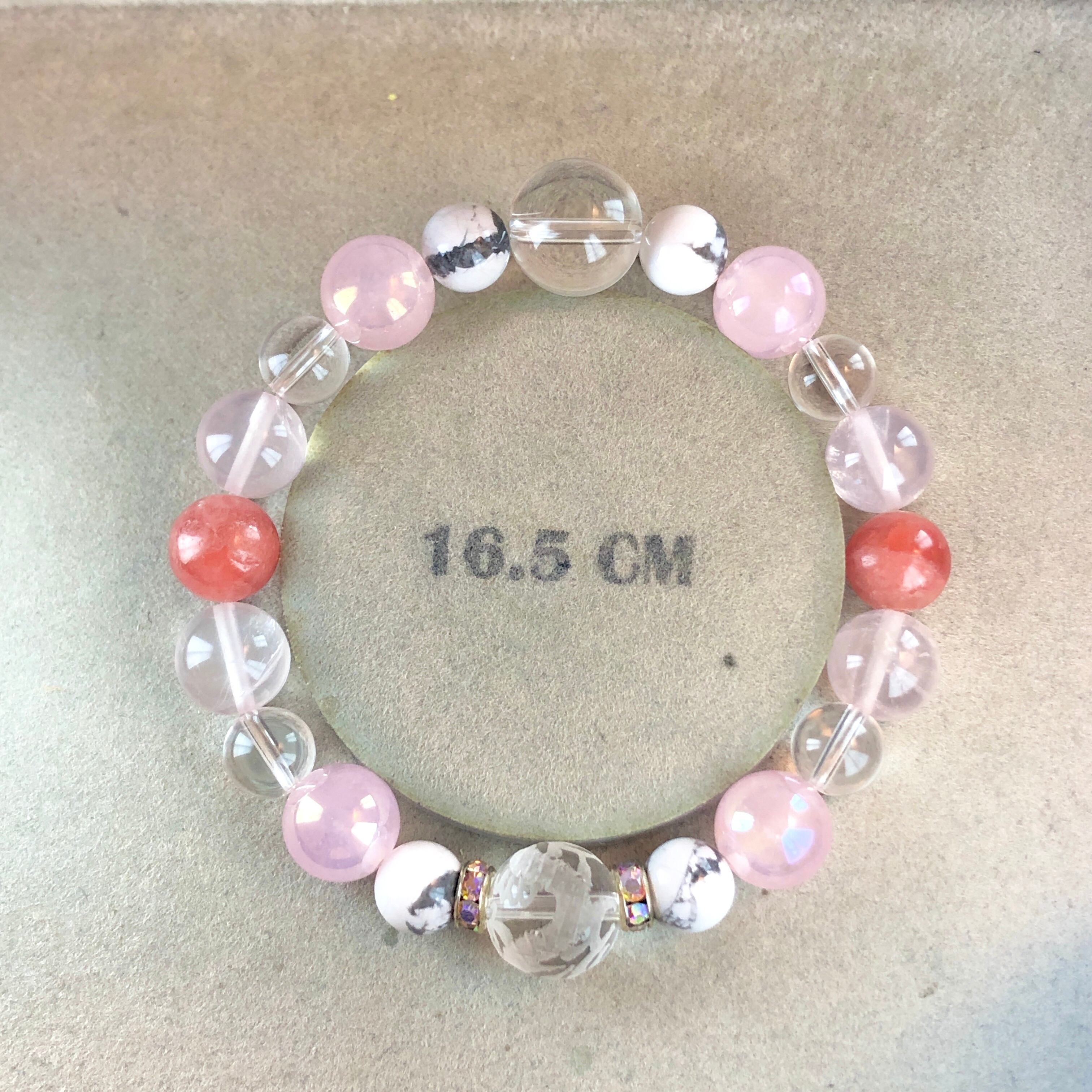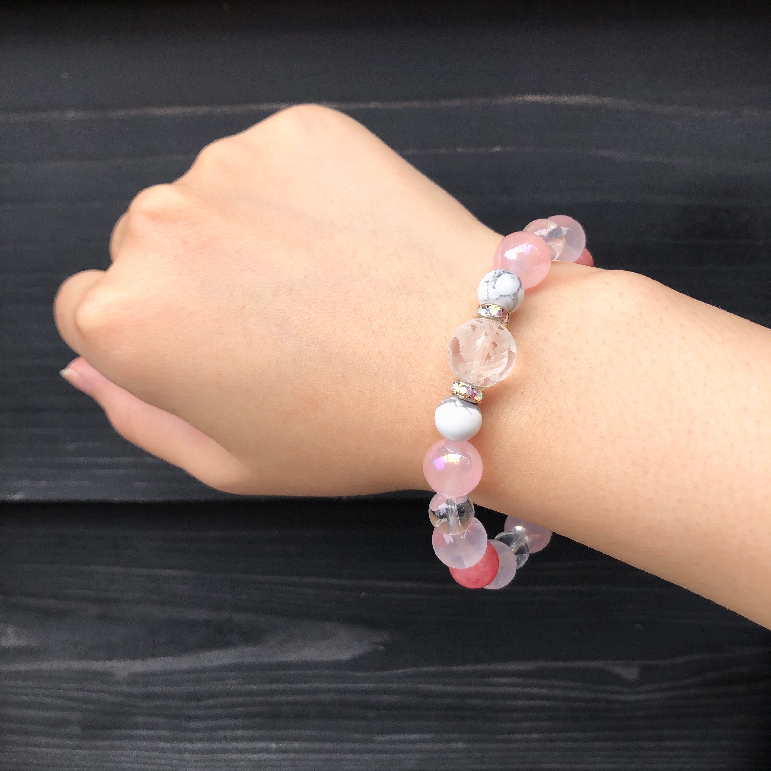 ■使用している石 水晶(龍彫り)、ローズクォーツ、ローズオーラ、ロードクロサイト、ホワイトハウライト、ロンデル(金具パーツ)