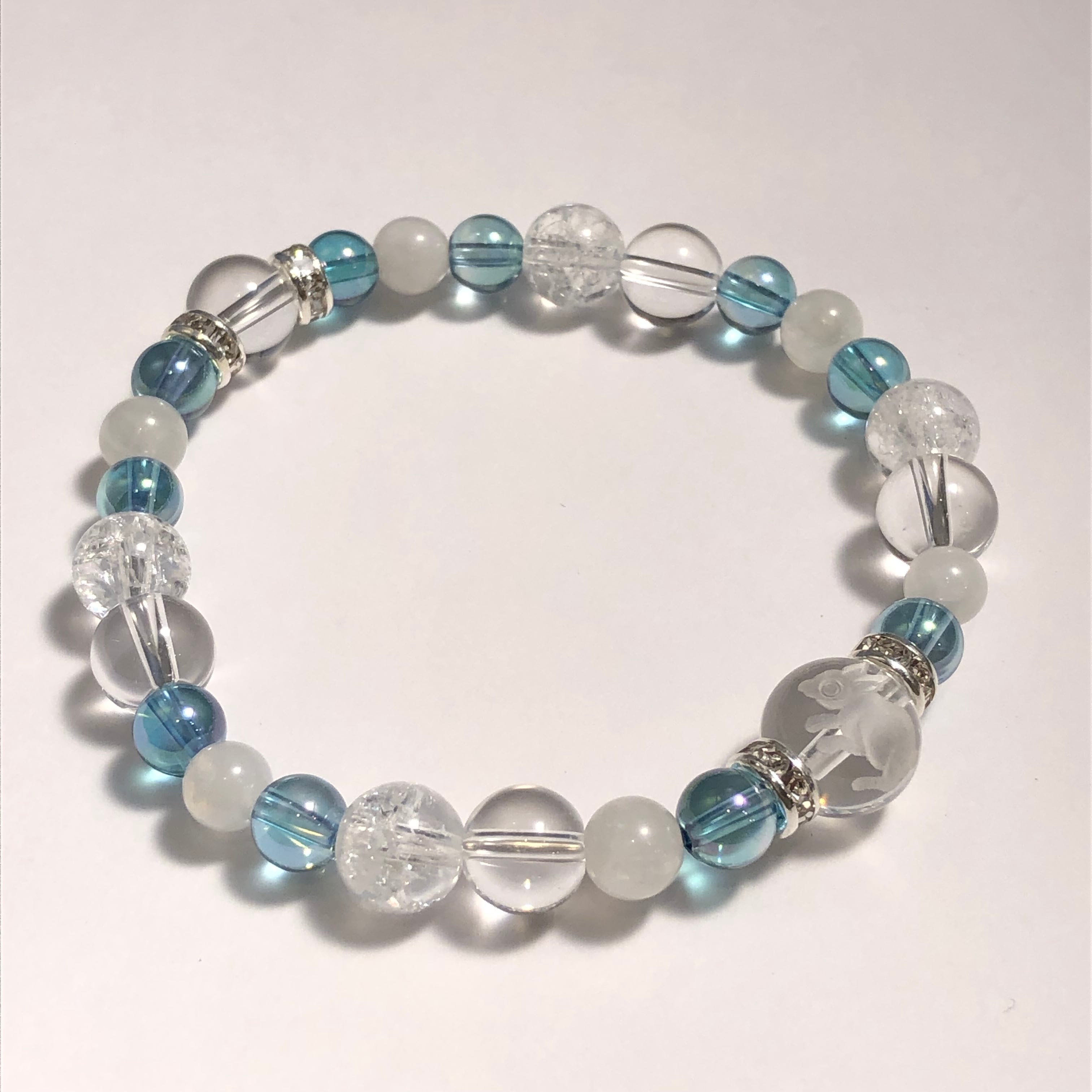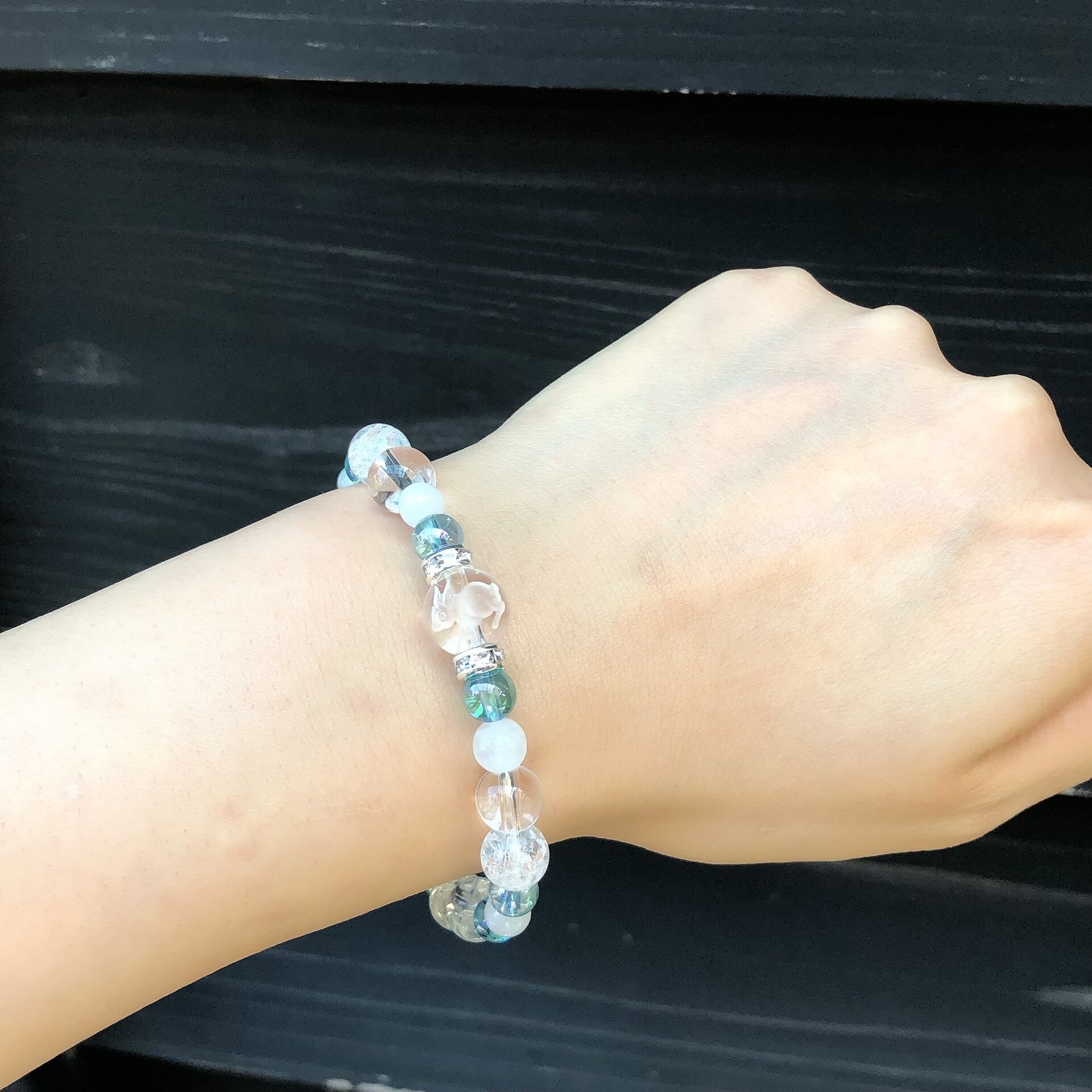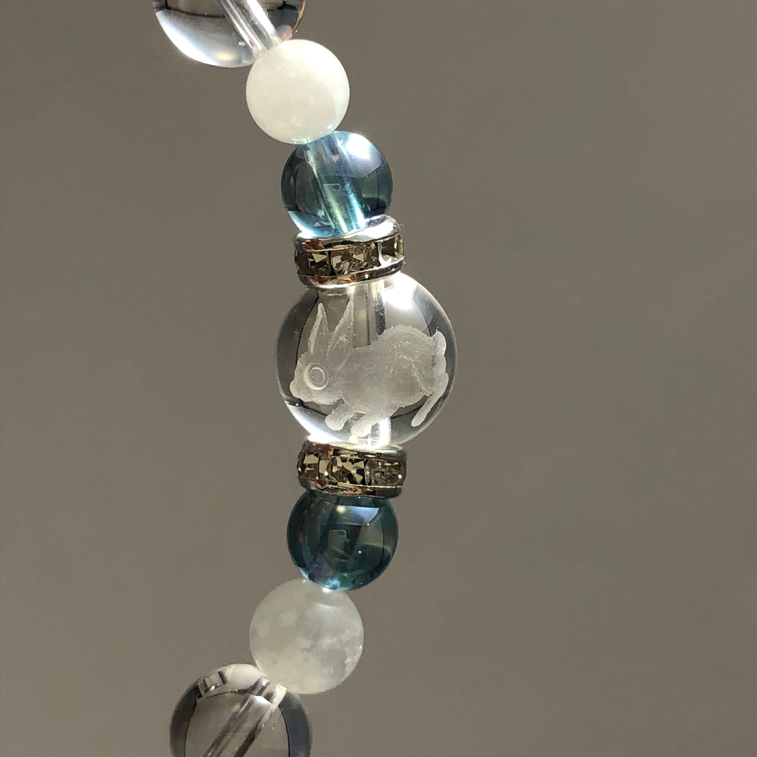 そんなうさぎの彫りが入った水晶をはじめ、浄化や人間関係を円滑にする意味合いでまとめた爽やかなブレスレットに仕上がっております♡