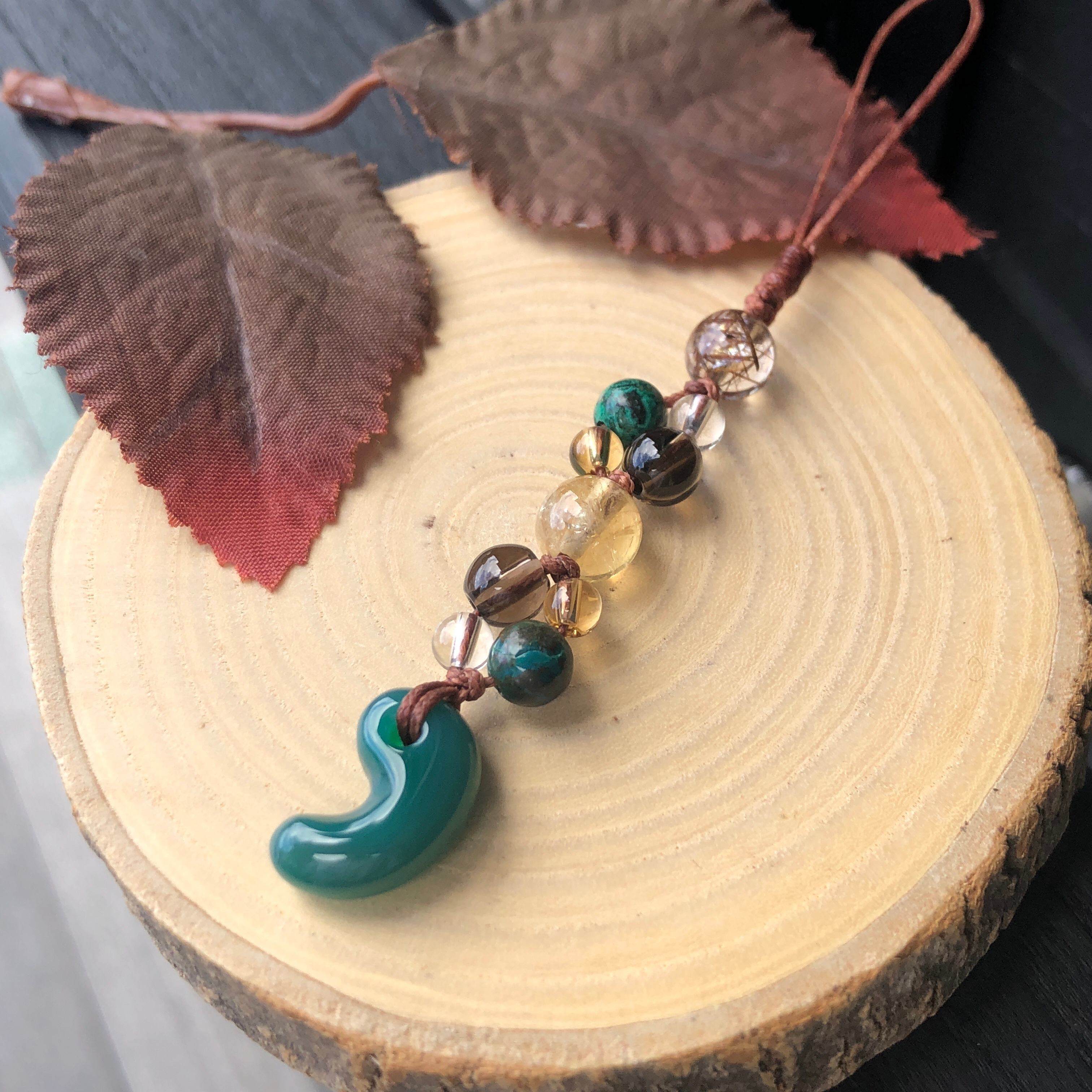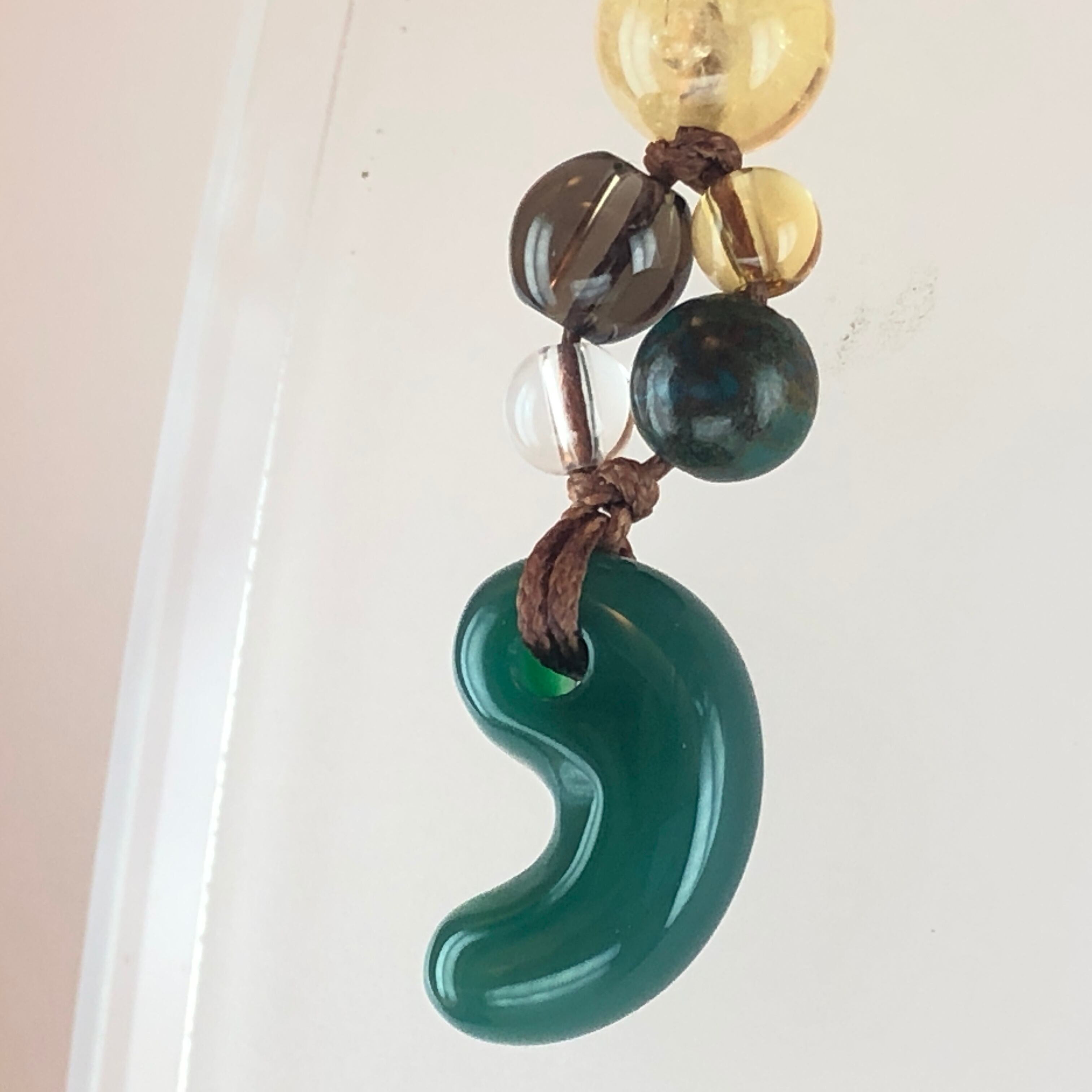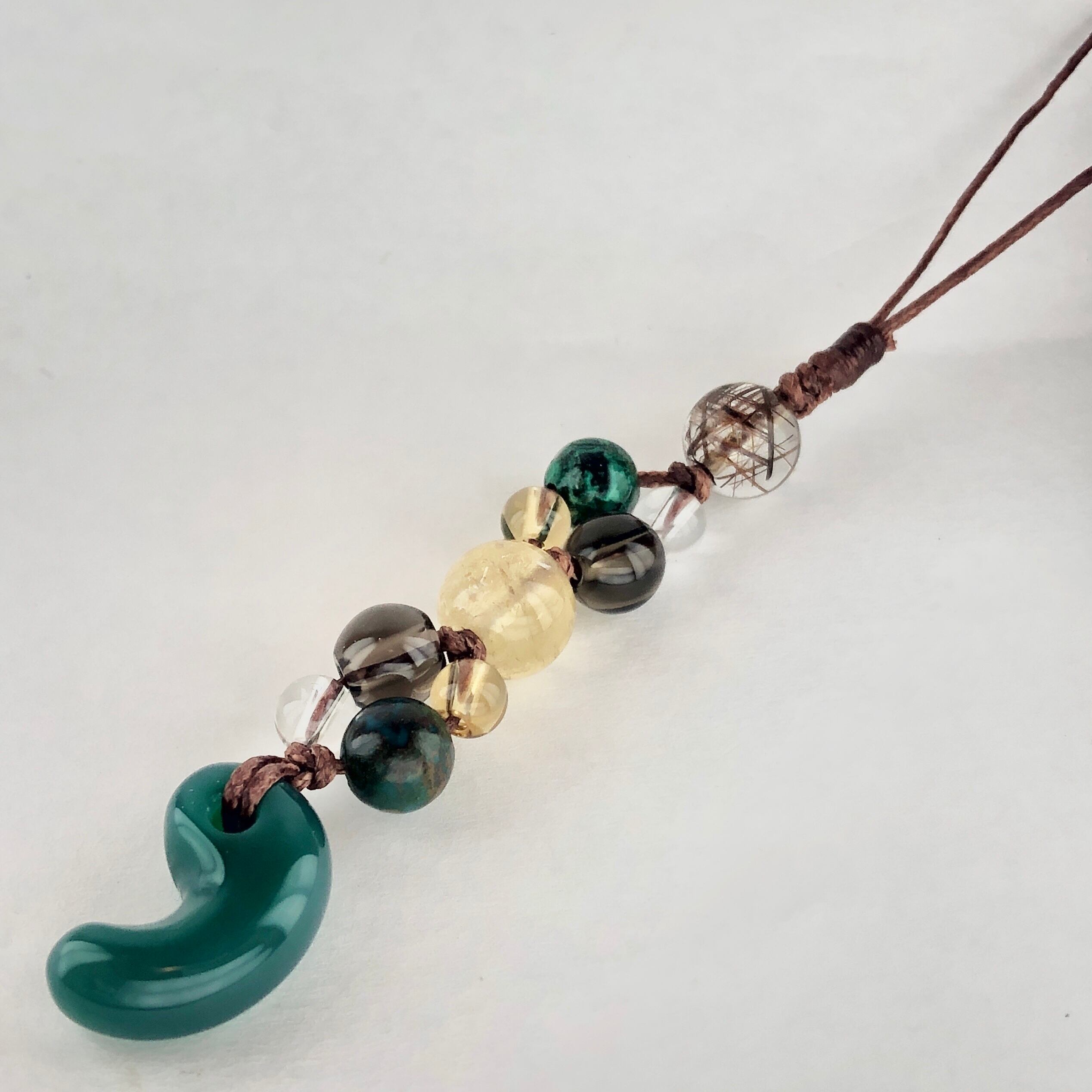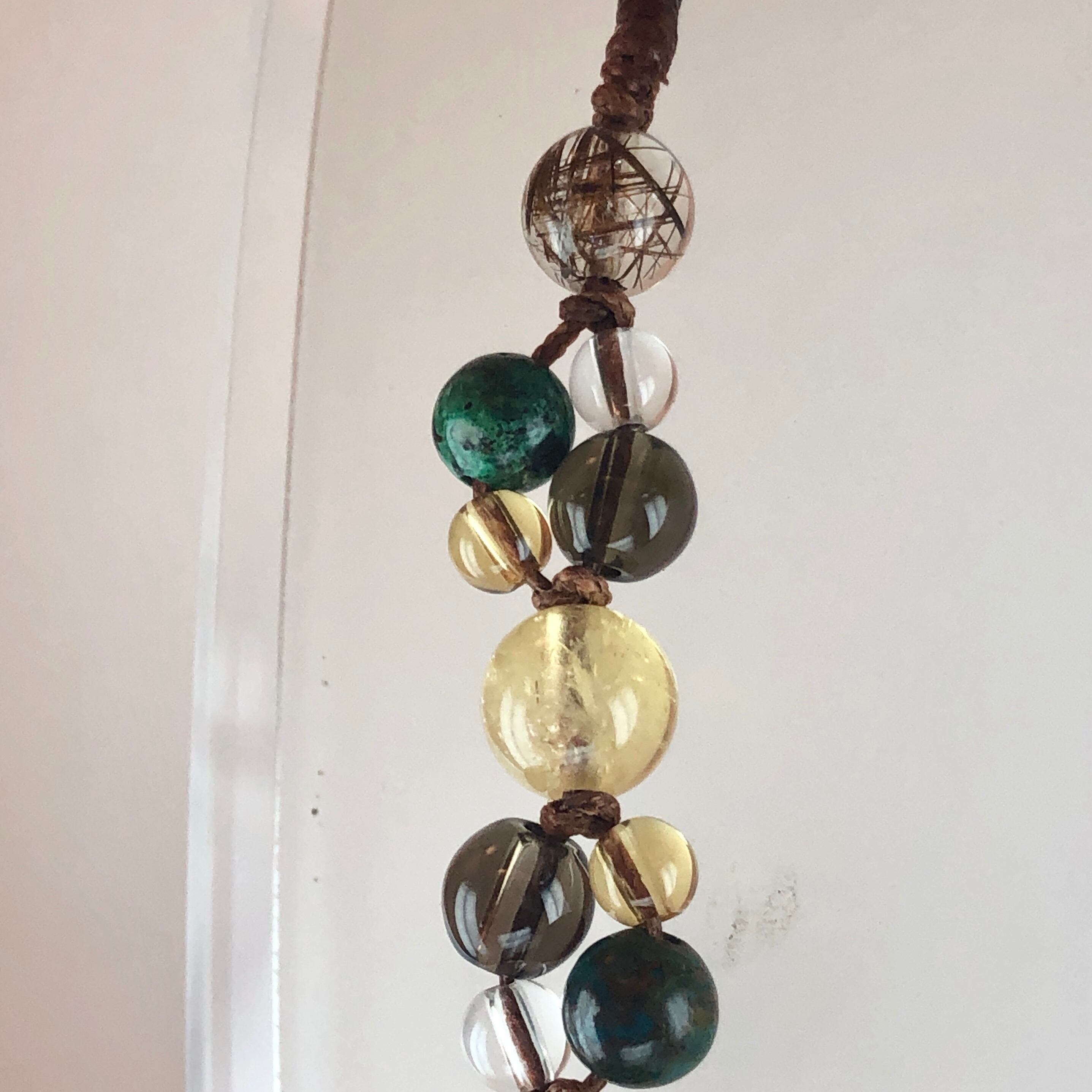 ■使用している石 勾玉(青めのう)、レッドルチル、スモーキークォーツ、クリソコーラ、シトリン、水晶