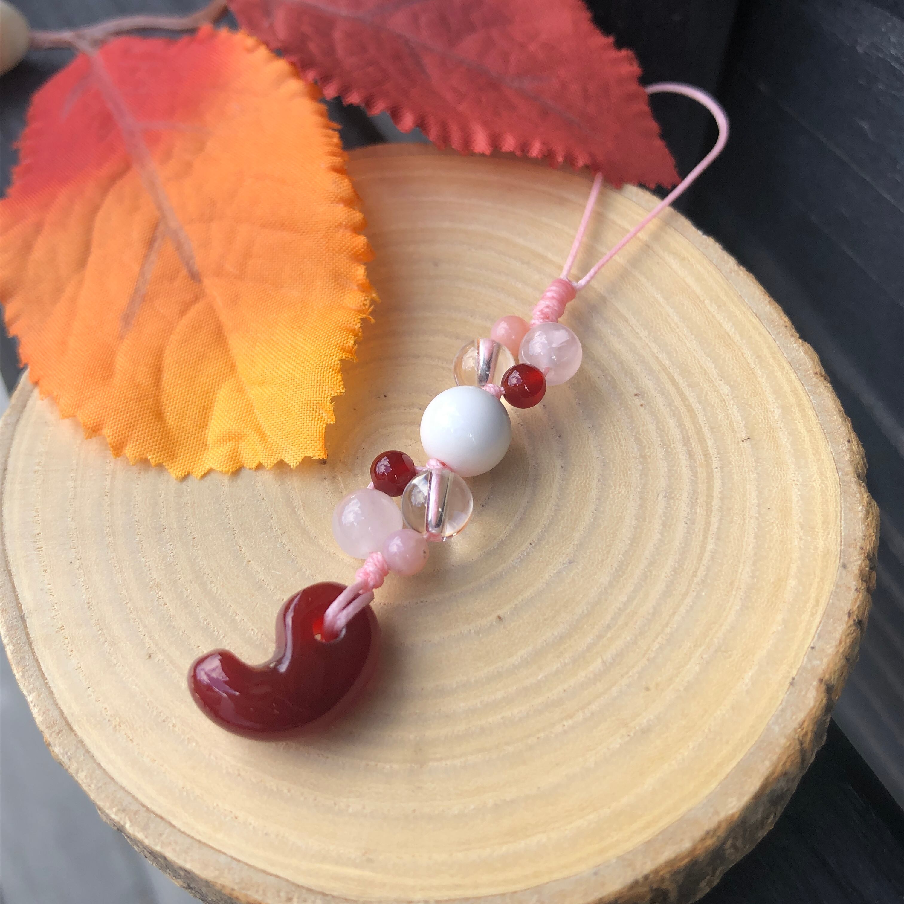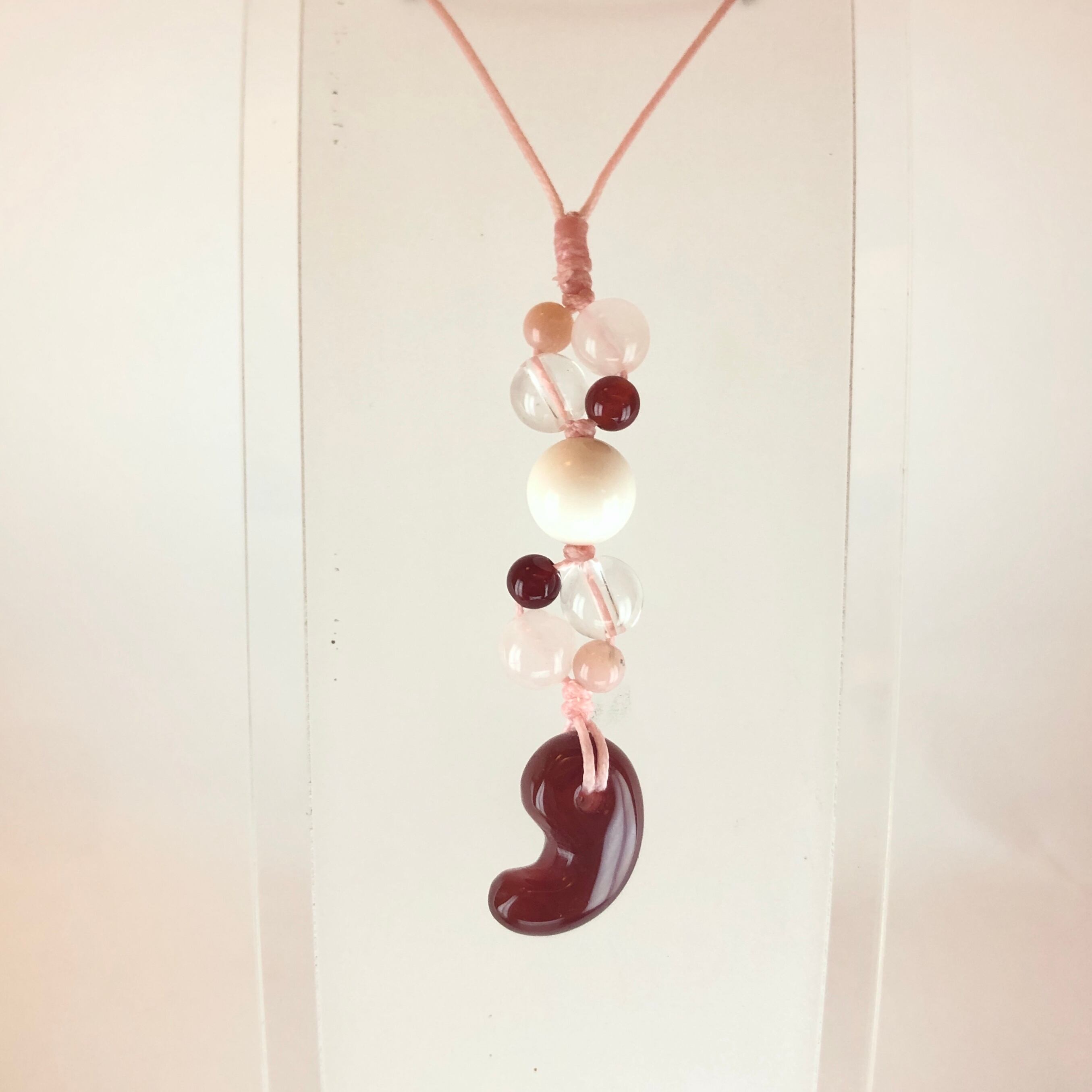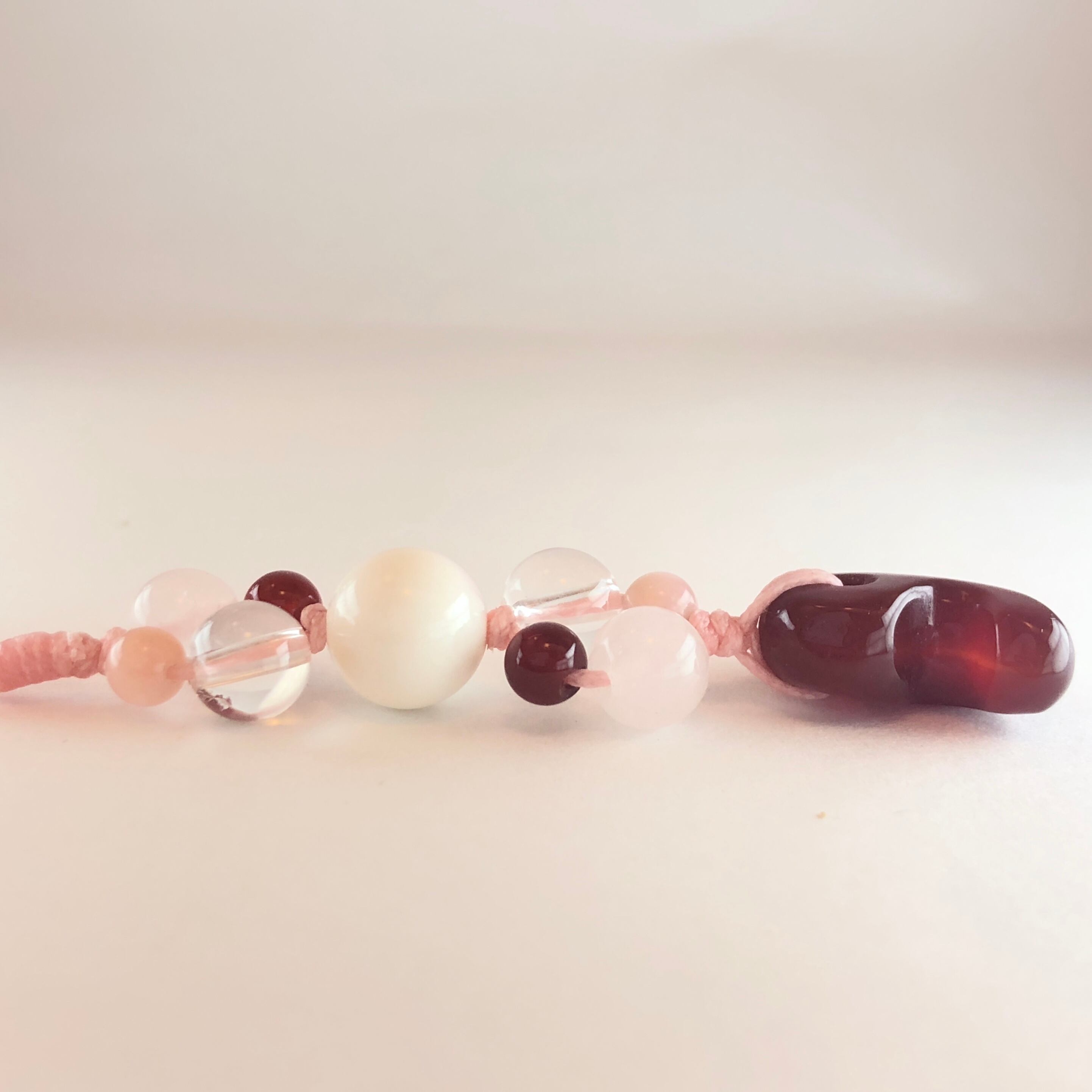 ■使用している石 勾玉(赤めのう)、ピンクオパール、ローズクォーツ、赤めのう、水晶