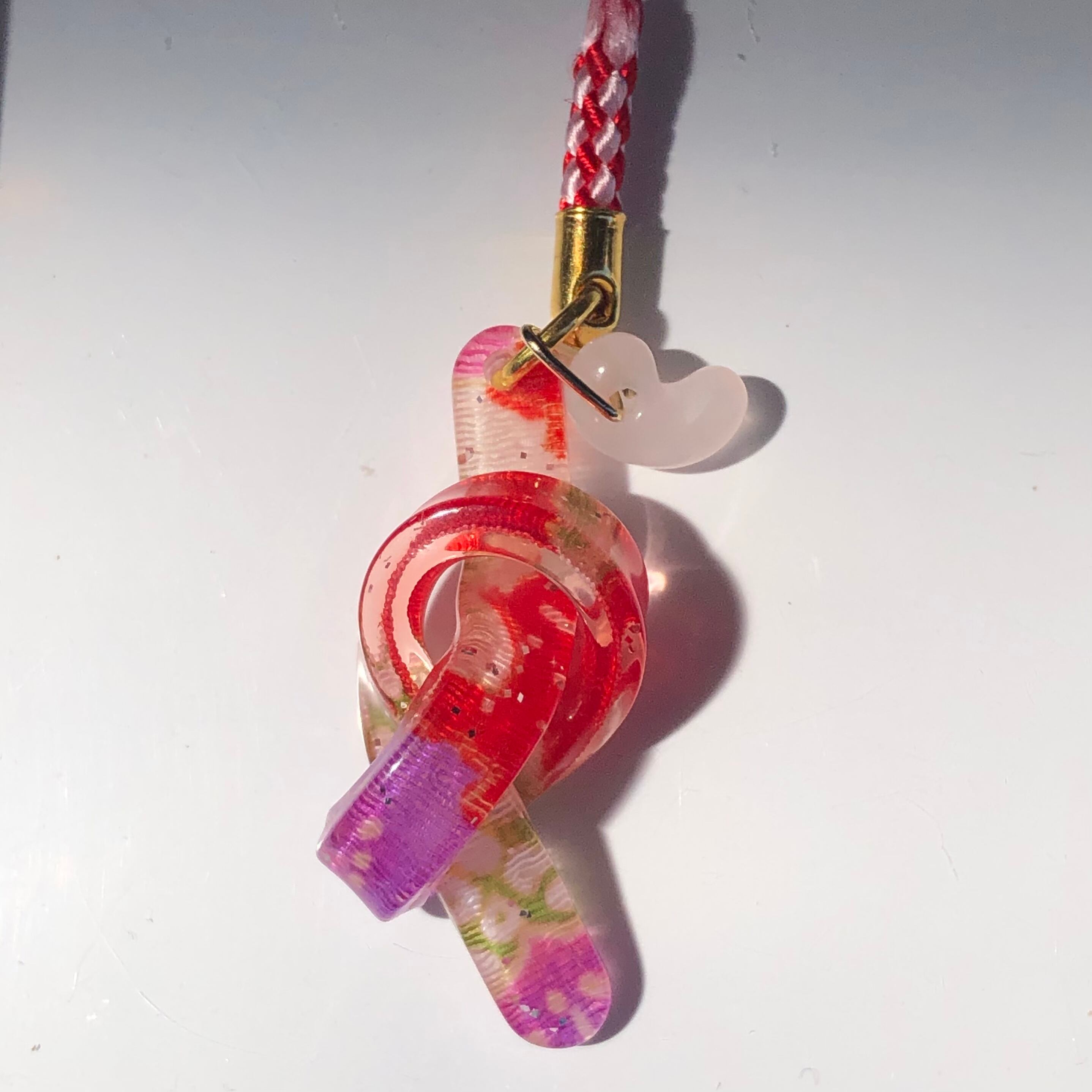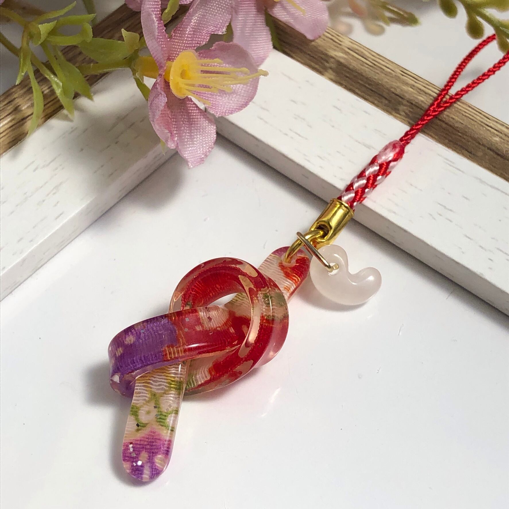 【h119d】縁結びちりめんストラップ【ローズクォーツ勾玉付き】