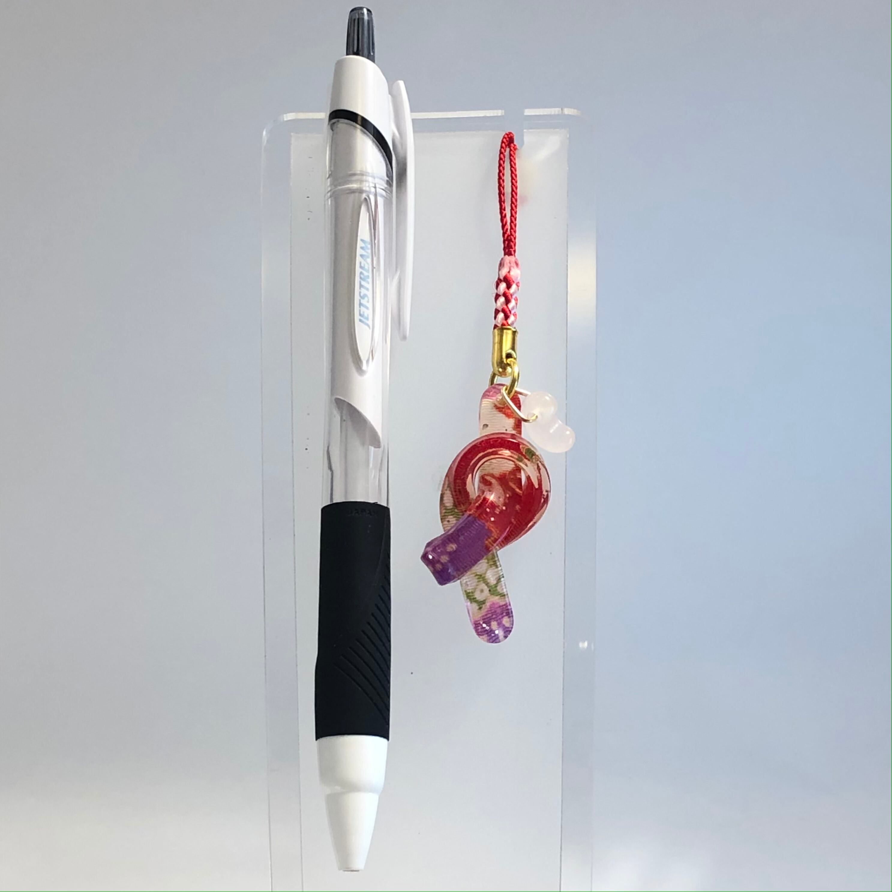 こちらの勾玉には「ローズクォーツ」を使用しており、恋愛成就や家庭円満に良いといわれています。