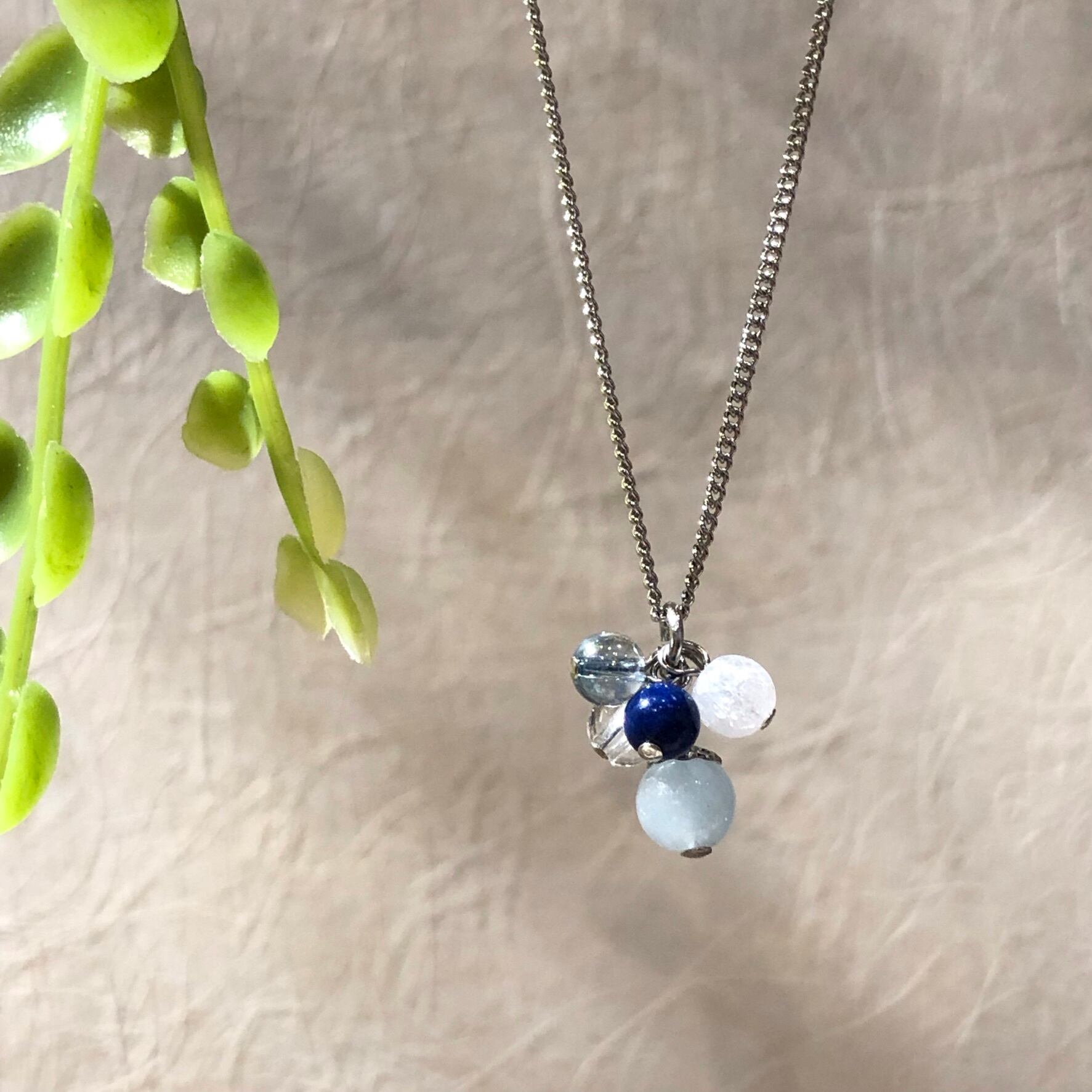 3月の誕生石「アクアマリン」と小さめの天然石が沢山付いた可愛らしいネックレスに仕上がっております♡