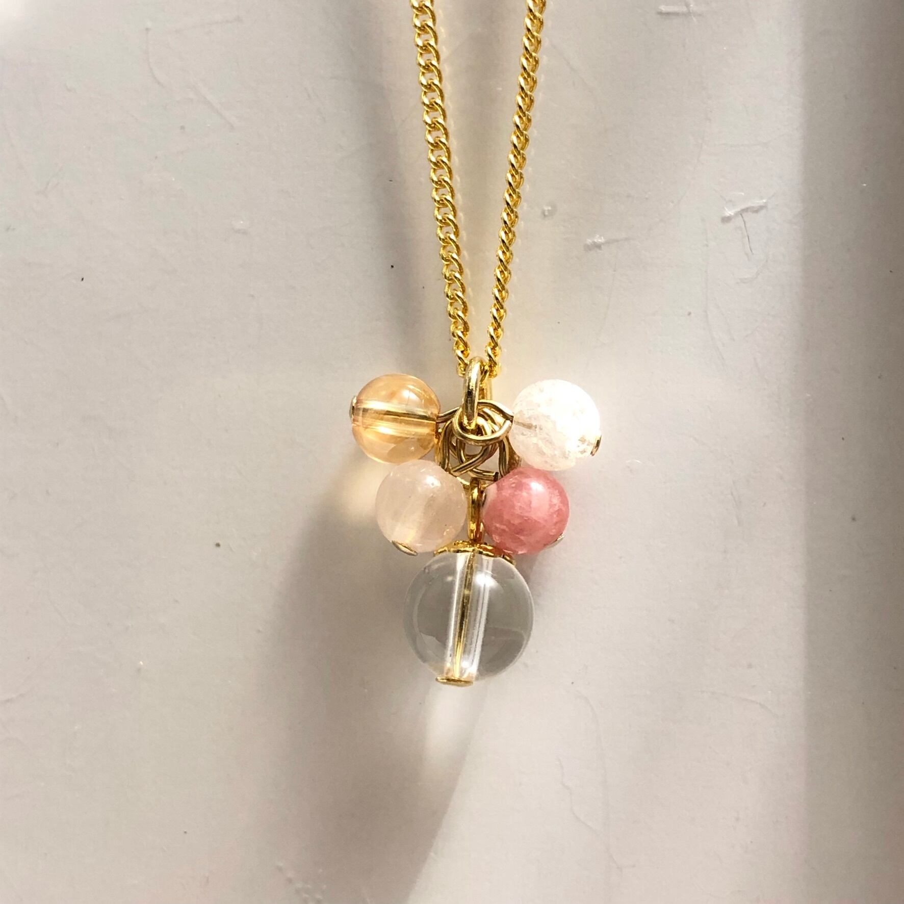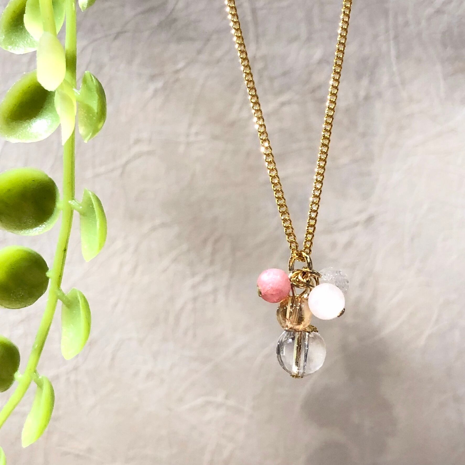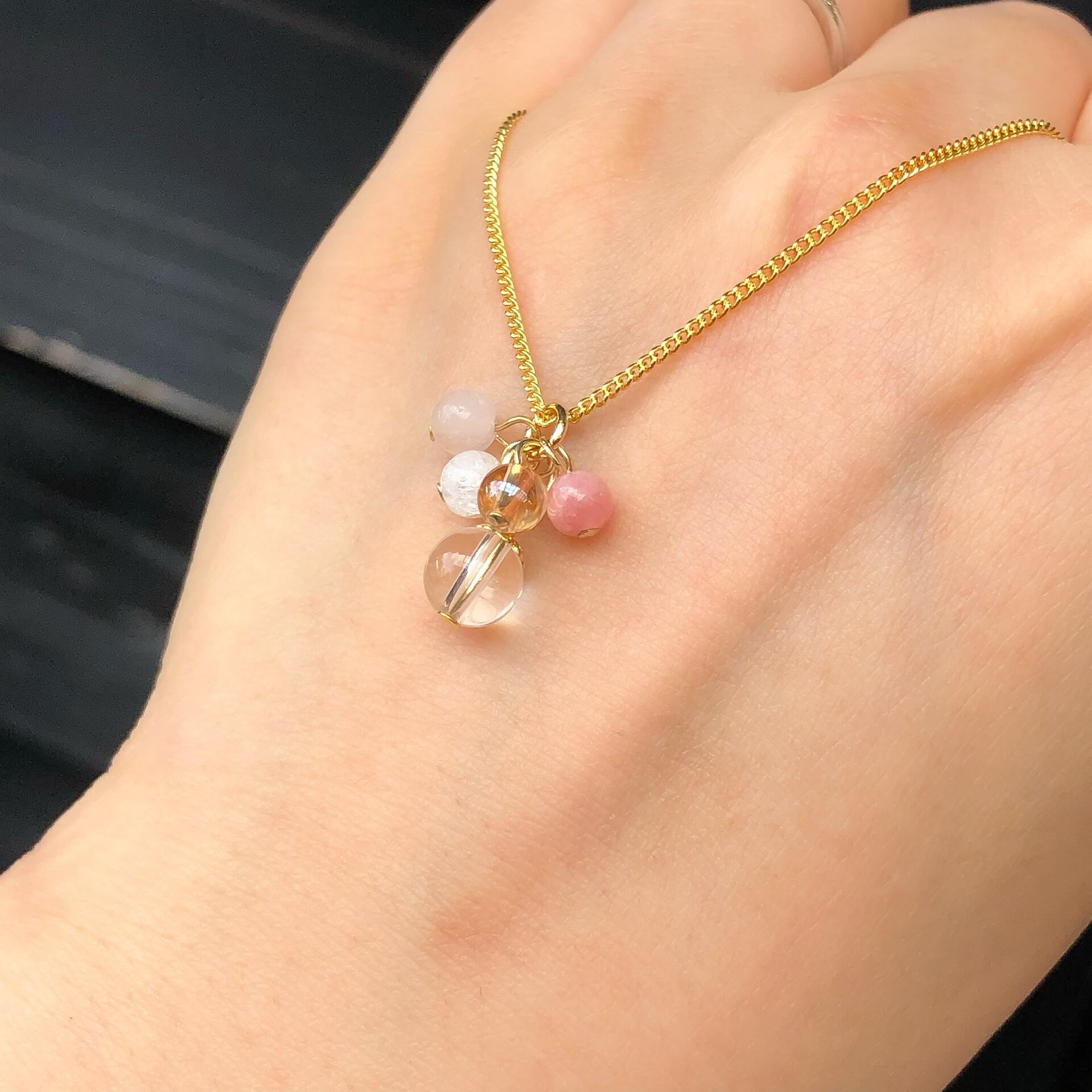 4月の誕生石「水晶」と小さめの天然石が沢山付いた可愛らしいネックレスに仕上がっております♡