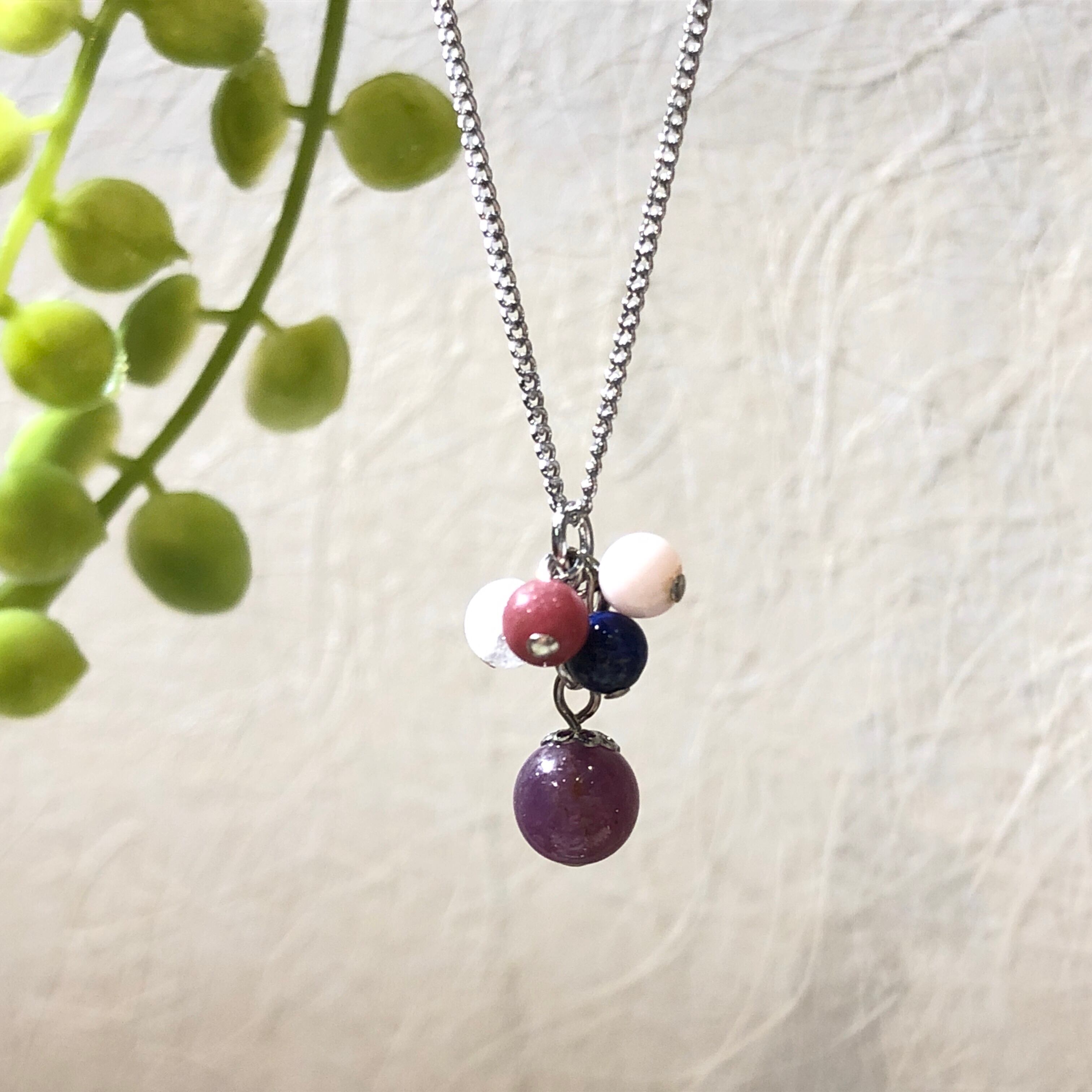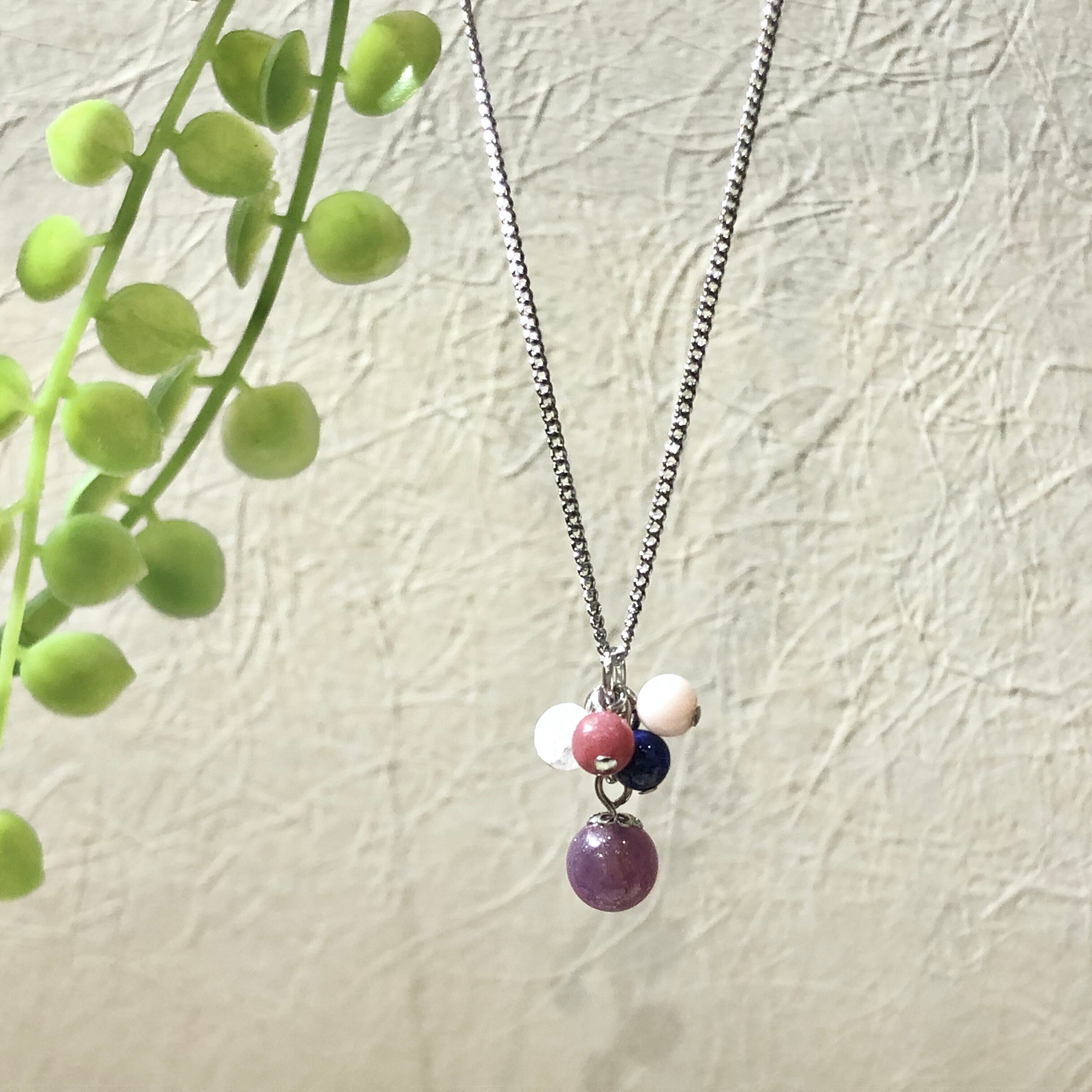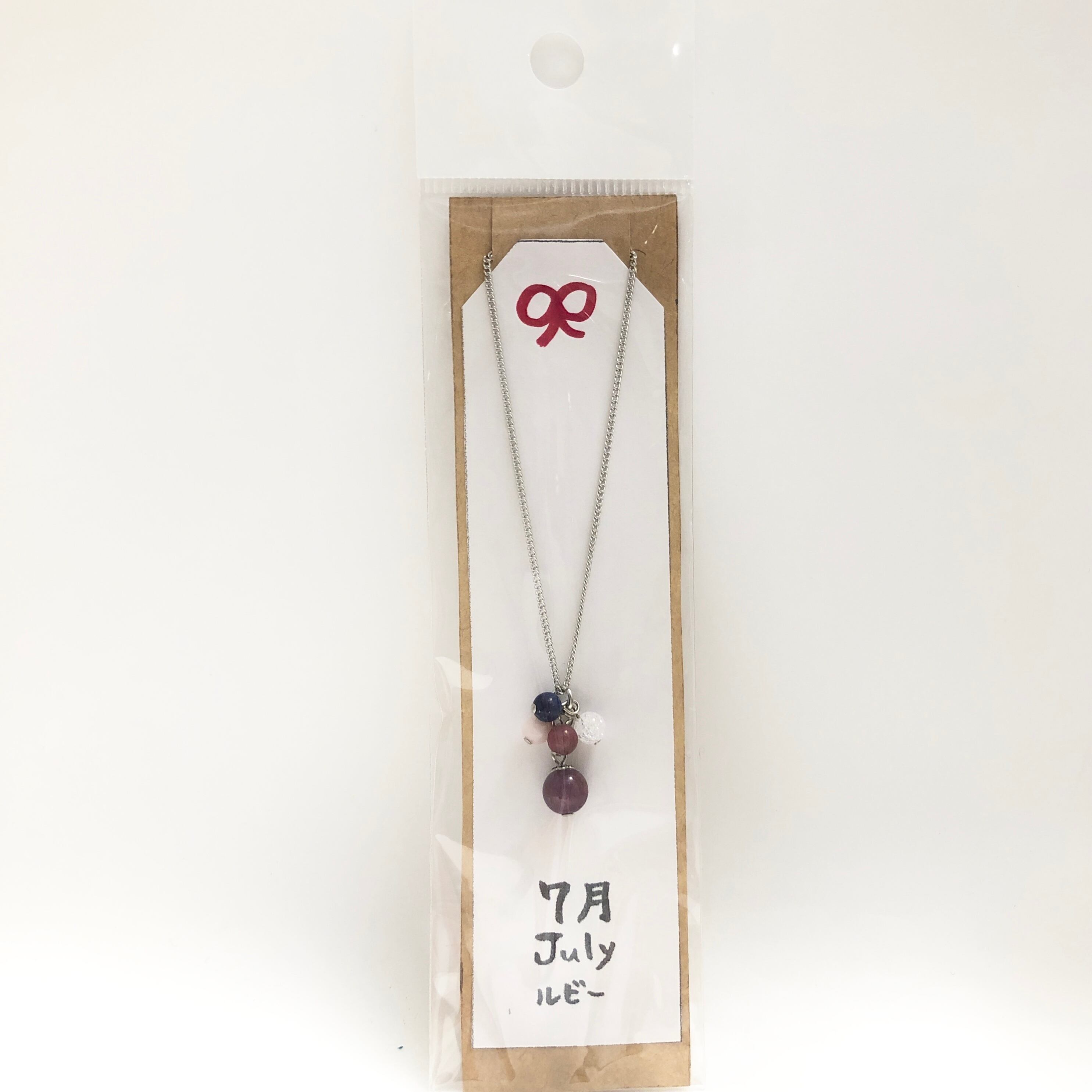 7月の誕生石「ルビー」と小さめの天然石が沢山付いた可愛らしいネックレスに仕上がっております♡