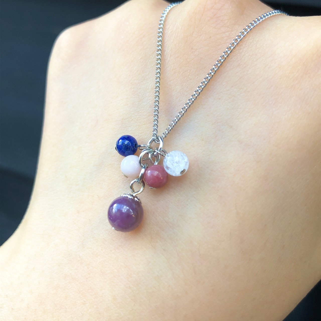 ルビー(7月誕生石)、クラック水晶、ピンクオパール、ラピスラズリ、ロードナイト