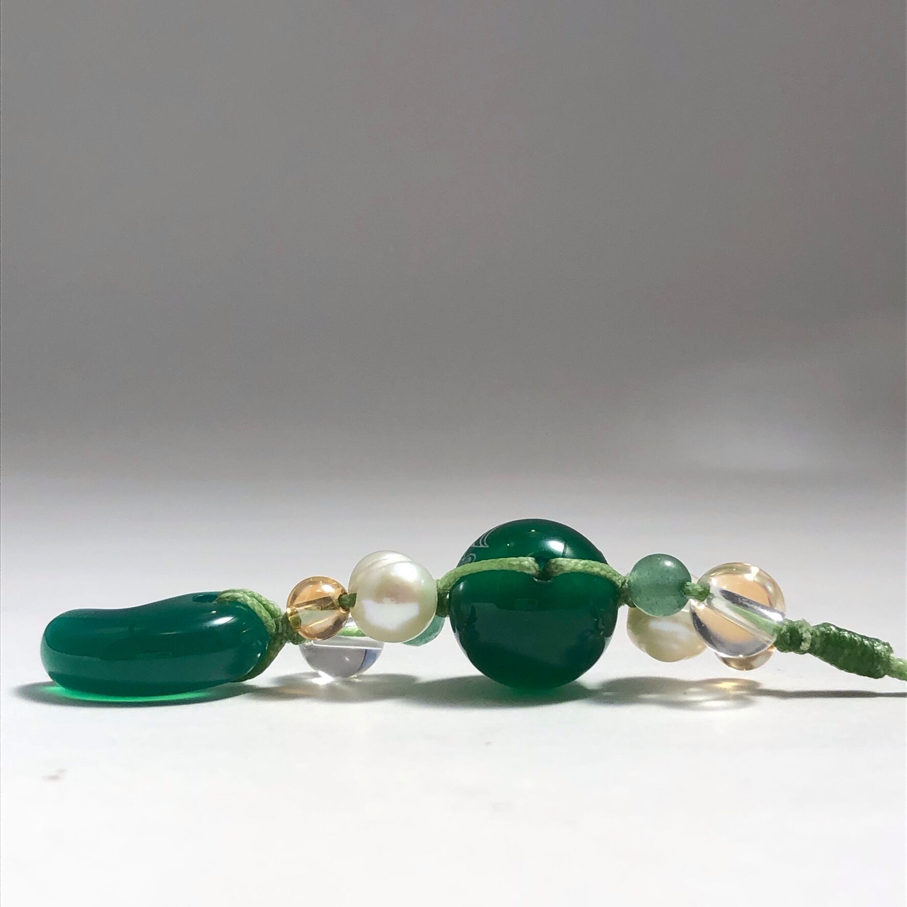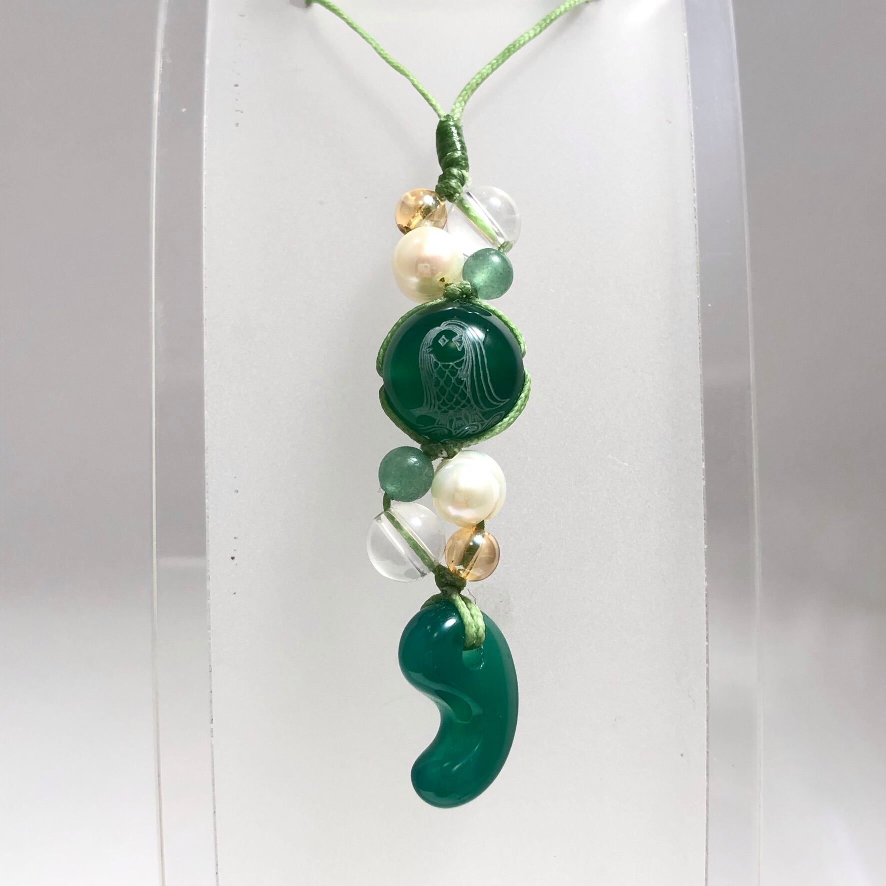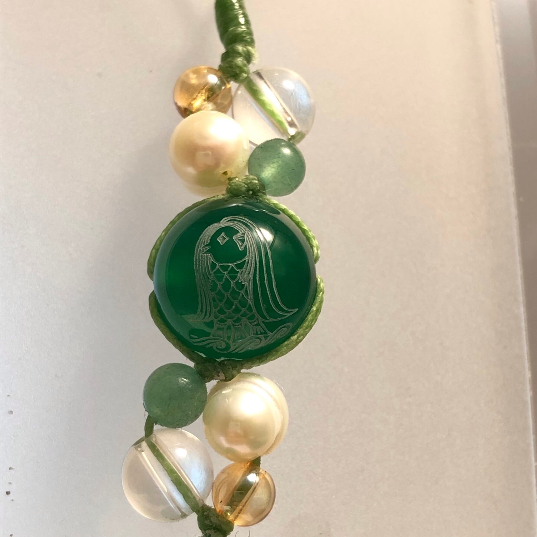 青めのう(アマビエ)、水晶、アベンチュリン、ゴールデンオーラ、淡水パール
