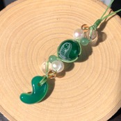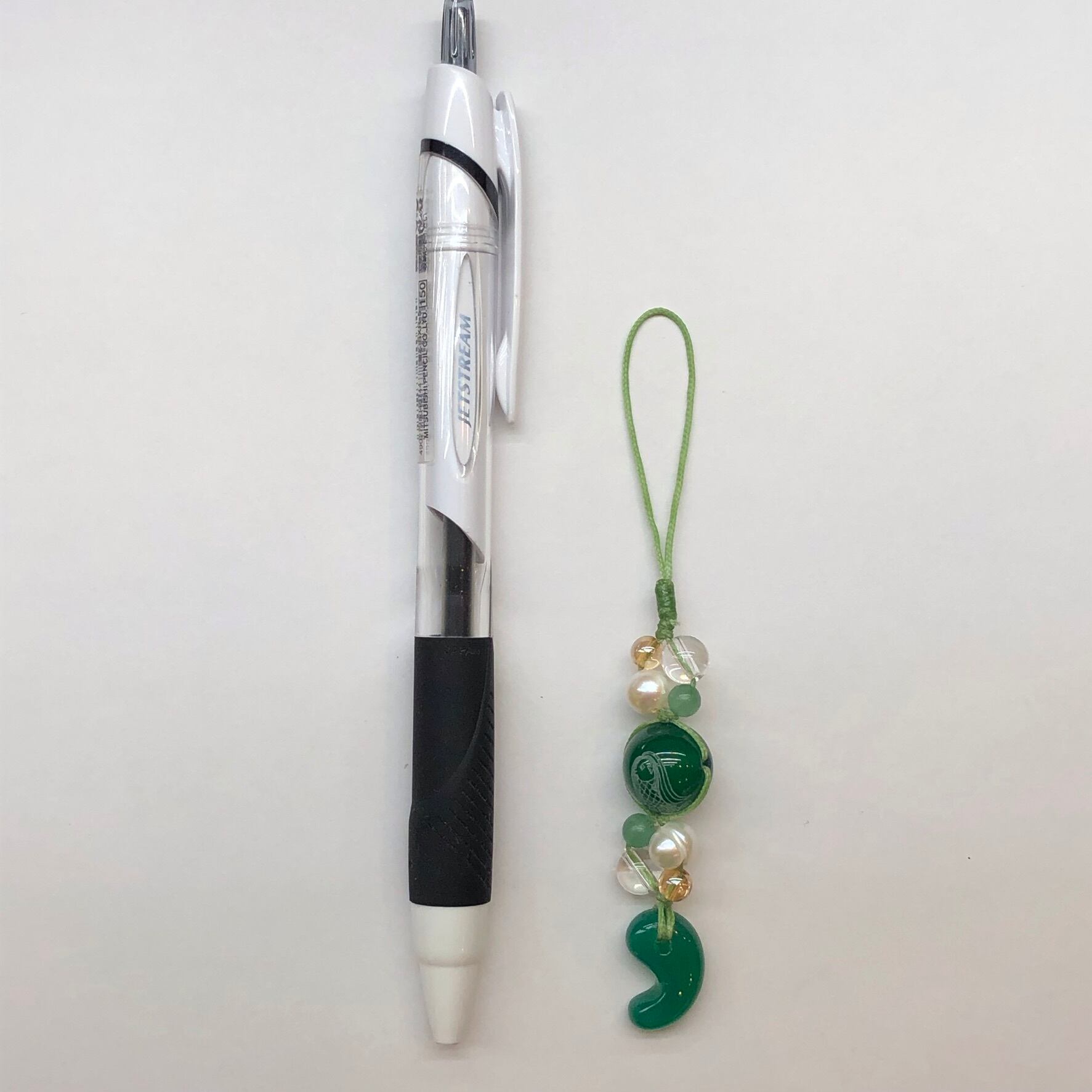 そんなアマビエの彫りが入った青めのう(長寿、健康)と様々な天然石を組み合わせてオリジナルのストラップを作りました♡