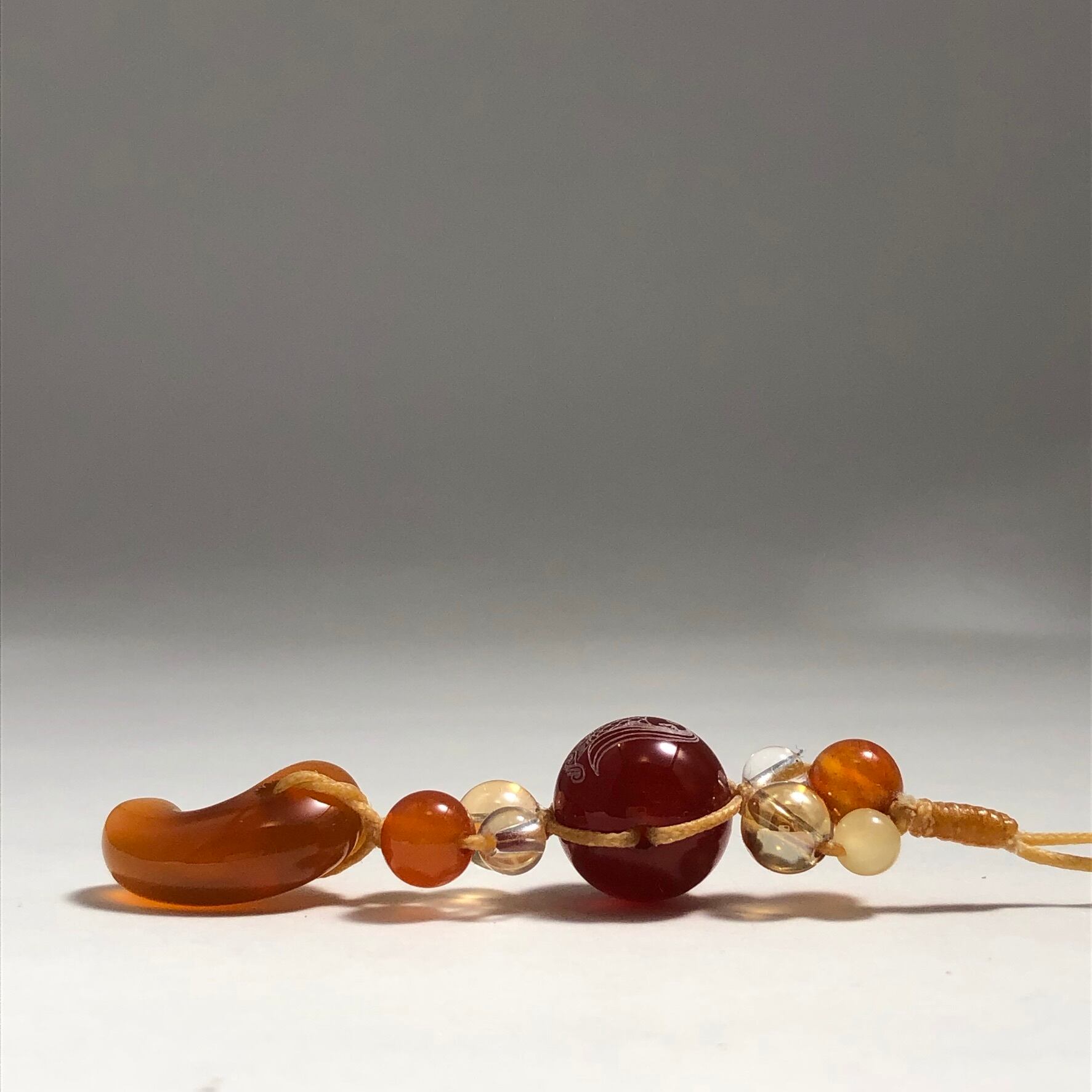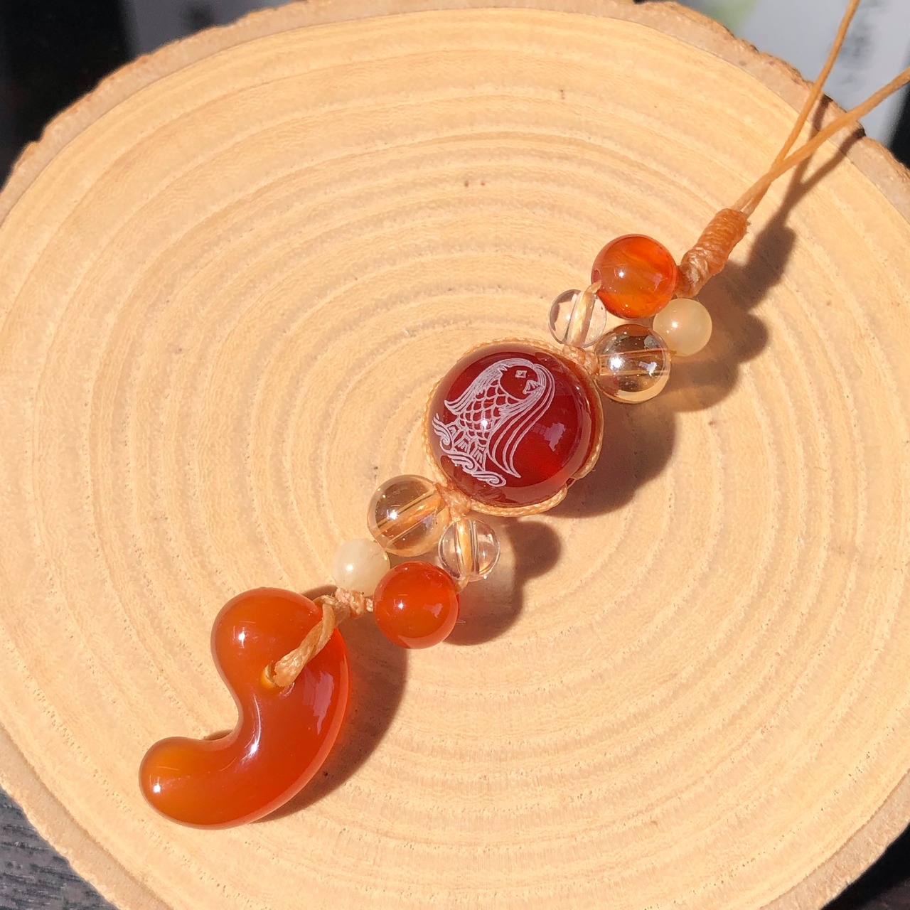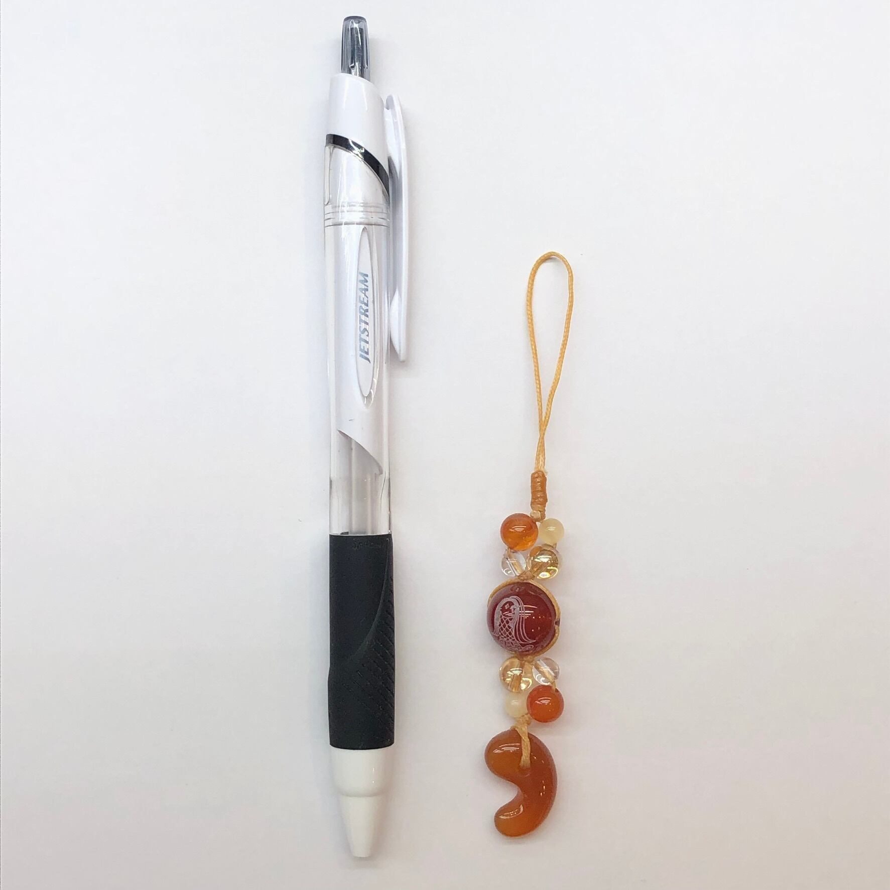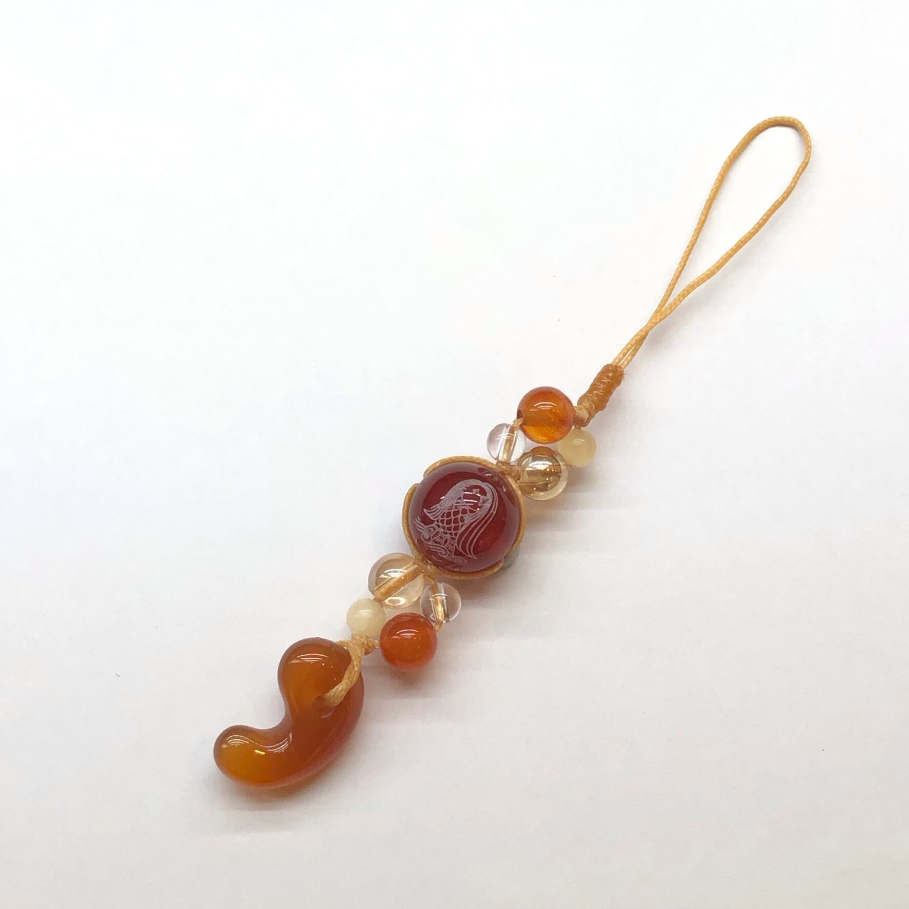 そんなアマビエの彫りが入った赤めのう(人間関係)と様々な天然石を組み合わせてオリジナルのストラップを作りました♡