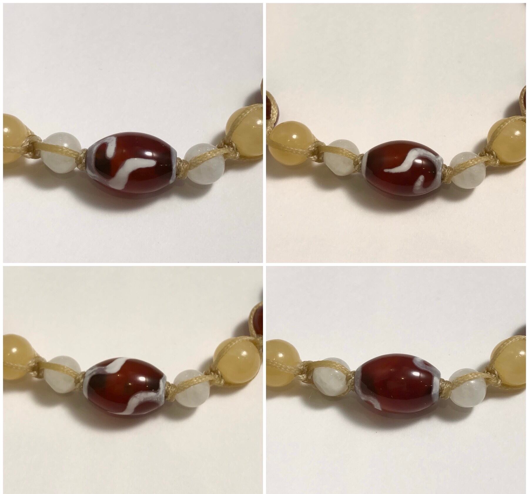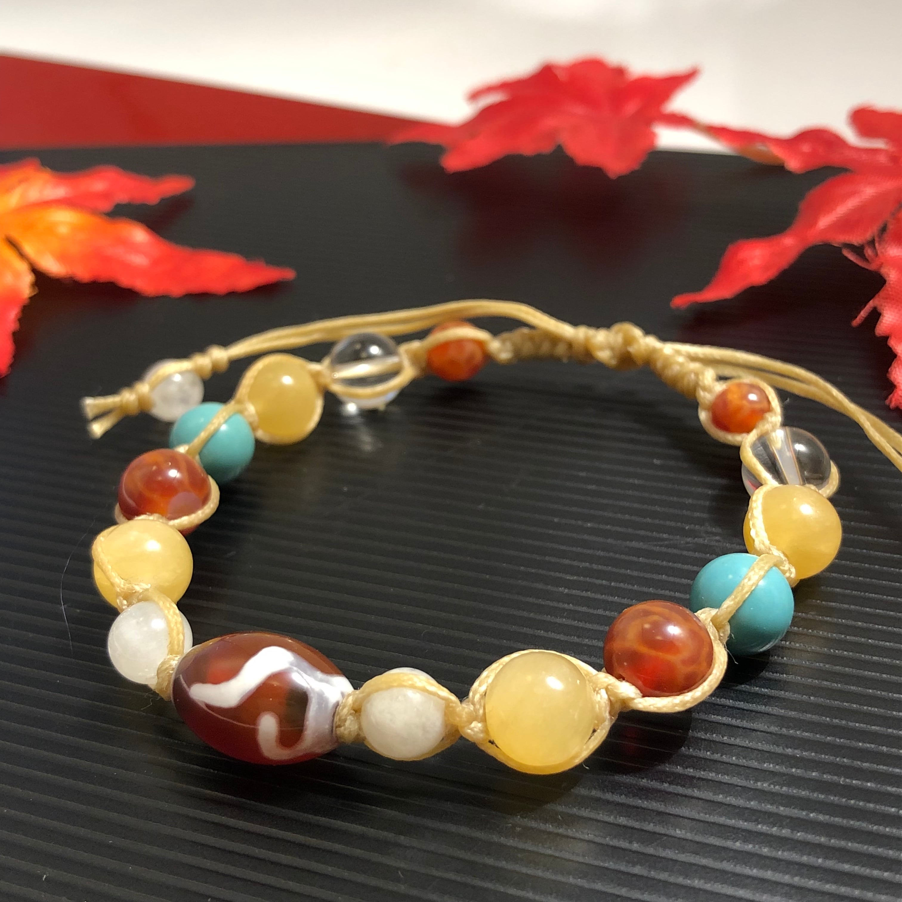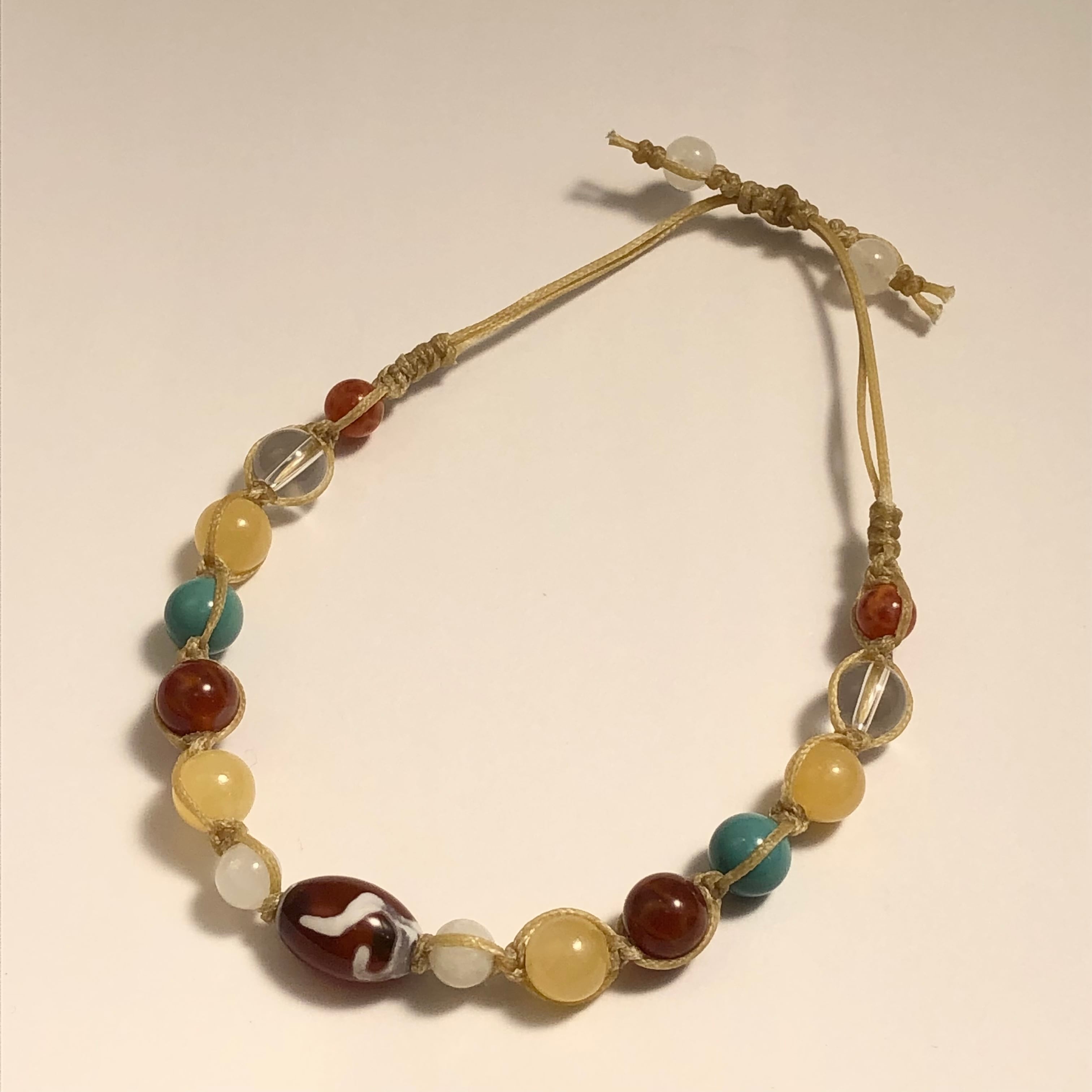 ■使用している石 如意天珠(赤めのう)、ファイアーアゲート、ターコイス、アラゴナイト、ムーンストーン、水晶