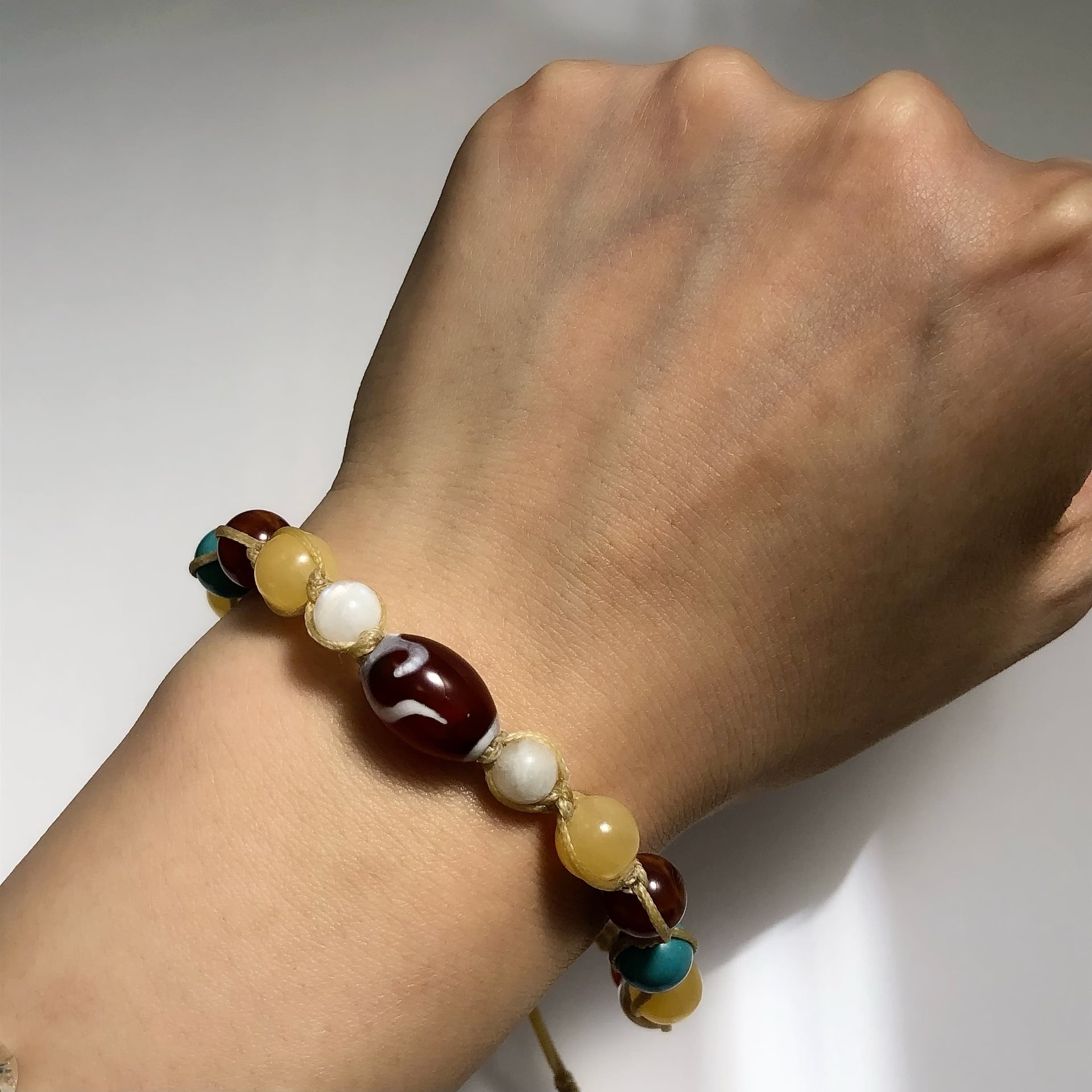 こちらは如意天珠(にょいてんじゅ)を使用した編みブレスレットです!