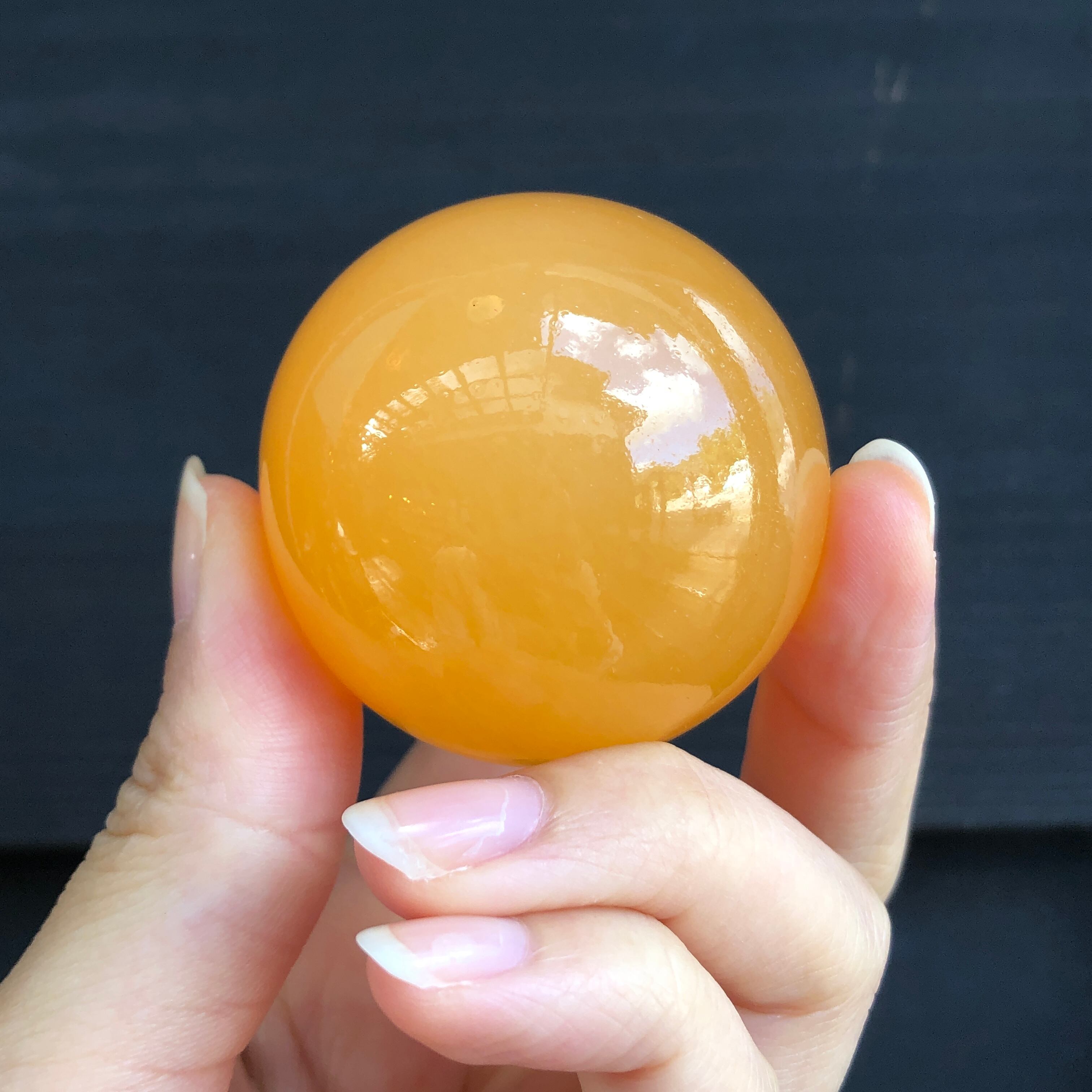 【h176d】オレンジカルサイト 丸玉 44mm メキシコ産(台座別売り)