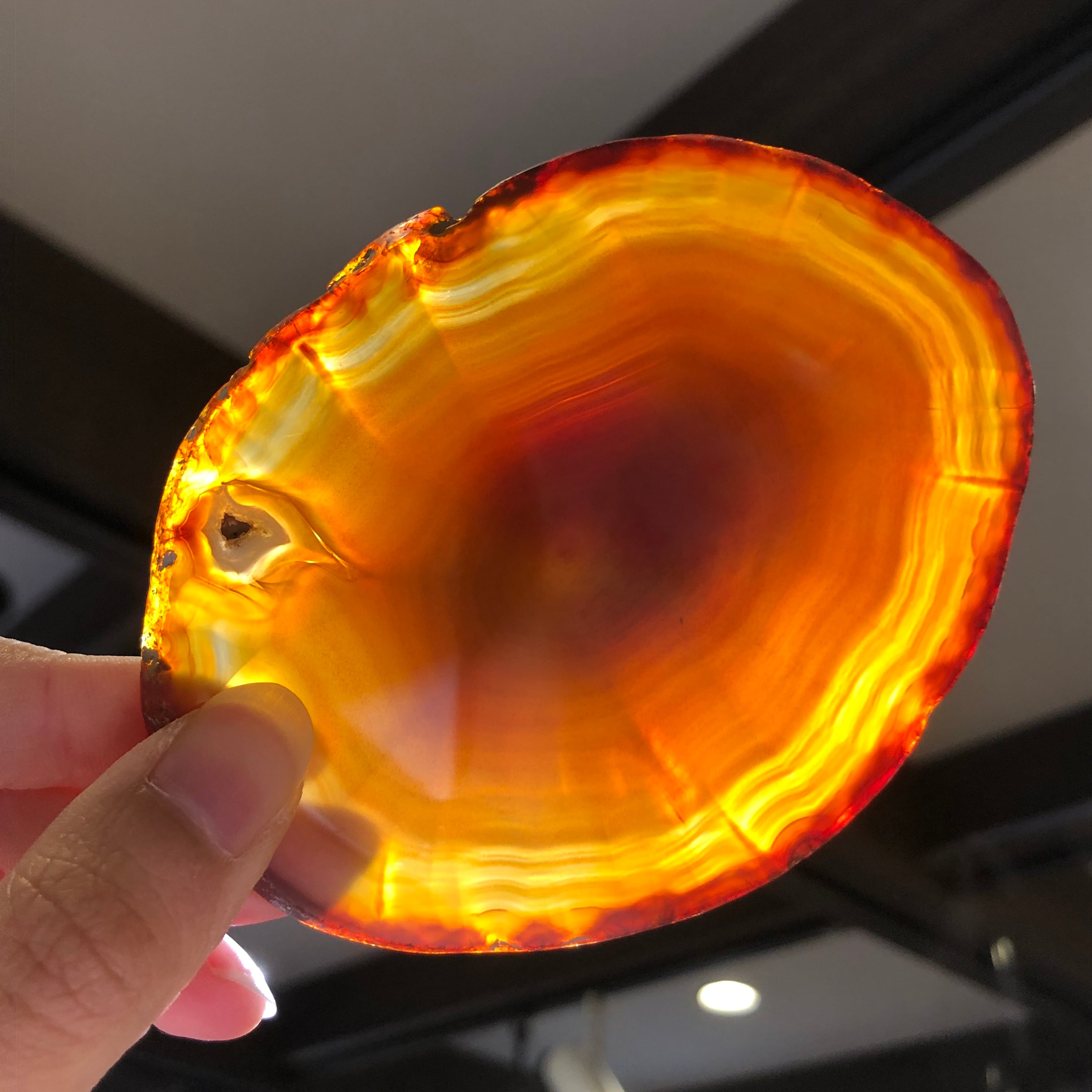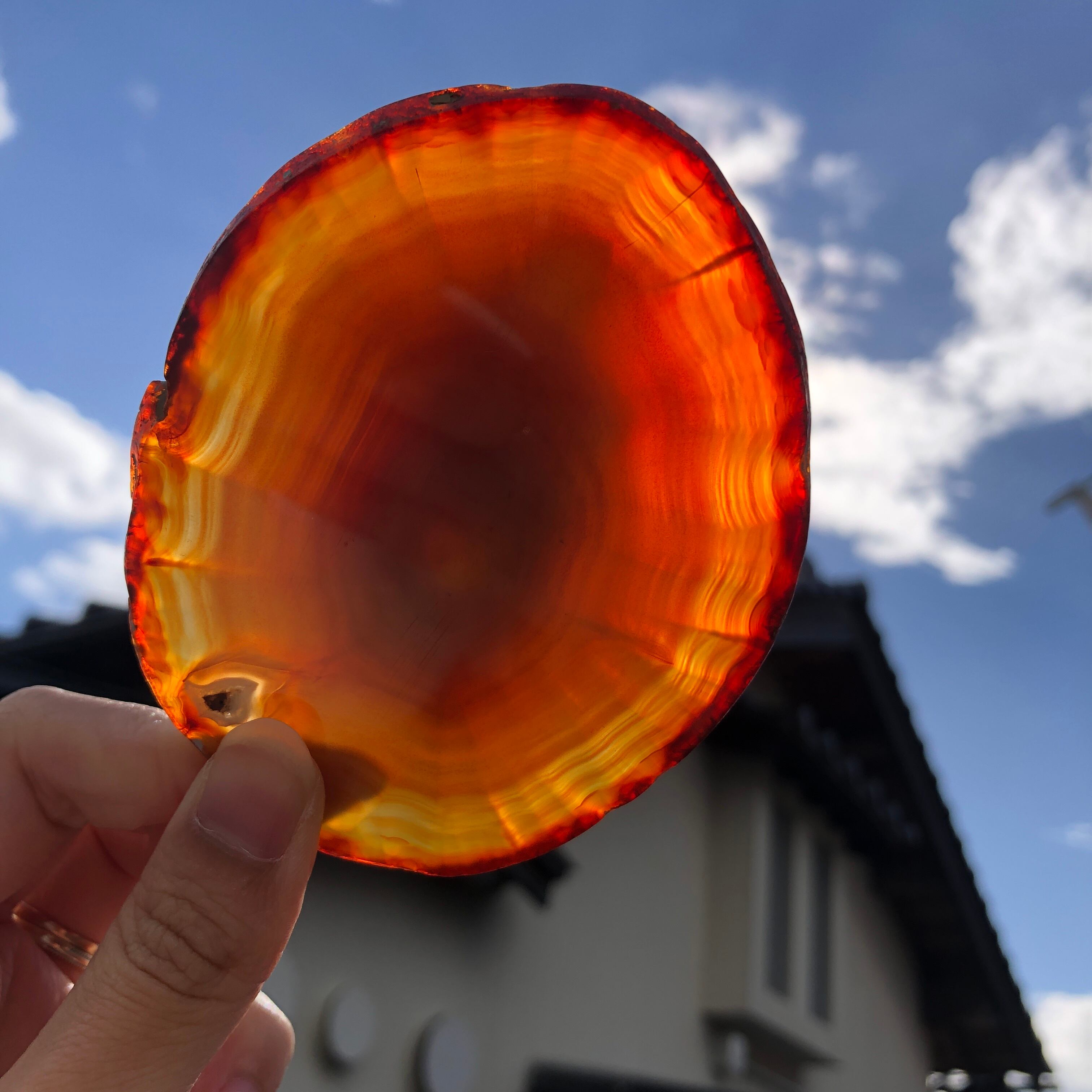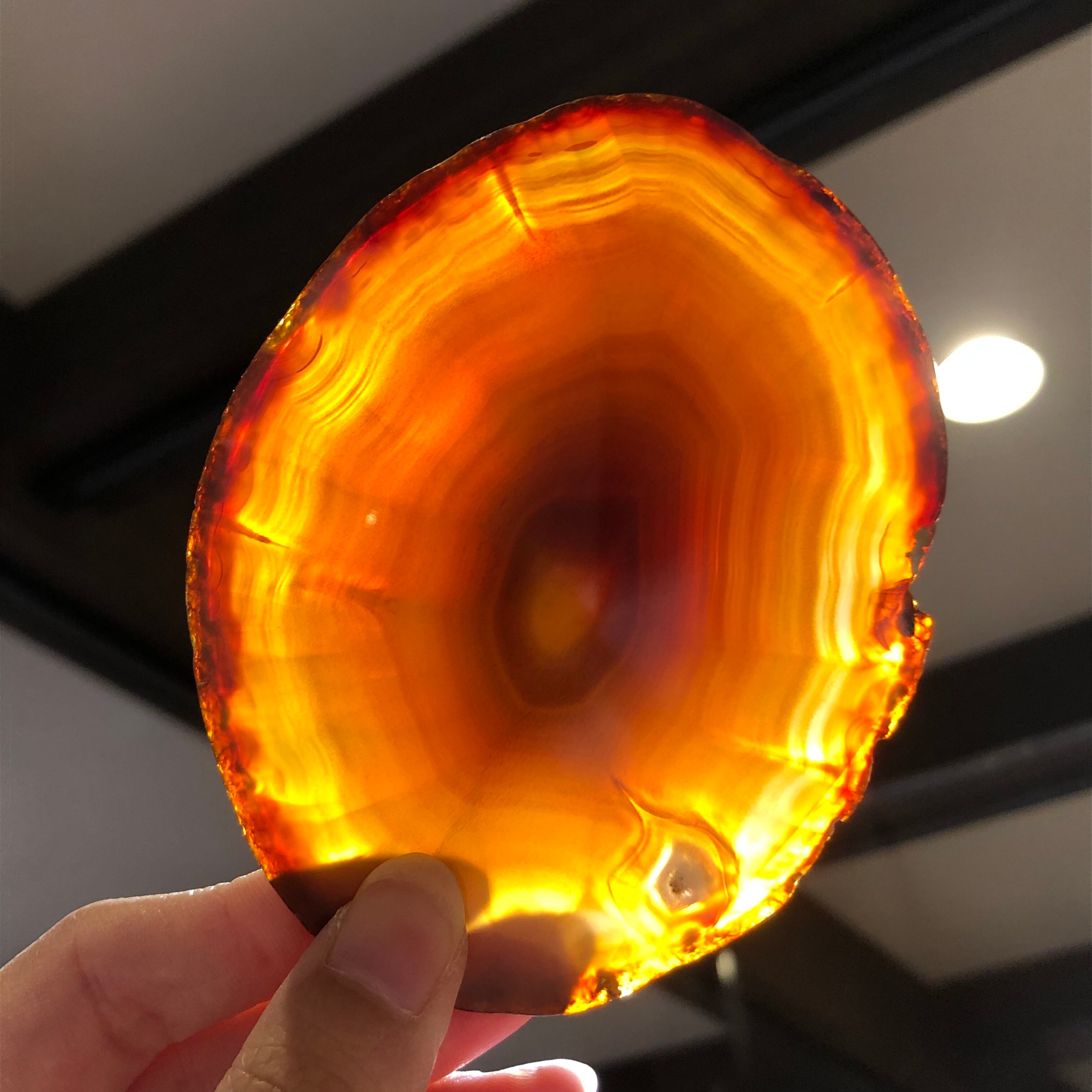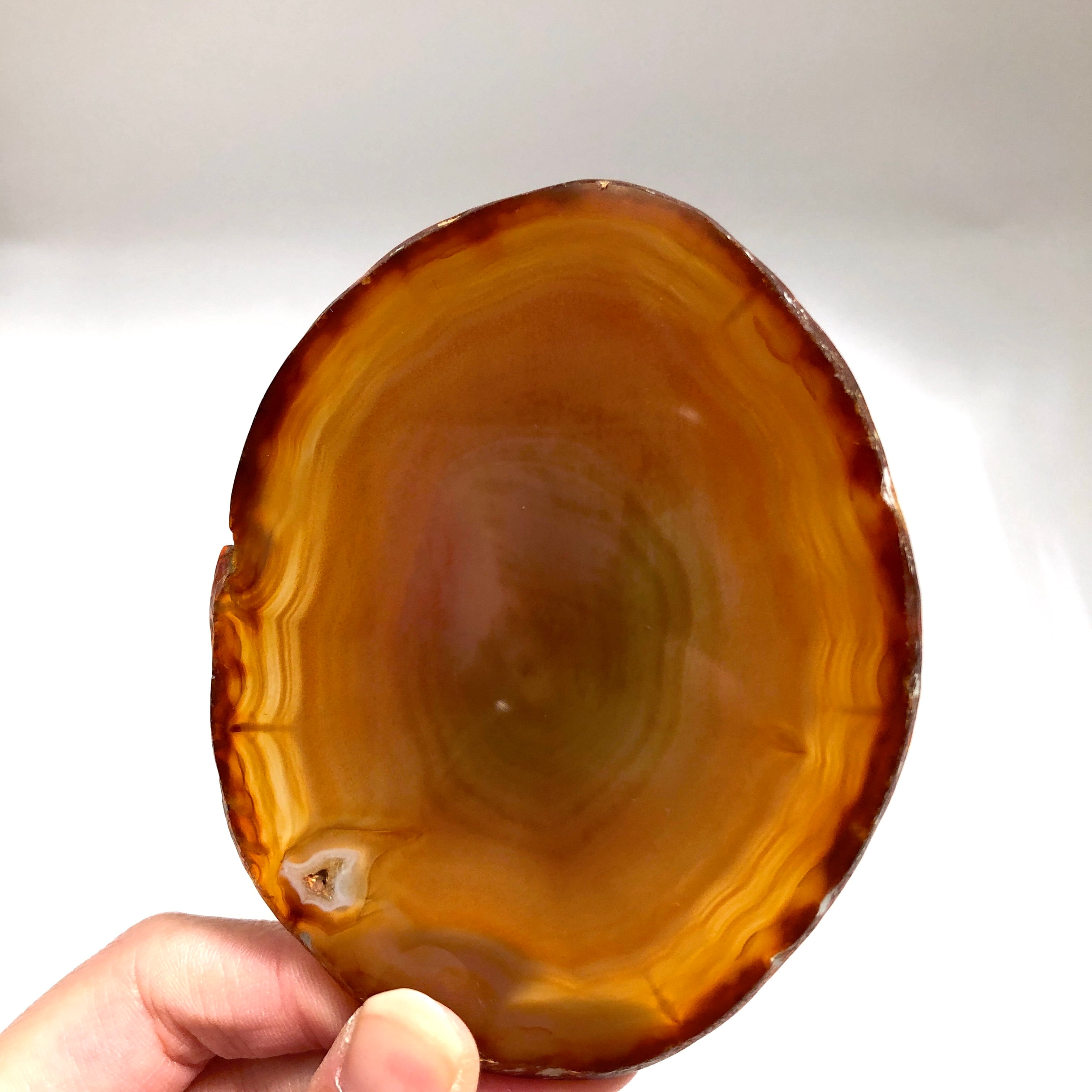 メノウは多孔質で光を透かすため、明るい所にかざしてみると模様や色味がハッキリ現れ、また違った美しさを発見できます。