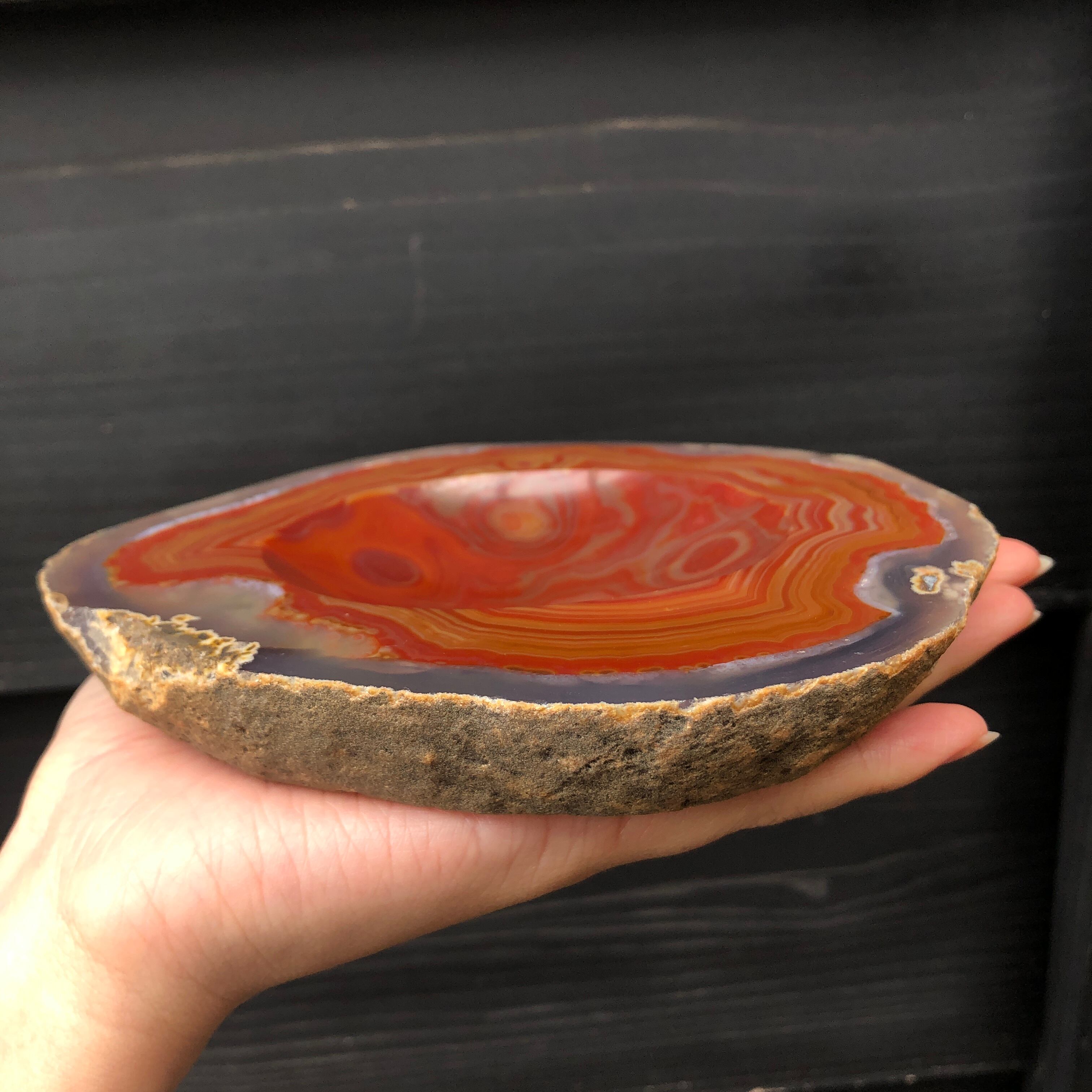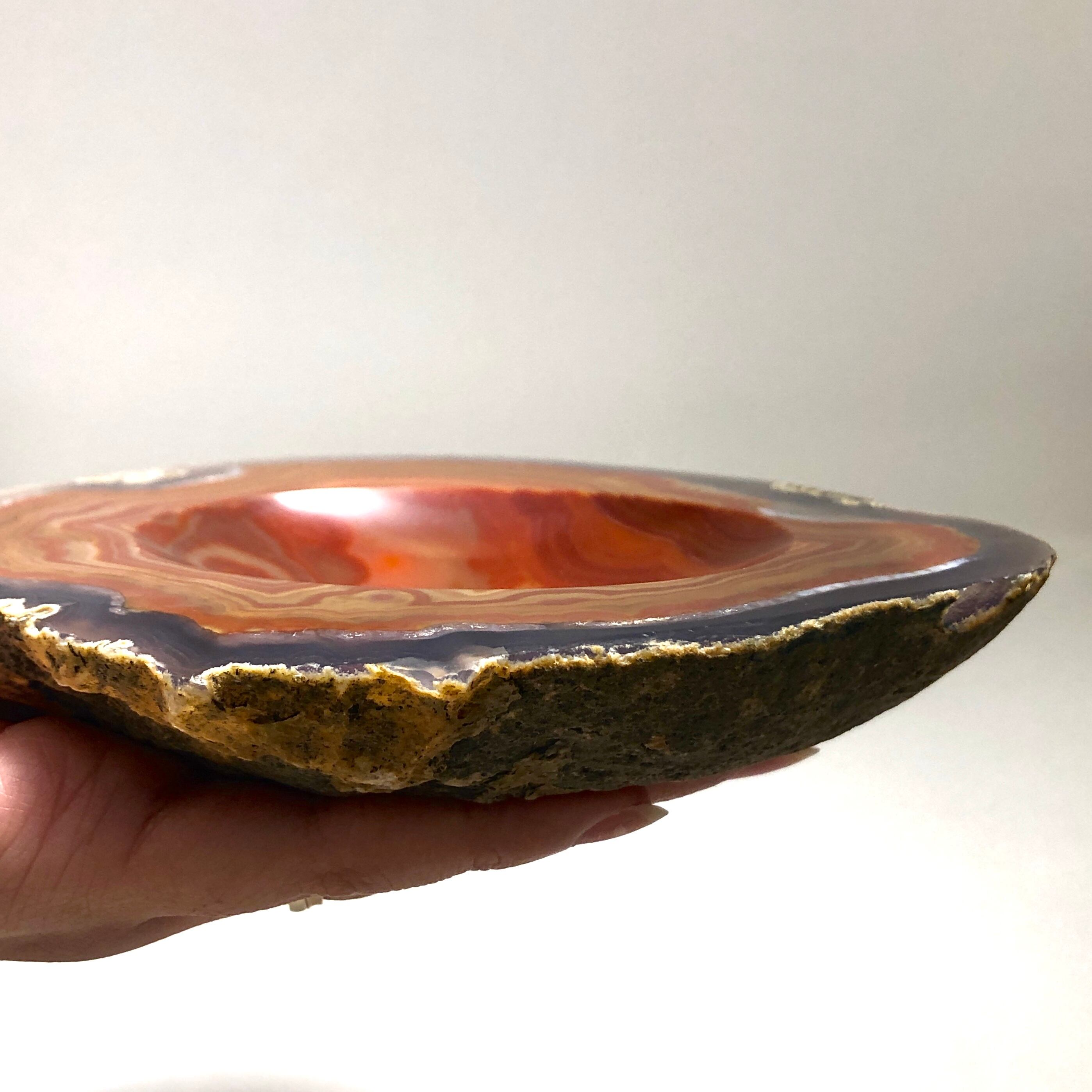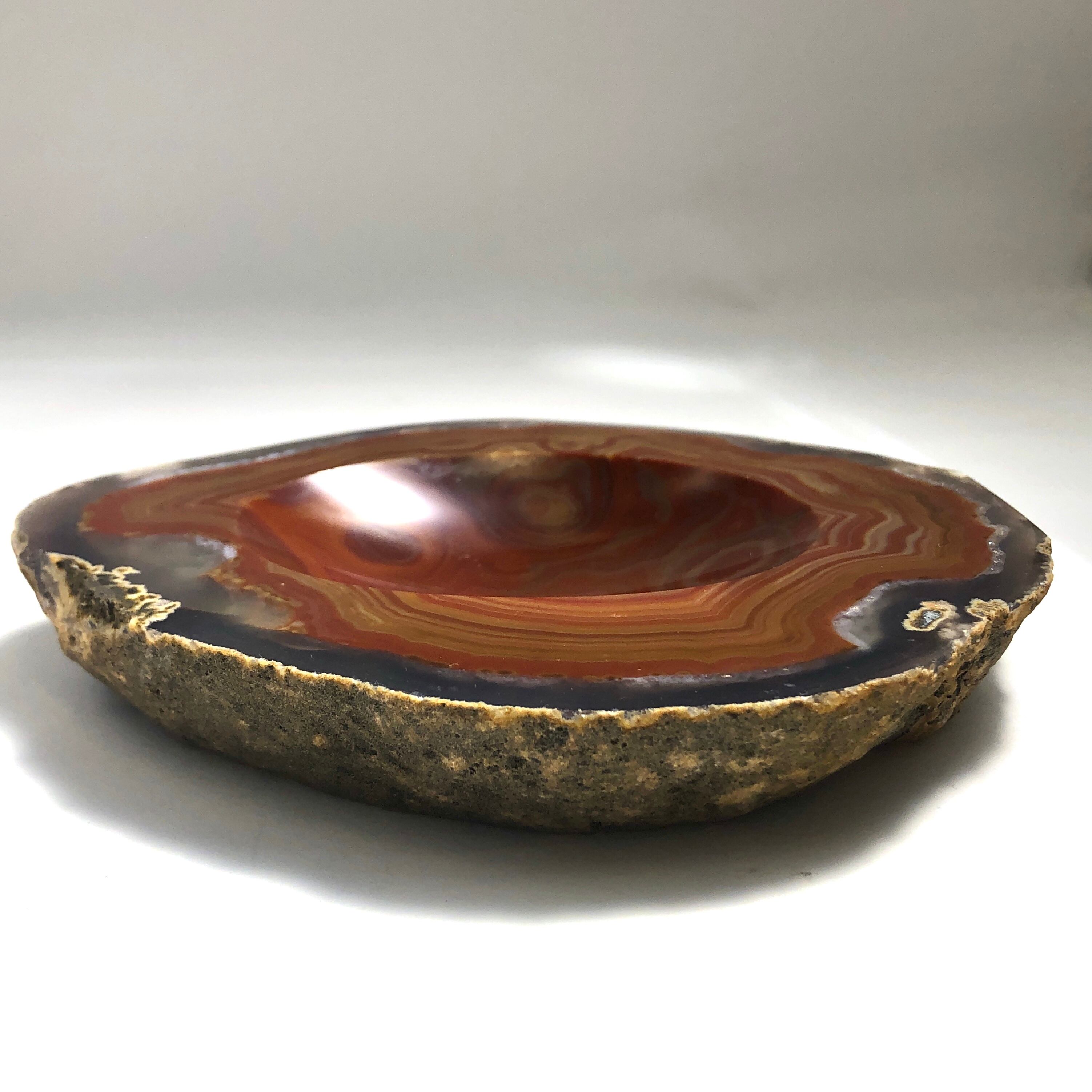 めのうの原石を削って作ったお皿です。