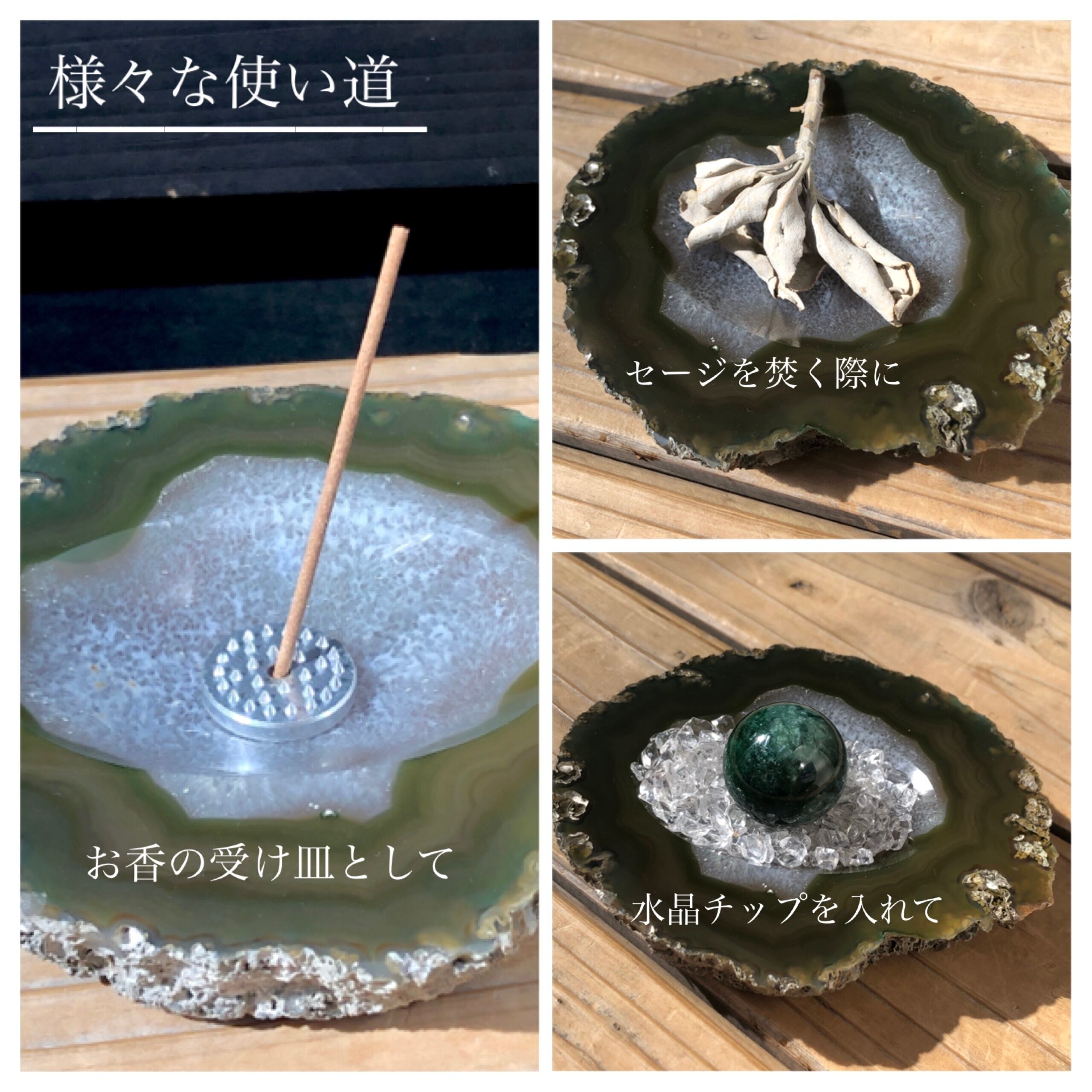 中央部分が窪んでおり、セージを焚く際の受け皿としてや、水晶チップを敷き詰めて天然石の浄化などにお使い頂けます!