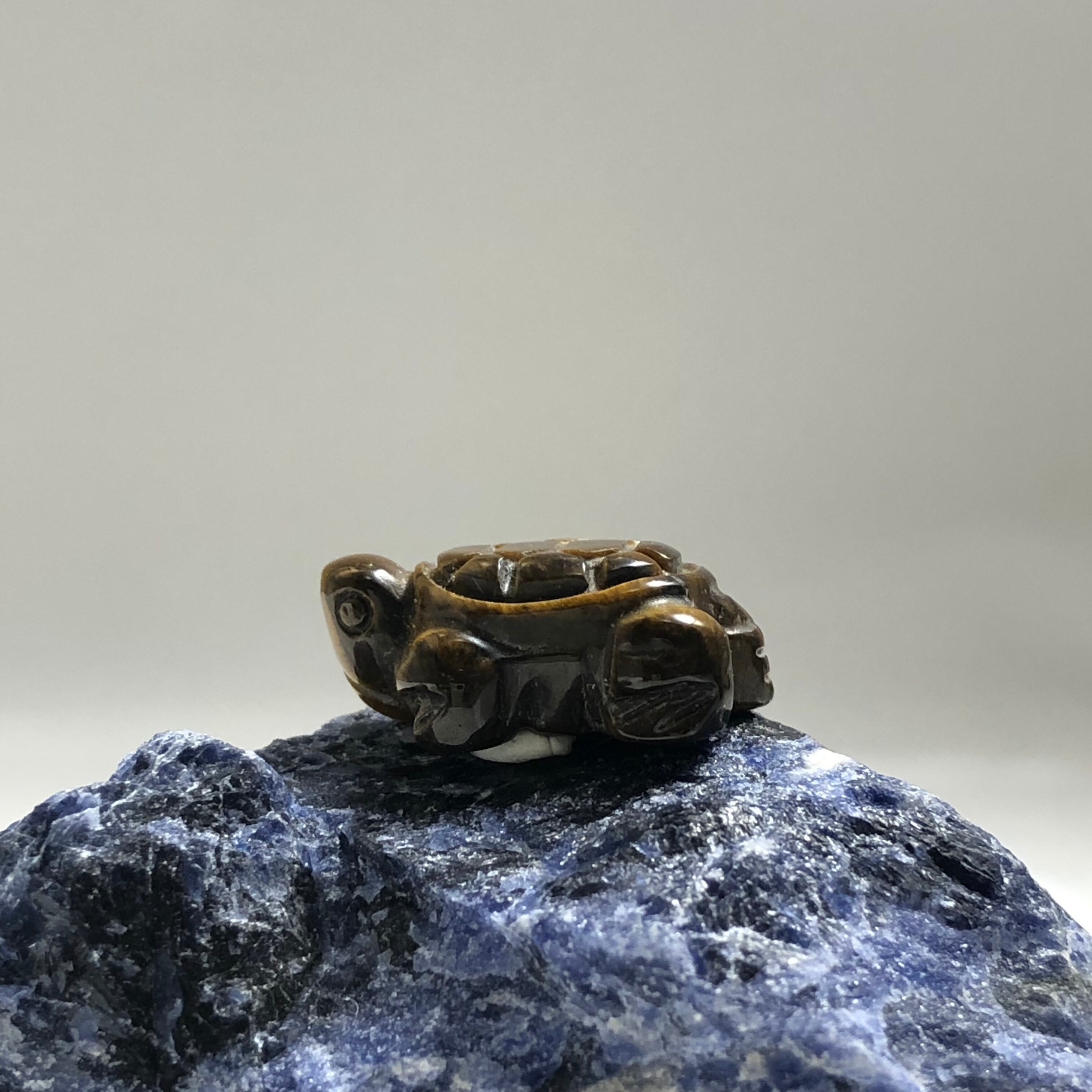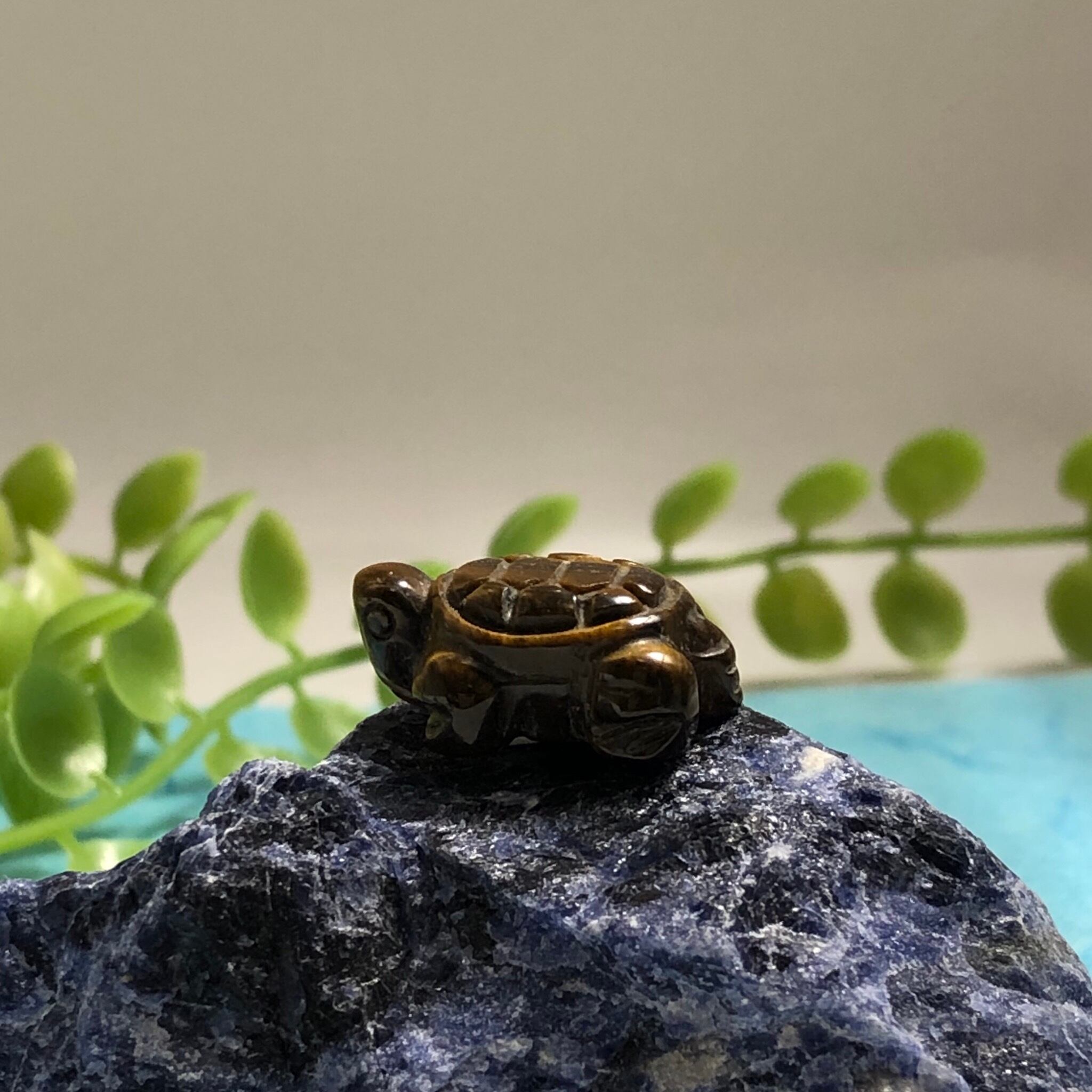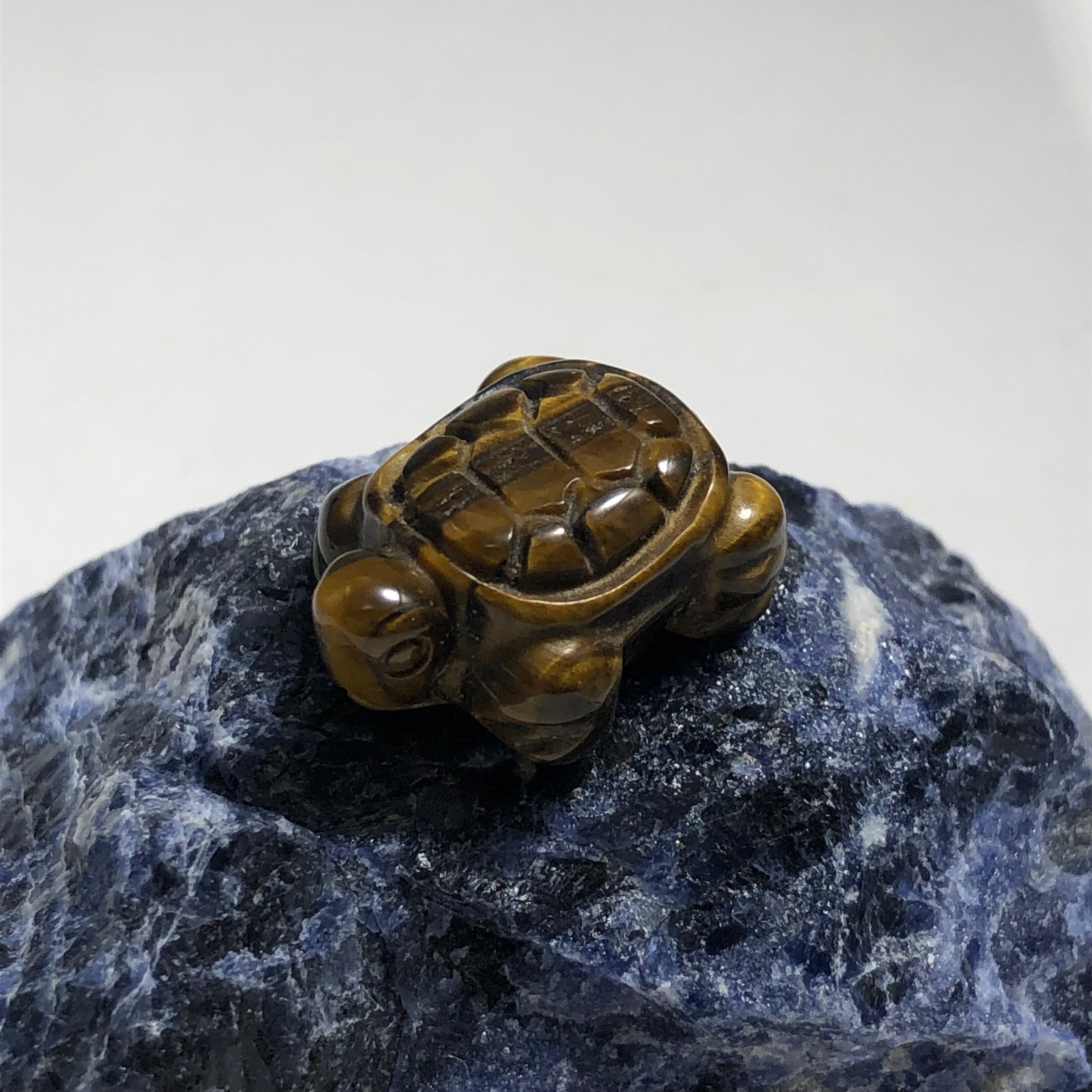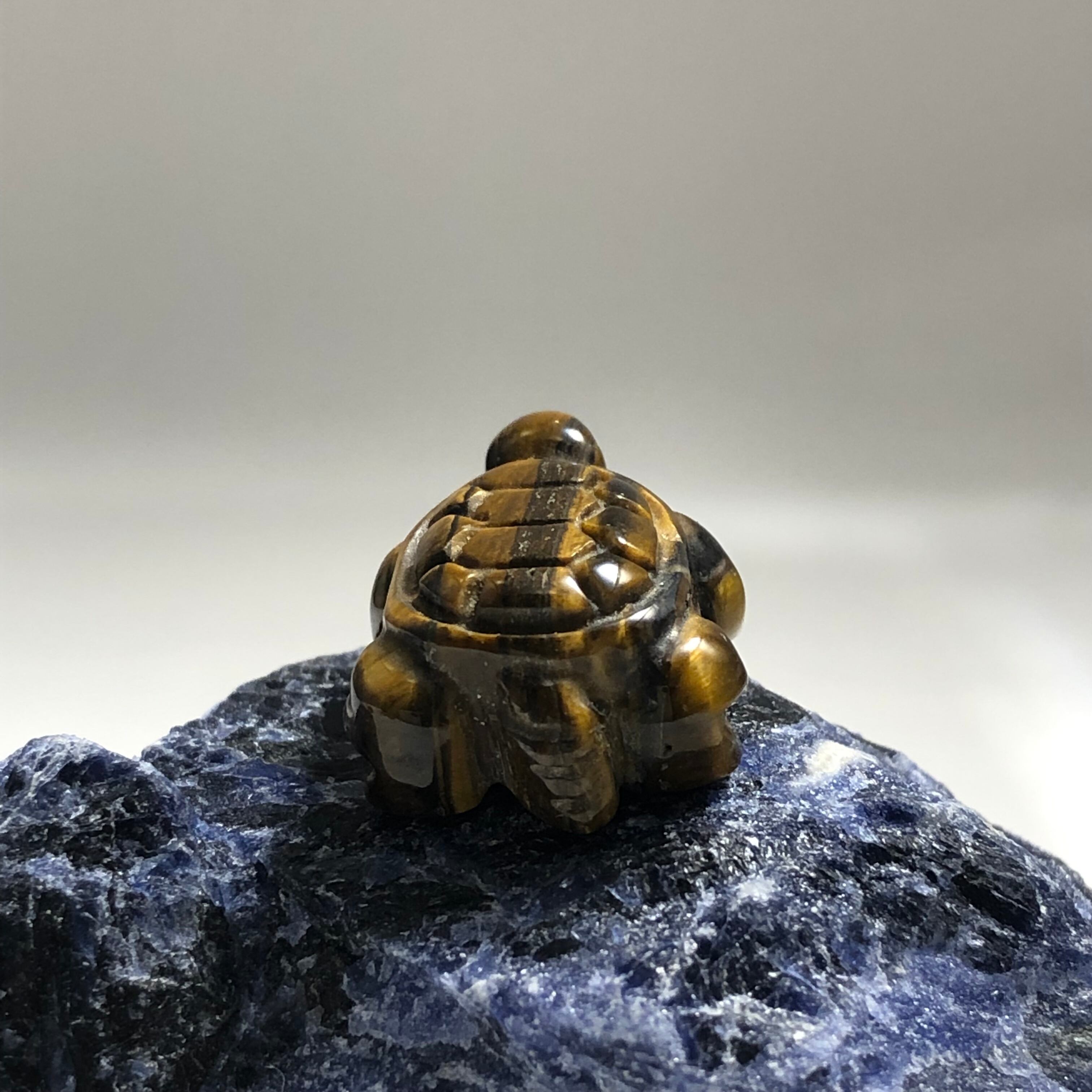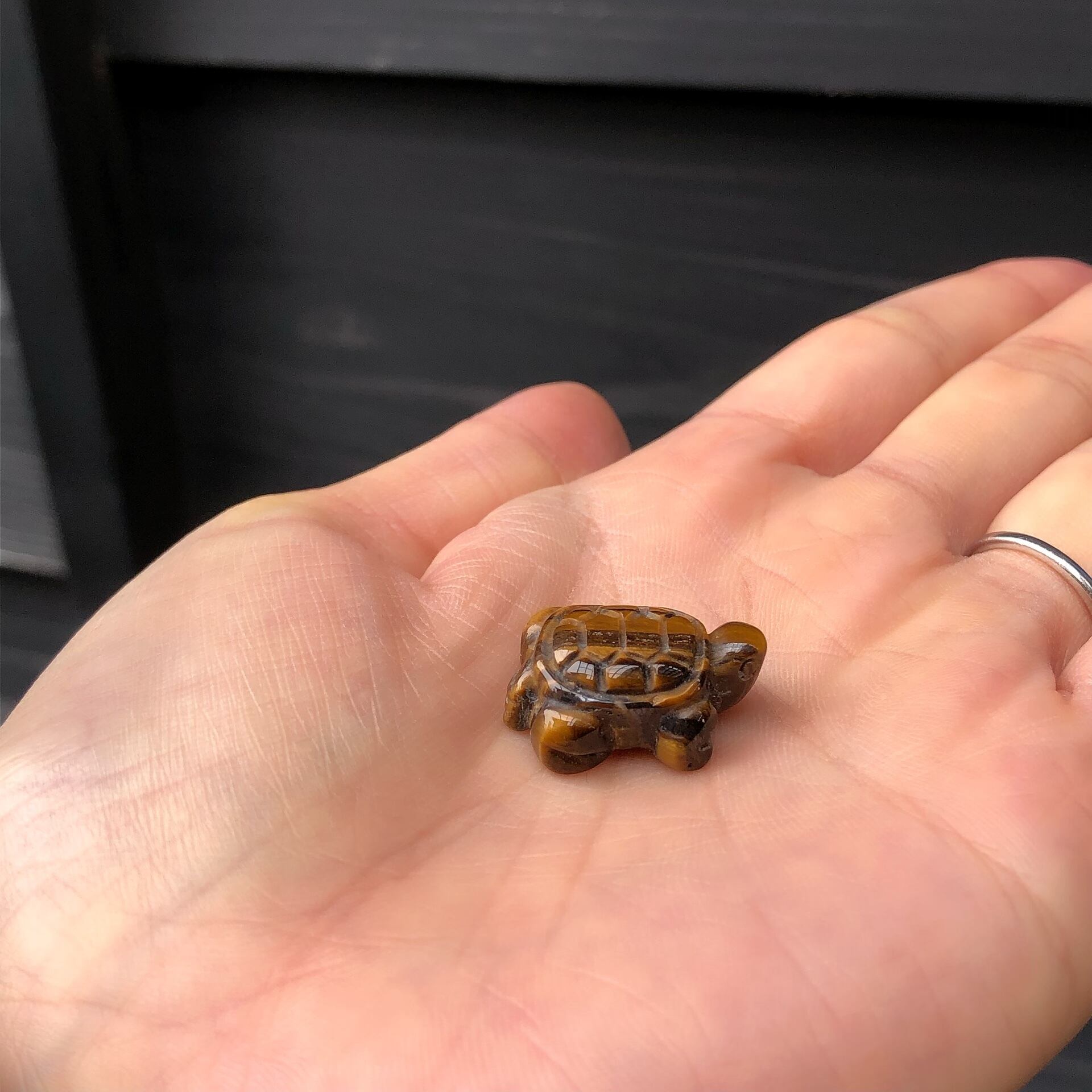 そんな縁起の良い亀を、金運アップの効果があるとされるタイガーアイでお作りしました。
