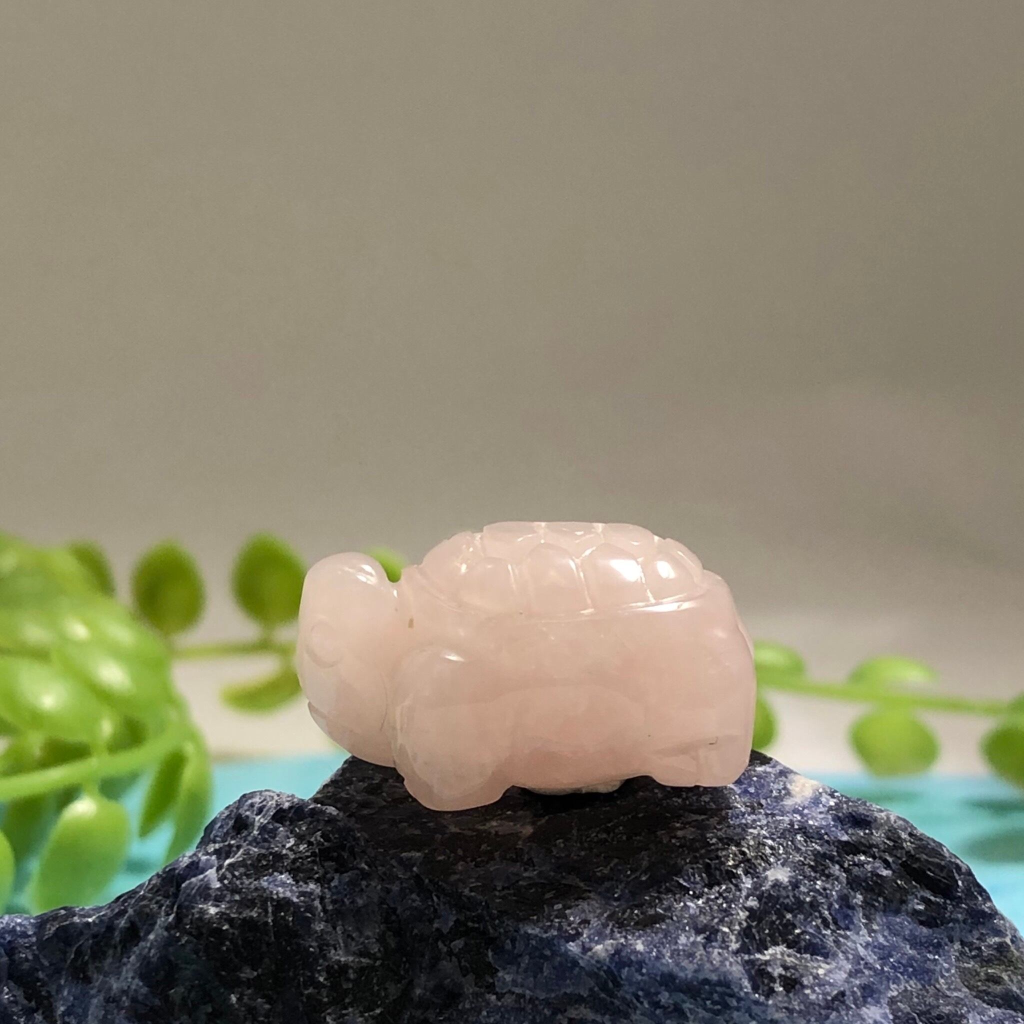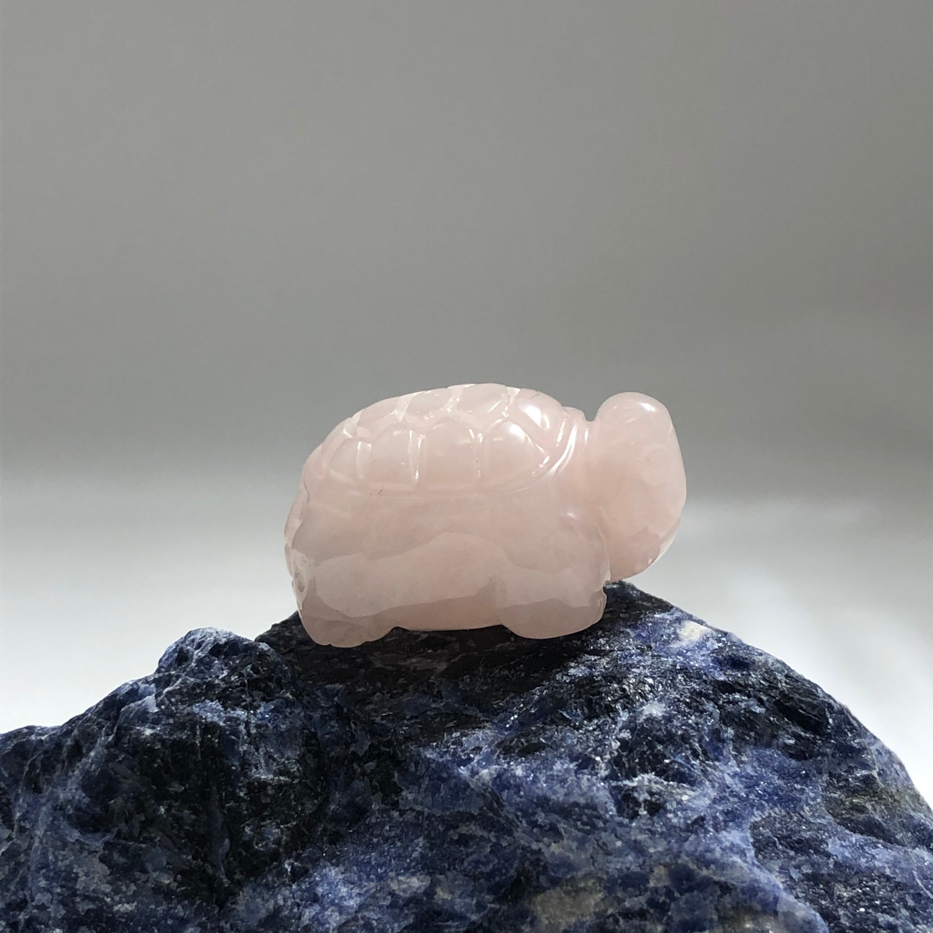 そんな縁起の良い亀を、恋愛成就、家庭円満に良いといわれているローズクォーツでお作りしました。