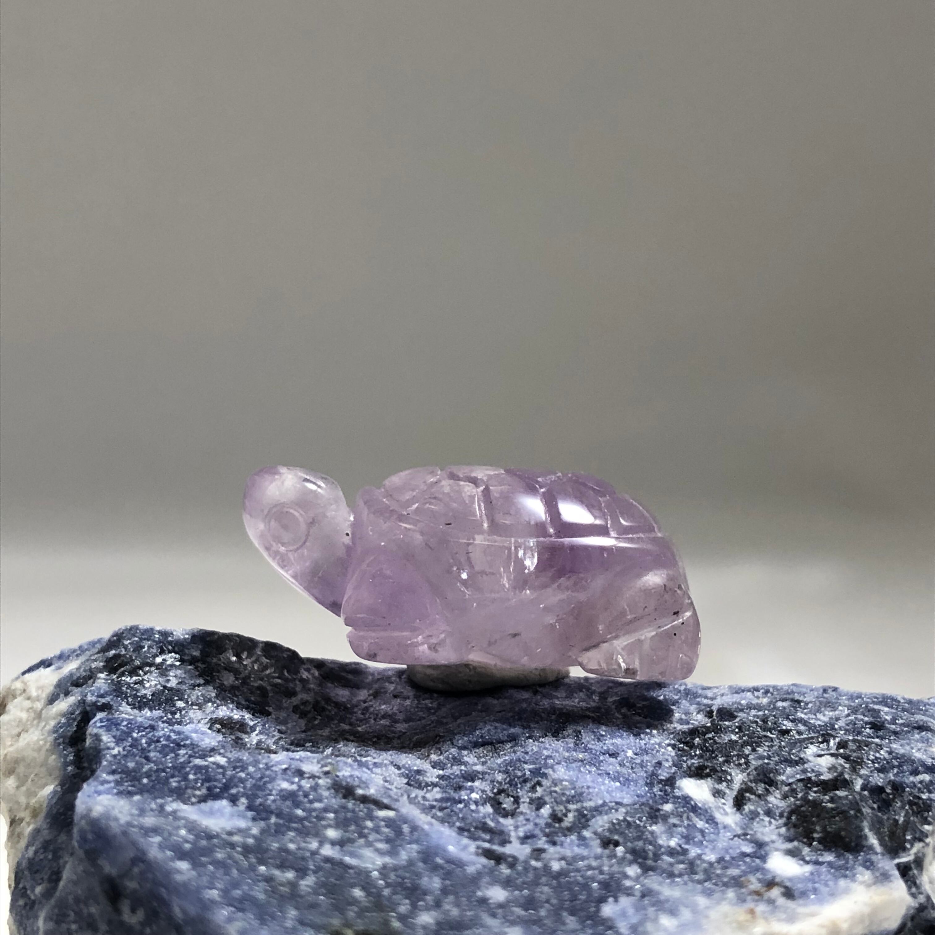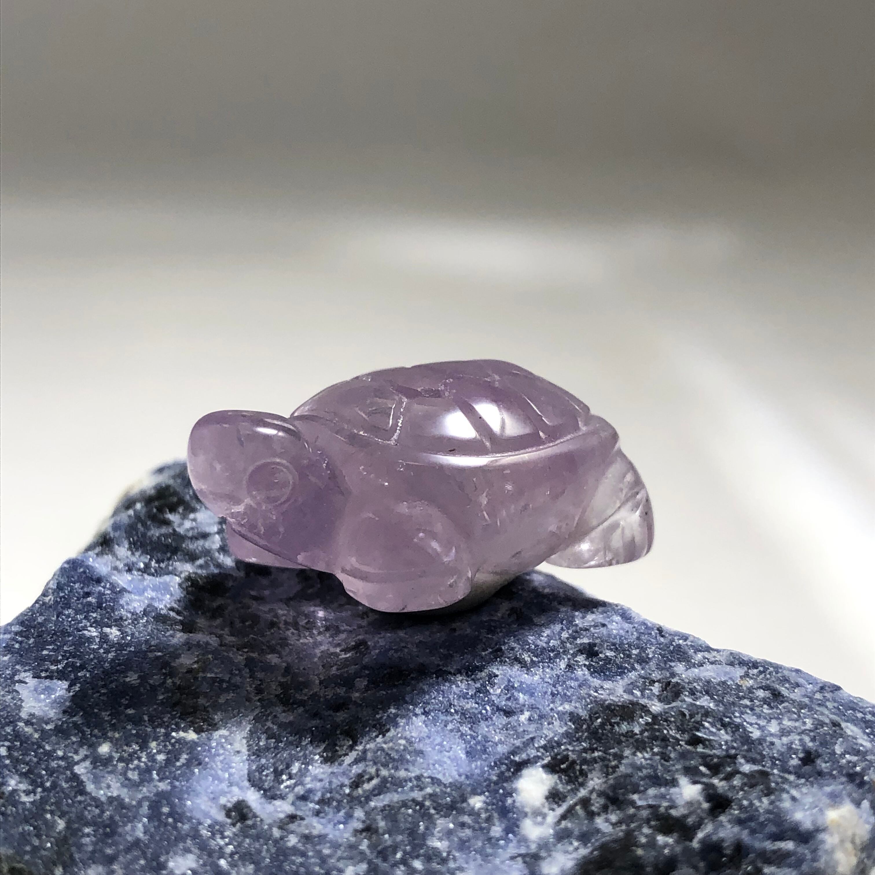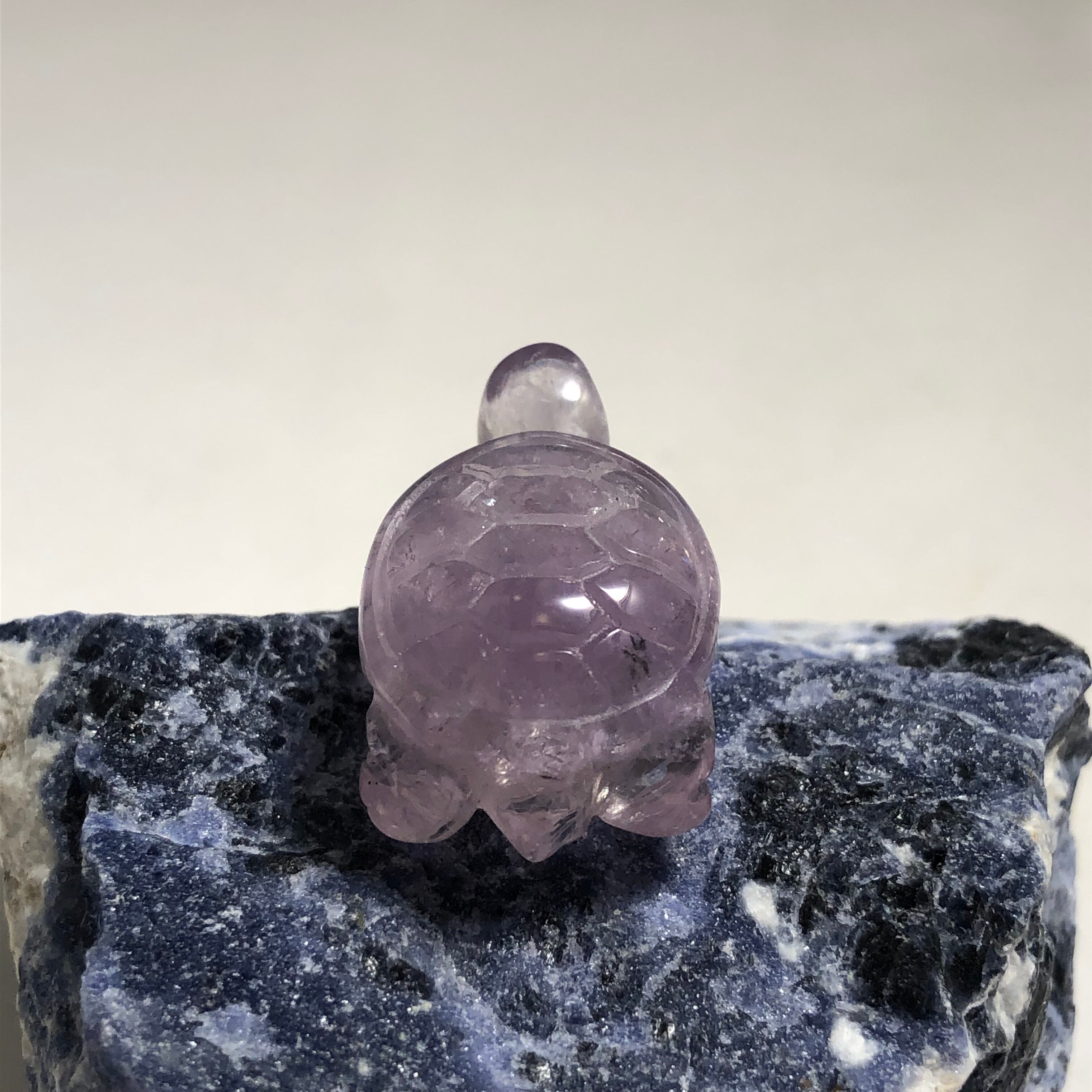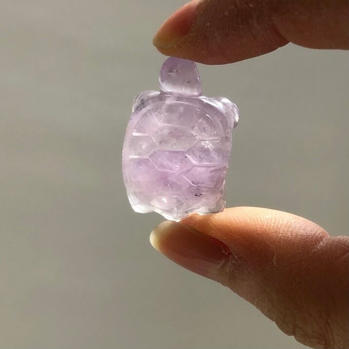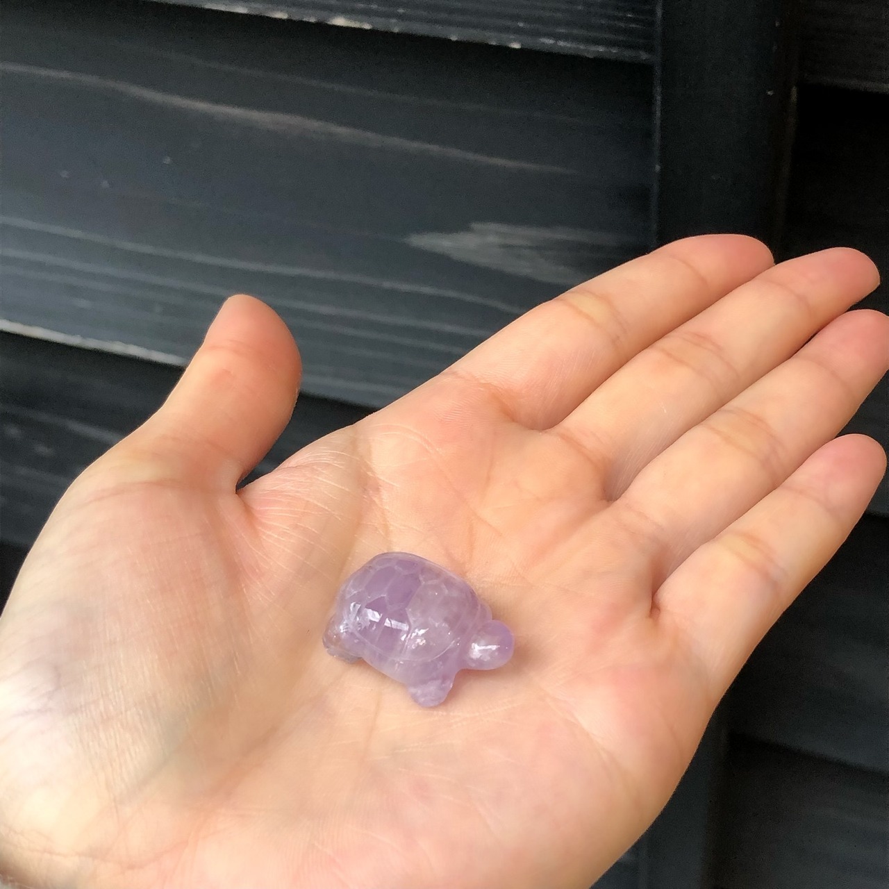 そんな縁起の良い亀を、厄除けや真実の愛を守り絆を深めるといわれているアメシストでお作りしました。