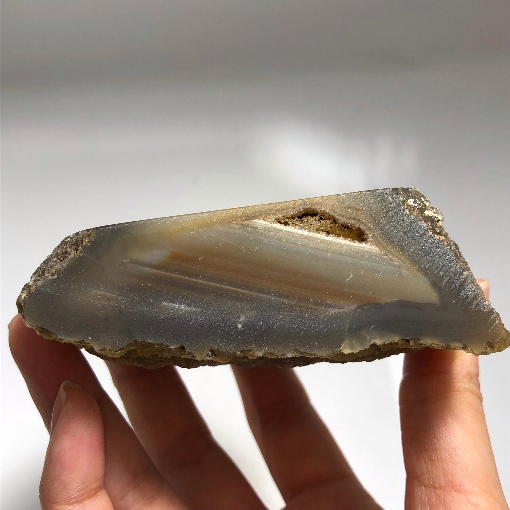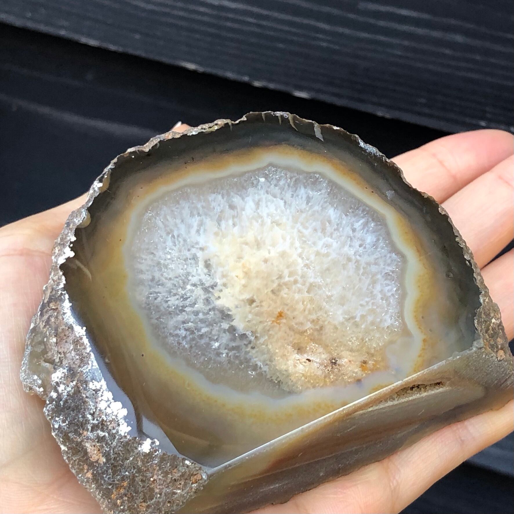 こちらは瑪瑙(めのう)の原石をスライスしたもので、自然の縞模様や結晶面が美しく、同じ模様はまたとない一点物です!
