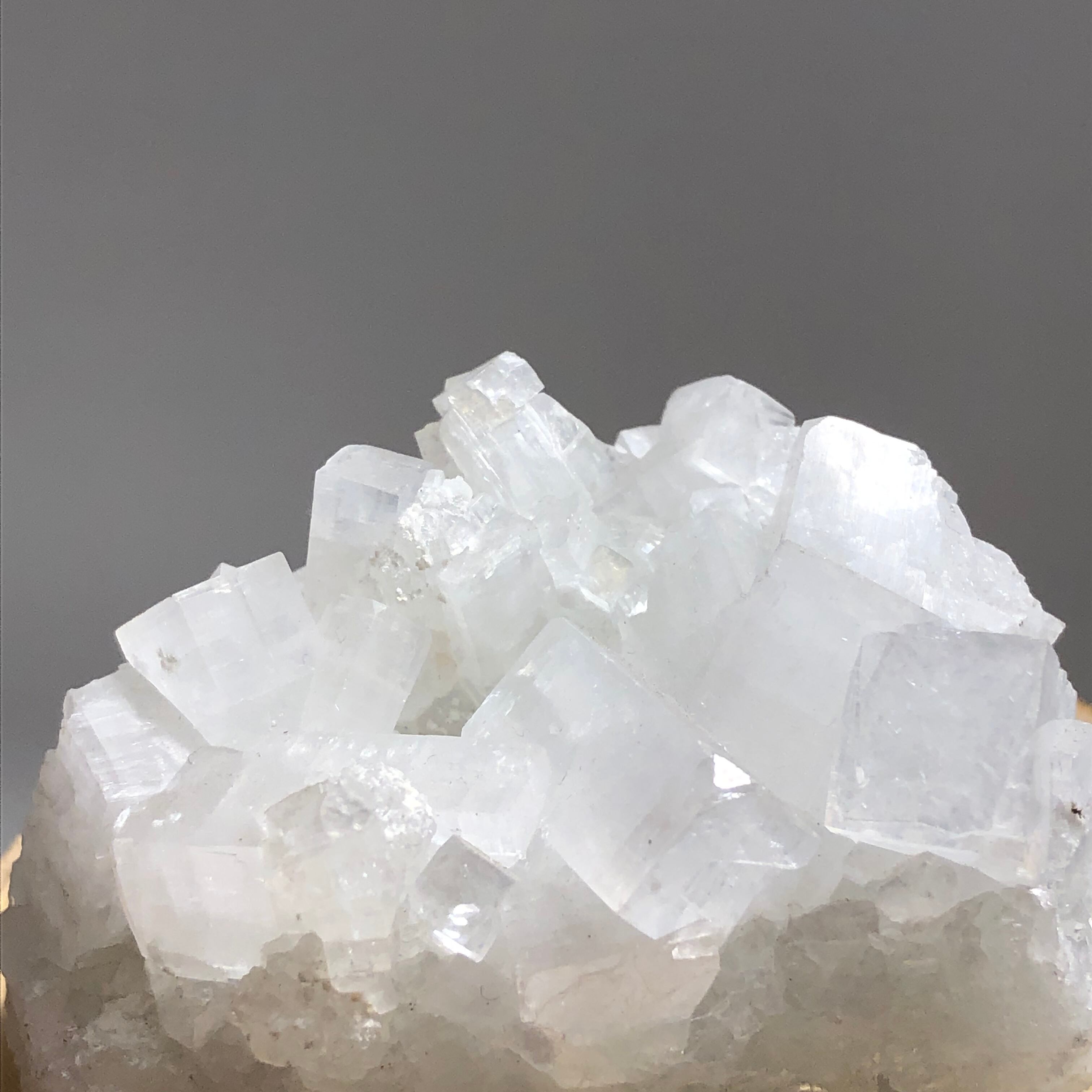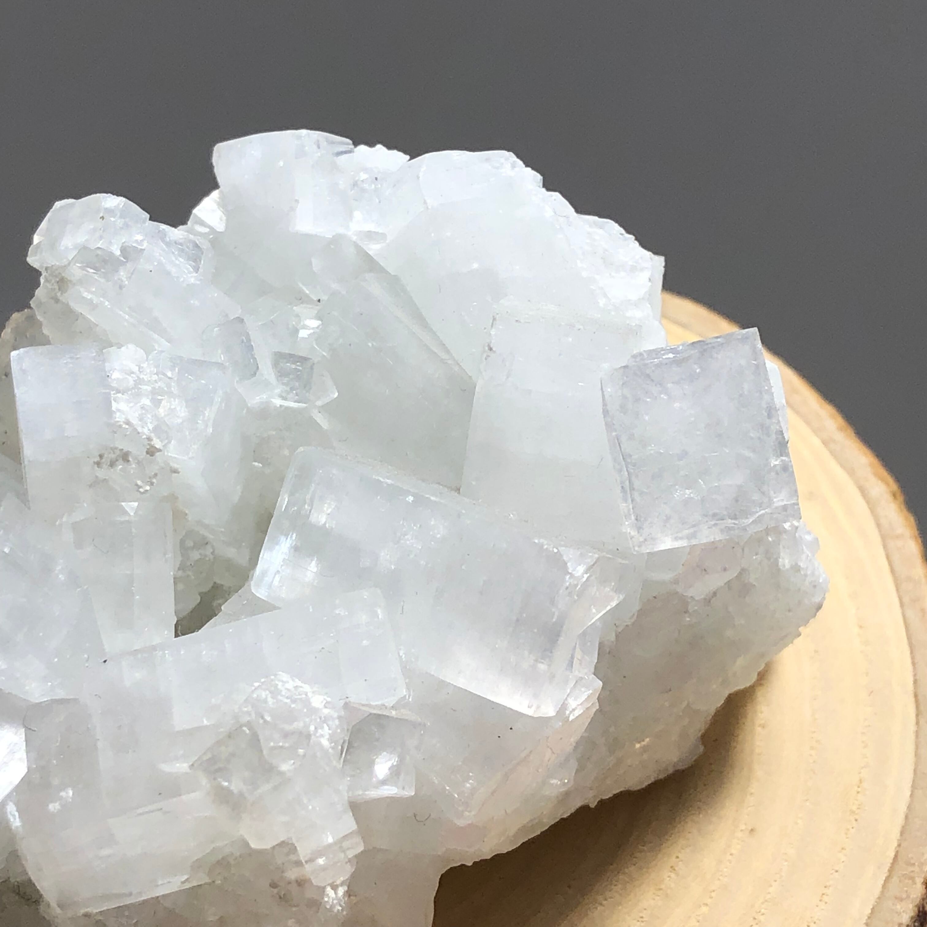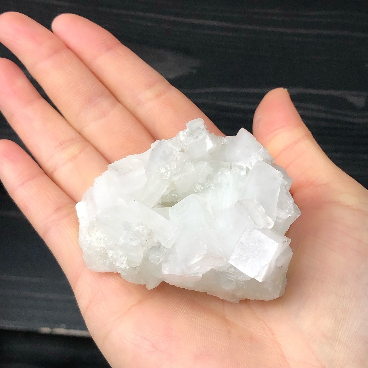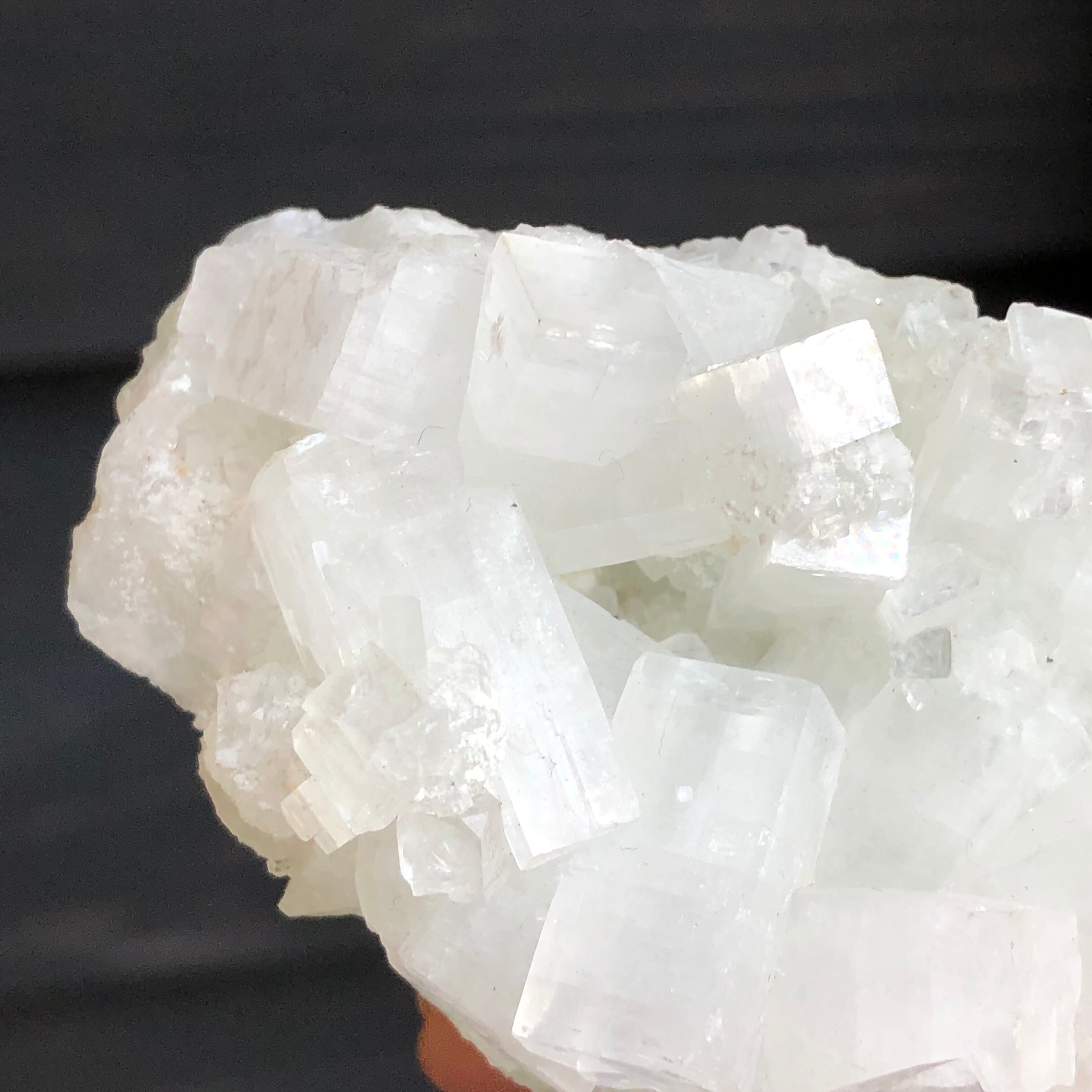 こちらは氷砂糖のような半透明で、石の表面の輝き方や反射によってキラキラとした光沢が見られます。