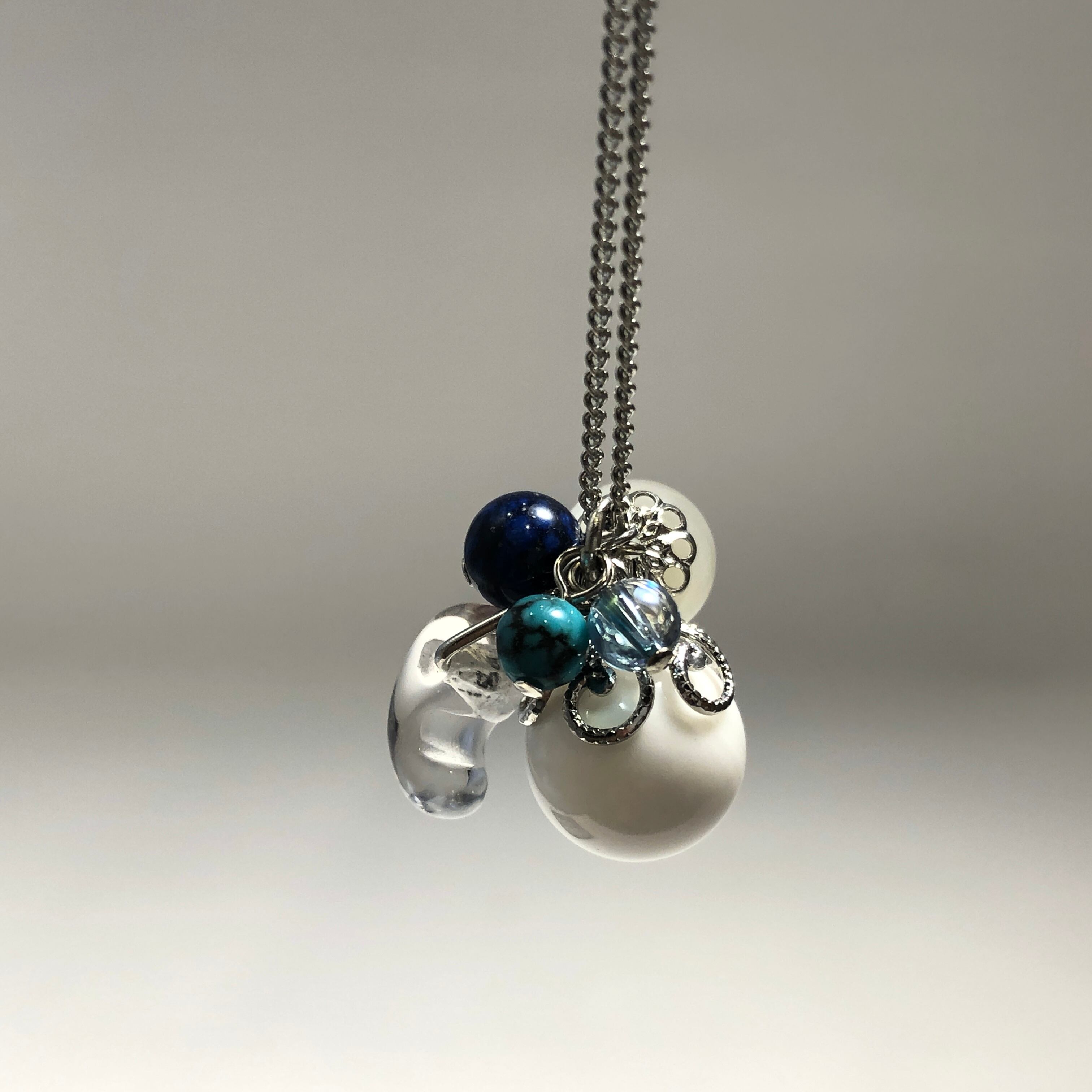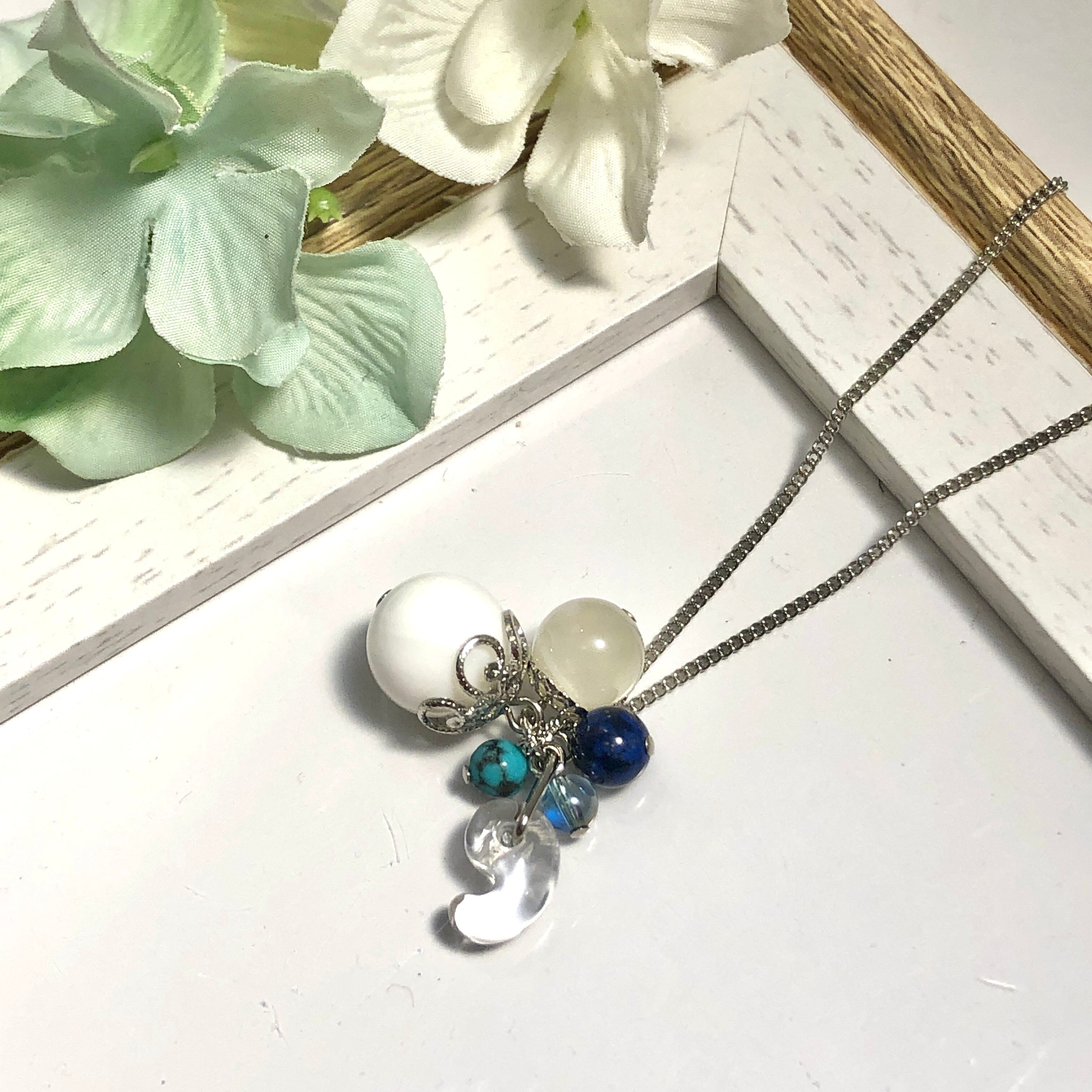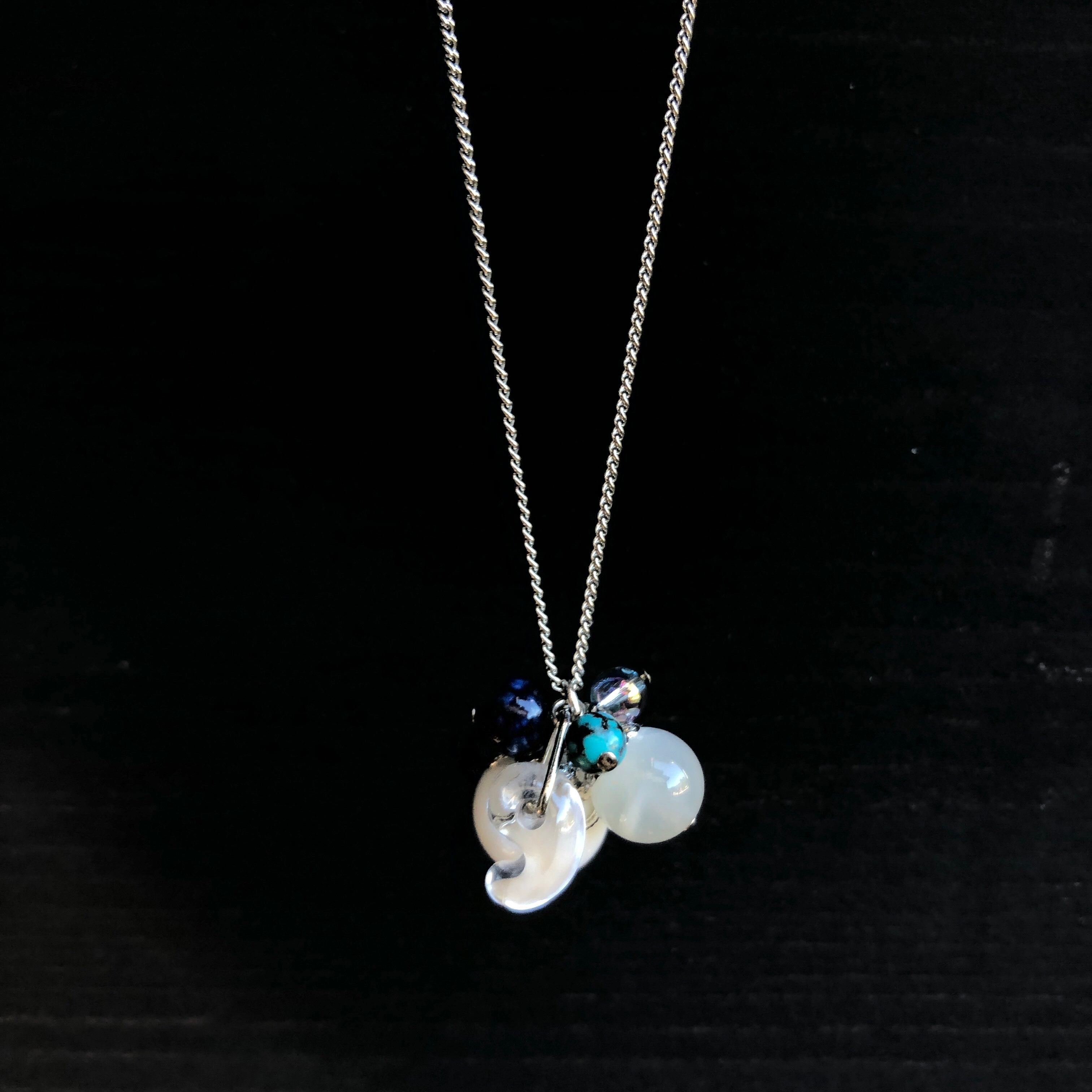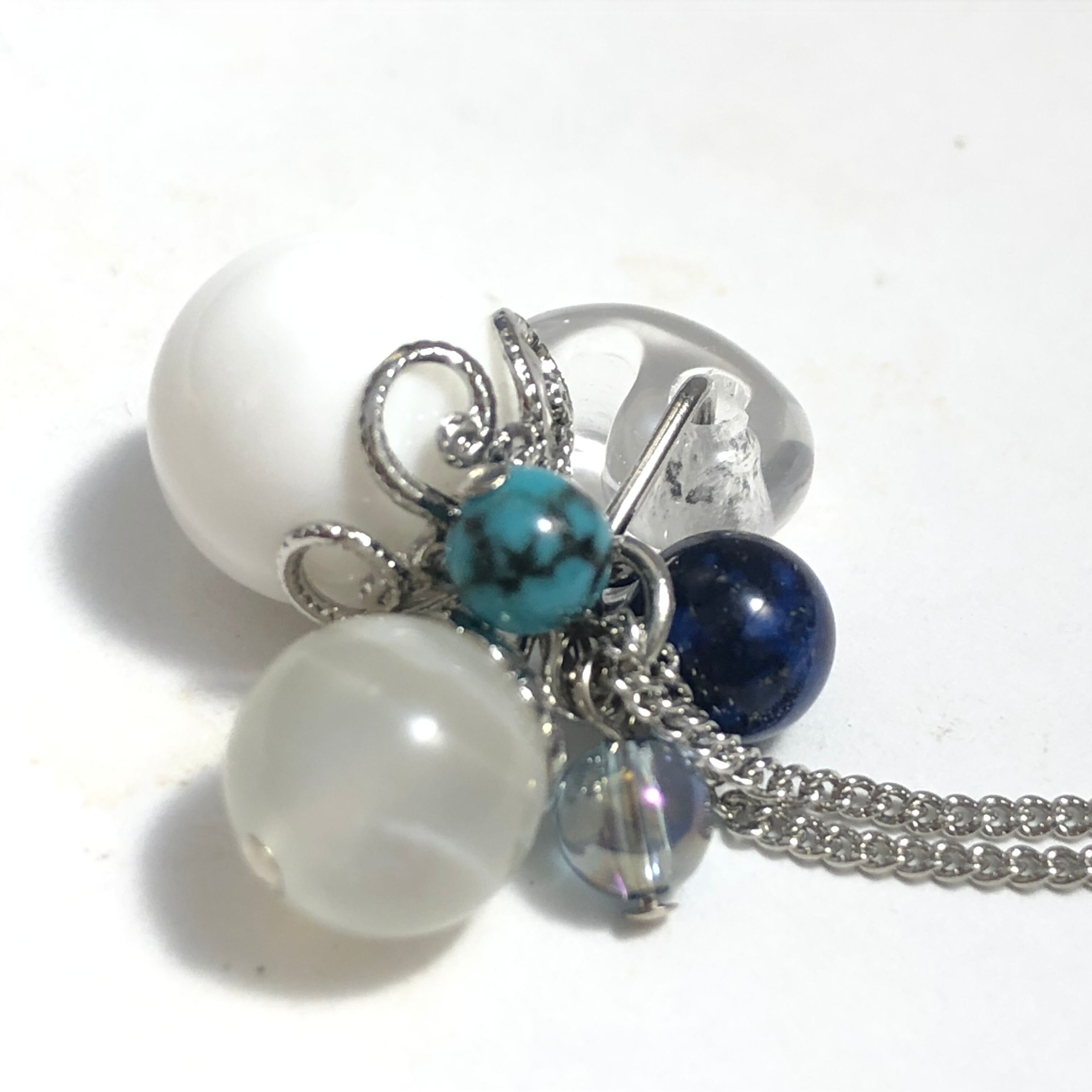 そんな勾玉と様々な天然石を組み合わせ、ころんとした可愛らしいネックレスに仕上げました。