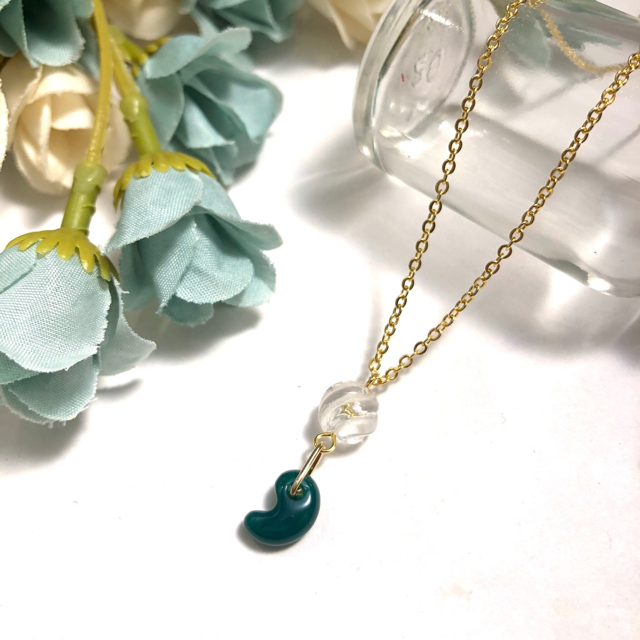 古くから魔除けのお守りとして身に着けられてきた勾玉と、清めの効果を持つと言い伝えられる水晶を組み合わせたネックレスです。